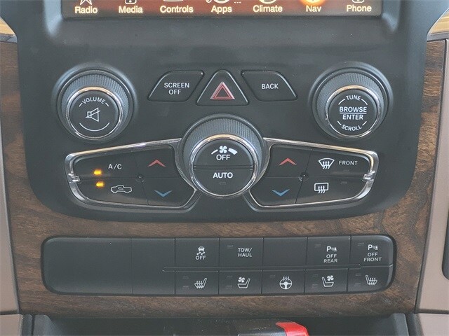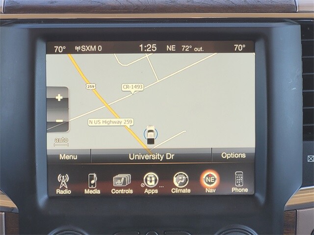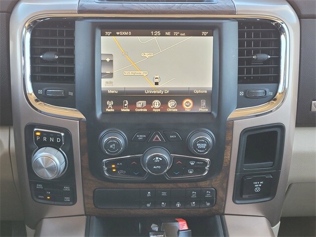 This 2017 Ram 1500 comes equipped with Quick Order Package 26K Longhorn (Chrome Belt Moldings and Chrome Grille w/RAM Letters), GPS Navigation, Navigation System, 1 Yr. Trial (Registration Required), 10 Speakers, 115V Auxiliary Power Outlet, 20" x 9" Polished Aluminum Wheels, 4-Wheel Disc Brakes, 8.4" Touchscreen Display, ABS brakes, Active Grille Shutters, Adjustable pedals, Air Conditioning, Alloy wheels, AM/FM radio, Anti-Spin Differential Rear Axle, Audio Jack Input for Mobile Devices, Audio memory, Auto High-beam Headlights, Auto-dimming door mirrors, Auto-dimming Rear-View mirror, Automatic temperature control, Brake assist, Bright Rotary Shifter, Bucket Seats, Center Hub, Chrome Tubular Side Steps, Class IV Receiver Hitch, Compass, Delay-off headlights, Driver door bin, Driver vanity mirror, Dual front impact airbags, Dual front side impact airbags, Electronic Shift, Electronic Stability Control, Electronically Controlled Throttle, Emergency communication system: Uconnect Access, Engine Oil Heat Exchanger, Folding Flat Load Floor Storage, Front anti-roll bar, Front Bucket Seats, Front Center Armrest w/Storage, Front dual zone A/C, Front fog lights, Front reading lights, Front wheel independent suspension, Fully automatic headlights, Garage door transmitter, Genuine wood dashboard insert, Genuine wood door panel insert, GPS Antenna Input, HD Radio, Heated door mirrors, Heated Front Seats, Heated front seats, Heated rear seats, Heated Second Row Seats, Heated Steering Wheel, Heated steering wheel, Heavy-Duty Engine Cooling, Hemi Badge, High Back Seats, Illuminated entry, Integrated Voice Command w/Bluetooth, Leather Shift Knob, Leather steering wheel, Low tire pressure warning, Manufacturer's Statement of Origin, Media Hub (USB, AUX), Memory seat, Occupant sensing airbag, Outside temperature display, Overhead airbag, Overhead console, Panic alarm, ParkView Rear Back-Up Camera, Passenger door bin, Passenger vanity mirror, Pedal memory, Power 10-Way Memory Driver & 6-Way Passenger Seats, Power door mirrors, Power driver seat, Power Lumbar Adjust, Power passenger seat, Power steering, Power windows, Premium Filigree Leather Seats, Radio data system, Radio: Uconnect 3C Nav w/8.4" Display, Rain sensing wipers, Rear 60/40 Split Folding Seat, Rear anti-roll bar, Rear seat center armrest, Rear step bumper, Remote keyless entry, Remote USB Port, Security system, SIRIUSXM Satellite Radio, SIRIUSXM Traffic, SiriusXM Travel Link, Speed control, Split folding rear seat, Steering Wheel Mounted Audio Controls, Steering wheel mounted audio controls, Tachometer, Tilt steering wheel, Tip Start, Traction control, Trip computer, Turn signal indicator mirrors, Uconnect Access, Variably intermittent wipers, Ventilated Front Seats, Ventilated front seats, Voltmeter, and Wheels: 20" x 9" Aluminum Polish/Brown Insert. Clean CARFAX. Carfax no accidents, Chrome Belt Moldings, Chrome Grille w/RAM Letters, GPS Navigation, Navigation System, Quick Order Package 26K Longhorn.