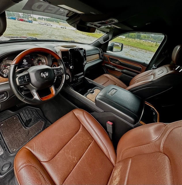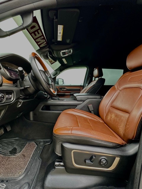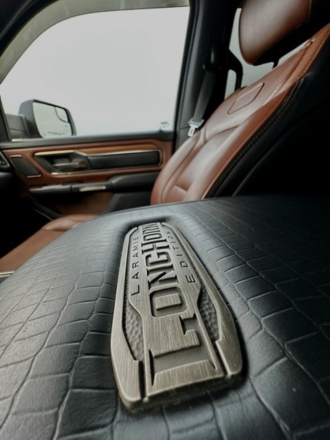 This 2019 Ram 1500 comes equipped with Advanced Safety Group (Adaptive Cruise Control w/Stop & Go, Advanced Brake Assist, Full Speed Forward Collision Warning Plus, Lane Keep Assist, and Parallel & Perp Park Assist w/Stop), Longhorn Level 1 Equipment Group (Blind Spot & Cross Path Detection, Foam Bottle Insert (Door Trim Panel), GPS Navigation, harman/kardon 19 Speaker Premium Sound, Power Running Boards, Radio: Uconnect 12 w/Navigation, USB Host Flip, Ventilated Rear Seats, Wireless Charging Pad, 1-Yr SiriusXM Guardian Trial, 12" Touchscreen Display, Apple CarPlay, Disassociated Touchscreen Display, Google Android Auto, GPS Antenna Input, HD Radio, Integrated Center Stack Radio, No Satellite Coverage w/HI/AK/PR/VI/GU, SiriusXM Satellite Radio, SiriusXM Traffic Plus, SiriusXM Travel Link, and SiriusXM w/360L), Quick Order Package 27K Longhorn, Navigation System, #1 Seat Foam Cushion, 10 Speakers, 3 Rear Seat Head Restraints, 3.21 Rear Axle Ratio, 4 Way Front Headrests, 4-Wheel Disc Brakes, 48V Belt Starter Generator, ABS brakes, Adjustable pedals, Air Conditioning, Alloy wheels, AM/FM radio: SiriusXM, Anti-Spin Differential Rear Axle, Apple CarPlay/Android Auto, Audio memory, Auto High-beam Headlights, Auto-dimming door mirrors, Auto-dimming Rear-View mirror, Automatic temperature control, Brake assist, Bucket Seats, Bumpers: chrome, Compass, Delay-off headlights, Driver door bin, Driver Seat Memory, Driver vanity mirror, Dual front impact airbags, Dual front side impact airbags, Electronic Stability Control, Emergency communication system: SiriusXM Guardian, Front anti-roll bar, Front Bucket Seats, Front Center Armrest w/Storage, Front dual zone A/C, Front fog lights, Front reading lights, Front Seat Back Map Pockets, Front wheel independent suspension, Fully automatic headlights, Garage door transmitter, Genuine wood console insert, Genuine wood dashboard insert, Genuine wood door panel insert, Heated door mirrors, Heated Front Seats, Heated front seats, Heated rear seats, Heated Second Row Seats, Heated Steering Wheel, Heated steering wheel, Illuminated entry, Leather steering wheel, Low tire pressure warning, Manufacturer's Statement of Origin, Memory seat, Occupant sensing airbag, Outside temperature display, Overhead airbag, Overhead console, Panic alarm, ParkView Rear Back-Up Camera, Passenger door bin, Passenger vanity mirror, Pedal memory, Power 4-Way Driver Lumbar Adjust, Power 4-Way Passenger Lumbar Adjust, Power 8-Way Driver & Passenger Seats, Power door mirrors, Power driver seat, Power passenger seat, Power steering, Power windows, Premium Leather Seats w/Filigree, Radio data system, Radio: Uconnect 4C Nav w/8.4" Display, Rain sensing wipers, Rear 60/40 Folding Split Recline Seat, Rear anti-roll bar, Rear seat center armrest, Rear step bumper, Rear window defroster, Remote CD player, Remote keyless entry, Security system, Speed control, Split folding rear seat, Steering wheel mounted audio controls, Tachometer, Telescoping steering wheel, Tilt steering wheel, Traction control, Trailer Brake Control, Trip computer, Turn signal indicator mirrors, Variably intermittent wipers, Ventilated Front Seats, Ventilated front seats, Voltmeter, Wheels: 20" x 9" Aluminum Painted/Polished, and Wheels: 22" x 9" Polish/Painted w/Inserts. Carfax no accidents, Adaptive Cruise Control w/Stop & Go, Advanced Brake Assist, Advanced Safety Group, Blind Spot & Cross Path Detection, Foam Bottle Insert (Door Trim Panel), Full Speed Forward Collision Warning Plus, GPS Navigation, harman/kardon 19 Speaker Premium Sound, Lane Keep Assist, Longhorn Level 1 Equipment Group, Navigation System, Parallel & Perp Park Assist w/Stop, Power Running Boards, Quick Order Package 27K Longhorn, Radio: Uconnect 12 w/Navigation, USB Host Flip, Ventilated Rear Seats, Wireless Charging Pad.