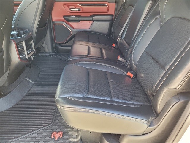 This 2019 Ram 1500 comes equipped with Quick Order Package 25W Rebel (Body Color Door Handles), Rebel 12 (DISC) (1-Yr SiriusXM Guardian Trial, 12" Touchscreen Display, 5-Year SiriusXM Traffic Service, 5-Year SiriusXM Travel Link Service, Apple CarPlay, Disassociated Touchscreen Display, For Details, Visit DriveUconnect.com, Google Android Auto, GPS Navigation, harman/kardon 19 Speaker Premium Sound, HD Radio, Heated Front Seats, Heated Steering Wheel, Integrated Center Stack Radio, Lux Leather Trimmed Bucket Seats, Power 4-Way Passenger Lumbar Adjust, Power 8-Way Driver & Passenger Seats, Radio: Uconnect 12 w/Navigation (DISC), SiriusXM Traffic Plus, SiriusXM Travel Link, SiriusXM w/360L, and USB Host Flip), Rebel Level 2 Equipment Group (115V Auxiliary Rear Power Outlet, 2 USB Full Function/Charge Only Media Hub, 8.4" Touchscreen Display, Air Conditioning ATC w/Dual Zone Control, Auto-Dimming Exterior Driver Mirror, Auto-Dimming Rear-View Mirror, Exterior Mirrors Courtesy Lamps, Exterior Mirrors w/Supplemental Signals, Foam Bottle Insert (Door Trim Panel), ParkSense Front/Rear Park Assist w/Stop, Power Adjustable Pedals, Power Heated Fold Away Mirrors, Power-Folding Mirrors, Radio: Uconnect 4 w/8.4" Display, Rain Sensitive Windshield Wipers, Rear Dome w/On/Off Switch Lamp, Rear Underseat Compartment Storage, Rear Window Defroster, Remote Proximity Keyless Entry, Remote Start System, Security Alarm, Single Disc Remote CD Player, Sun Visors w/Illuminated Vanity Mirrors, and Universal Garage Door Opener), 1-Year SiriusXM Radio Service, 3.92 Rear Axle Ratio, 4-Wheel Disc Brakes, 48V Belt Starter Generator, 6 Speakers, ABS brakes, Air Conditioning, Alloy wheels, AM/FM radio: SiriusXM, Blind Spot & Cross Path Detection, Brake assist, Cloth/Vinyl Low Back Bucket Seats, Compass, Delay-off headlights, Dome Dual LED Reading Lamp, Driver door bin, Dual front impact airbags, Dual front side impact airbags, Dual-Pane Panoramic Sunroof, Electronic Stability Control, For More Info, Call 800-643-2112, Front anti-roll bar, Front Bucket Seats, Front Center Armrest w/Storage, Front fog lights, Front reading lights, Front wheel independent suspension, Fully automatic headlights, GPS Antenna Input, Heated door mirrors, Illuminated entry, Leather steering wheel, Low tire pressure warning, Manufacturer's Statement of Origin, Occupant sensing airbag, Outside temperature display, Overhead airbag, Overhead console, Overhead LED Lamps, Panic alarm, ParkView Rear Back-Up Camera, Passenger door bin, Passenger vanity mirror, Power door mirrors, Power driver seat, Power steering, Power windows, Premium Overhead Console, Radio data system, Radio: Uconnect 3 w/5" Display, Rear anti-roll bar, Rear seat center armrest, Rear step bumper, Rear Wheelhouse Liners, Remote keyless entry, SiriusXM Satellite Radio, Speed control, Split folding rear seat, Spray In Bedliner, Steering wheel mounted audio controls, Tachometer, Telescoping steering wheel, Tilt steering wheel, Traction control, Trailer Brake Control, Tri-Fold Tonneau Cover, Trip computer, Variably intermittent wipers, Voltmeter, and Wheels: 18" x 8" Painted BlacK. CARFAX One-Owner. Clean CARFAX. One Owner Carfax, 1-Yr SiriusXM Guardian Trial, 115V Auxiliary Rear Power Outlet, 12" Touchscreen Display, 2 USB Full Function/Charge Only Media Hub, 5-Year SiriusXM Traffic Service, 5-Year SiriusXM Travel Link Service, 8.4" Touchscreen Display, Air Conditioning ATC w/Dual Zone Control, Apple CarPlay, Auto-Dimming Exterior Driver Mirror, Auto-Dimming Rear-View Mirror, Body Color Door Handles, Disassociated Touchscreen Display, Exterior Mirrors Courtesy Lamps, Exterior Mirrors w/Supplemental Signals, Foam Bottle Insert (Door Trim Panel), For Details, Visit DriveUconnect.com, Google Android Auto, GPS Navigation, harman/kardon 19 Speaker Premium Sound, HD Radio, Heated Front Seats, Heated Steering Wheel, Integrated Center Stack Radio, Lux Leather Trimmed Bucket Seats, ParkSense Front/Rear Park Assist w/Stop, Power 4-Wa