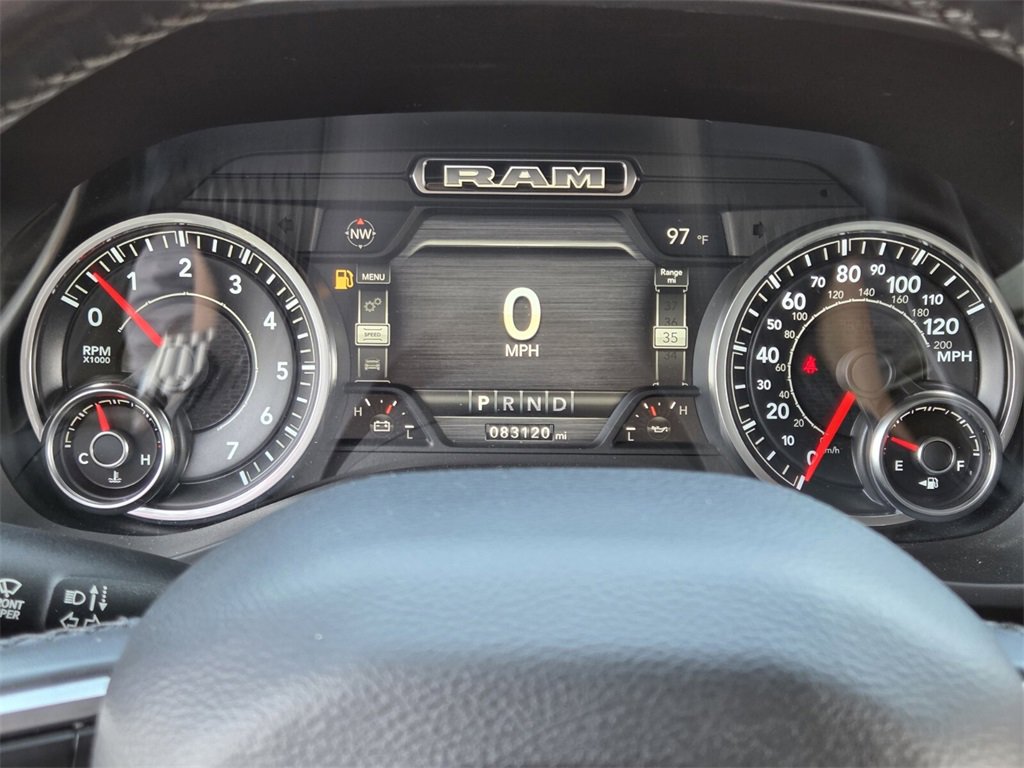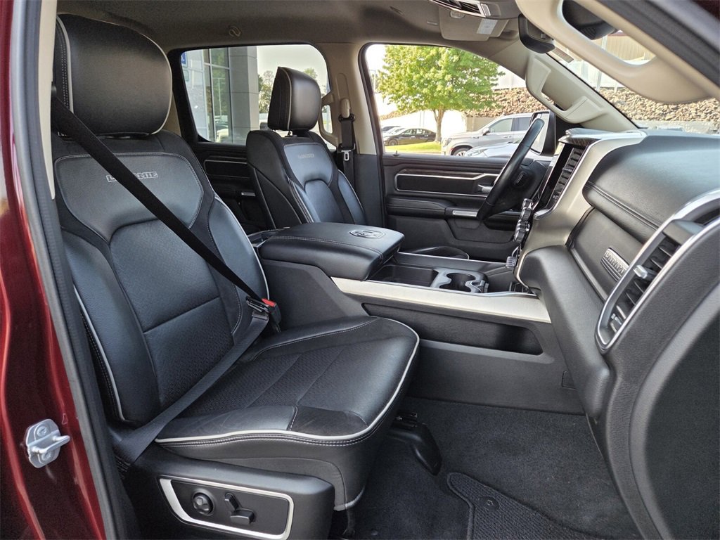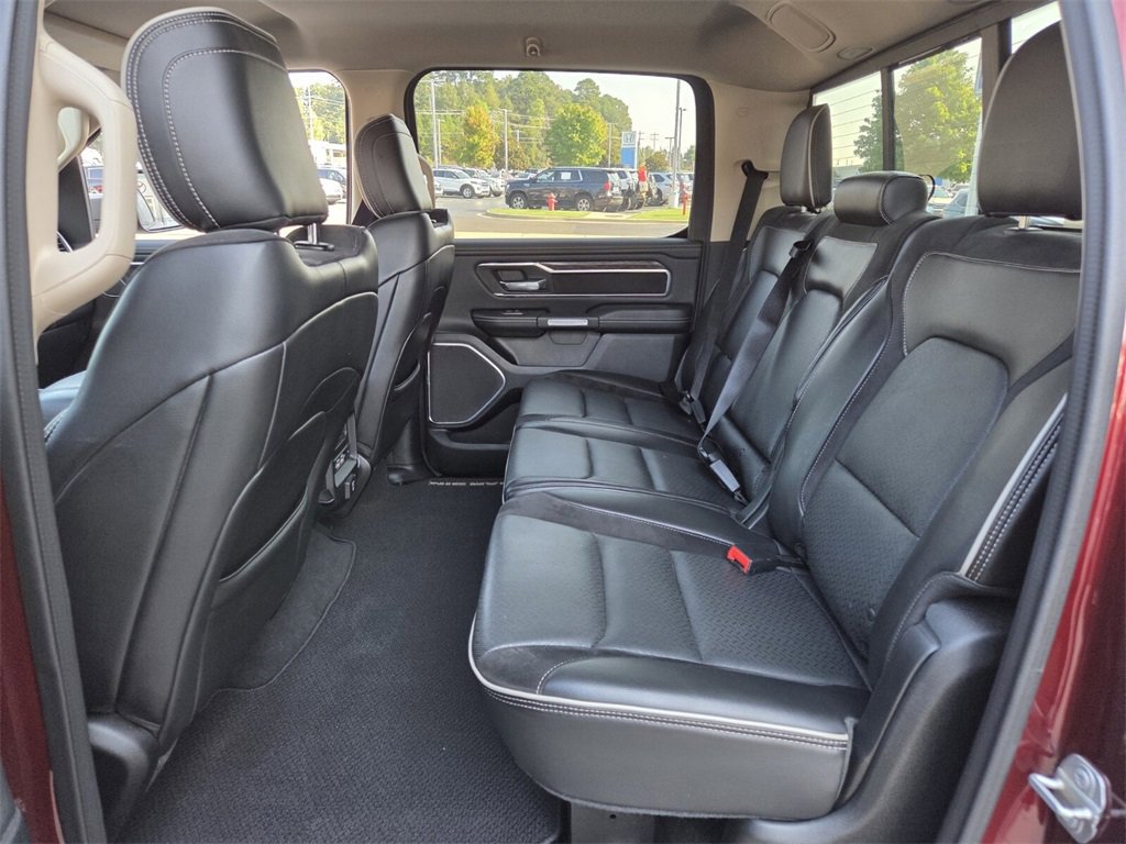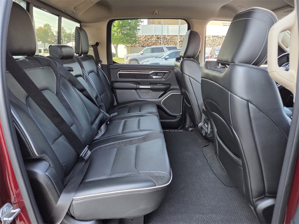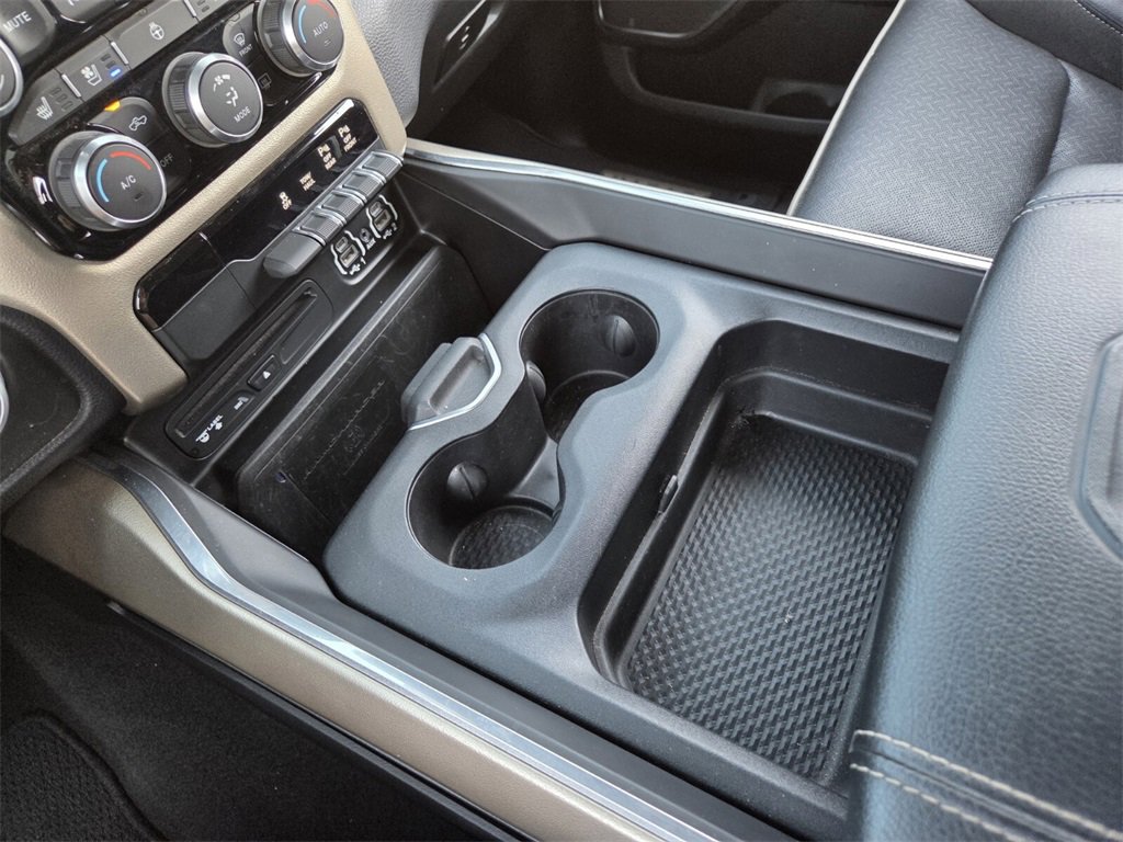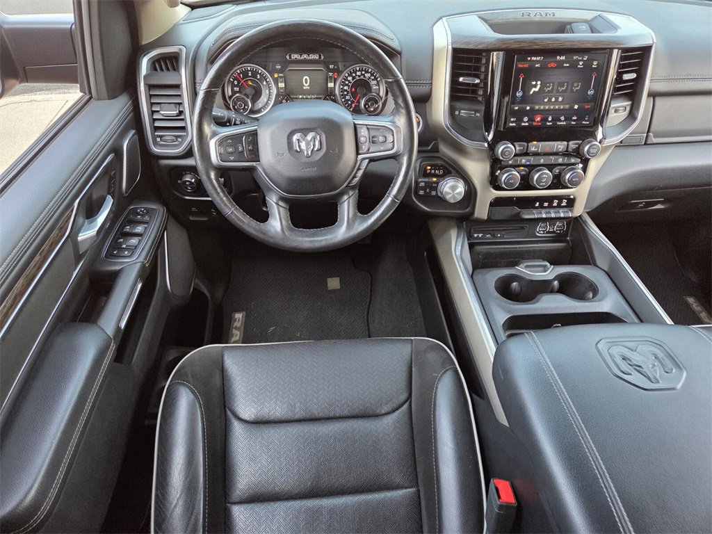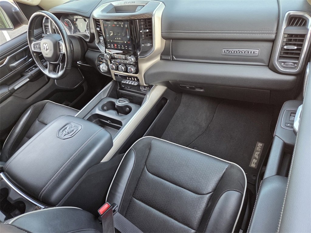 This 2019 Ram 1500 comes equipped with, #1 Seat Foam Cushion, 1-Yr SiriusXM Guardian Trial, 10 Speakers, 3 Rear Seat Head Restraints, 3.21 Rear Axle Ratio, 4 Way Front Headrests, 4-Wheel Disc Brakes, 48V Belt Starter Generator, 5-Year SiriusXM Traffic Service, 5-Year SiriusXM Travel Link Service, 8.4" Touchscreen Display, ABS brakes, Adaptive Cruise Control w/Stop & Go, Adjustable pedals, Advanced Brake Assist, Advanced Safety Group, Air Conditioning, Alloy wheels, AM/FM radio: SiriusXM, Apple CarPlay, Apple CarPlay/Android Auto, Audio memory, Auto High Beam Headlamp Control, Auto-dimming door mirrors, Auto-dimming Rear-View mirror, Automatic temperature control, Blind Spot & Cross Path Detection, Brake assist, Bumpers: chrome, Compass, Delay-off headlights, Disassociated Touchscreen Display, Driver door bin, Driver Seat Memory, Driver vanity mirror, Dual front impact airbags, Dual front side impact airbags, Electronic Stability Control, Foam Bottle Insert (Door Trim Panel), For Details, Visit DriveUconnect.com, Front anti-roll bar, Front Center Armrest w/Storage, Front dual zone A/C, Front fog lights, Front reading lights, Front Seat Back Map Pockets, Front wheel independent suspension, Full Speed Forward Collision Warning Plus, Fully automatic headlights, Garage door transmitter, Google Android Auto, GPS Antenna Input, GPS Navigation, harman/kardon 19 Speaker Premium Sound, HD Radio, Heated door mirrors, Heated Front Seats, Heated front seats, Heated Second Row Seats, Heated Steering Wheel, Heated steering wheel, Illuminated entry, Integrated Center Stack Radio, Lane Keep Assist, Laramie Level 2 Equipment Group, Leather steering wheel, Leather Trim 40/20/40 Bench Seat, Low tire pressure warning, Memory seat, No Satellite Coverage w/HI/AK/PR/VI/GU, Occupant sensing airbag, Outside temperature display, Overhead airbag, Overhead console, Panic alarm, Parallel & Perp Park Assist w/Stop, ParkSense Front/Rear Park Assist w/Stop, ParkView Rear Back-Up Camera, Passenger door bin, Passenger vanity mirror, Pedal memory, Power 4-Way Driver Lumbar Adjust, Power 4-Way Passenger Lumbar Adjust, Power 8-Way Driver & Passenger Seats, Power door mirrors, Power driver seat, Power passenger seat, Power steering, Power windows, Quick Order Package 25H Laramie, Radio data system, Radio: Uconnect 4 w/8.4" Display, Radio: Uconnect 4C Nav w/8.4" Display, Rain Sensitive Windshield Wipers, Rear 60/40 Folding Split Recline Seat, Rear anti-roll bar, Rear seat center armrest, Rear step bumper, Rear Underseat Compartment Storage, Rear window defroster, Remote keyless entry, Remote Tailgate Release, Security system, Single Disc Remote CD Player, SiriusXM Satellite Radio, SiriusXM Traffic Plus, SiriusXM Travel Link, Speed control, Split folding rear seat, Steering wheel mounted audio controls, Tachometer, Tailgate Ajar Warning Lamp, Telescoping steering wheel, Tilt steering wheel, Traction control, Trip computer, Turn signal indicator mirrors, Variably intermittent wipers, Ventilated Front Seats, Ventilated front seats, Voltmeter, Wheels: 18" x 8" Aluminum Base Painted, Wheels: 20" x 9" Premium Paint/Polished, Wireless Charging Pad. Odometer is 13019 miles below market average!