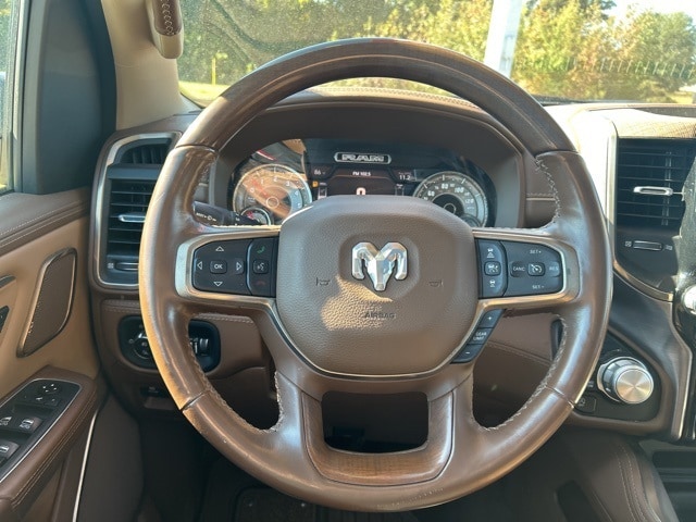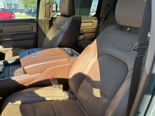 The 2020 Ram 1500 comes with the following features; Advanced Safety Group (Adaptive Cruise Control w/Stop & Go, Full Speed Forward Collision Warning Plus, Lane Keep Assist, and Parallel & Perp Park Assist w/Stop), Longhorn Level 1 Equipment Group (1-Yr SiriusXM Guardian Trial, 12" Touchscreen Display, 4G LTE Wi-Fi Hot Spot, 5-Year SiriusXM Travel Link Service, Apple CarPlay, Blind Spot & Cross Path Detection, Disassociated Touchscreen Display, Foam Bottle Insert (Door Trim Panel), For Details, Visit DriveUconnect.com, Google Android Auto, GPS Antenna Input, GPS Navigation, harman/kardon 19 Speaker Premium Sound, HD Radio, Integrated Center Stack Radio, No Satellite Coverage w/HI/AK/PR/VI/GU, Power Running Boards, Radio: Uconnect 12 w/Navigation, SiriusXM Satellite Radio, SiriusXM Traffic Plus, SiriusXM Travel Link, SiriusXM w/360L, USB Host Flip, Ventilated Rear Seats, and Wireless Charging Pad), Protection Group, Quick Order Package 27K Longhorn, #1 Seat Foam Cushion, 10 Speakers, 3 Rear Seat Head Restraints, 33 Gallon Fuel Tank, 4 Way Front Headrests, 4-Wheel Disc Brakes, 48V Belt Starter Generator, ABS brakes, Adjustable pedals, Air Conditioning, Alloy wheels, AM/FM radio: SiriusXM, Anti-Spin Differential Rear Axle, Apple CarPlay/Android Auto, Audio memory, Auto High-beam Headlights, Auto-dimming door mirrors, Auto-dimming Rear-View mirror, Automatic temperature control, Brake assist, Bucket Seats, Bumpers: chrome, Compass, Delay-off headlights, Dome Dual LED Reading Lamp, Driver door bin, Driver Seat Memory, Driver vanity mirror, Dual front impact airbags, Dual front side impact airbags, Dual-Pane Panoramic Sunroof, Electronic Stability Control, Emergency communication system: SiriusXM Guardian, Front anti-roll bar, Front Bucket Seats, Front Center Armrest w/Storage, Front dual zone A/C, Front fog lights, Front reading lights, Front Seat Back Map Pockets, Front wheel independent suspension, Fully automatic headlights, Garage door transmitter, Genuine wood console insert, Genuine wood dashboard insert, Genuine wood door panel insert, Heated door mirrors, Heated Front Seats, Heated front seats, Heated rear seats, Heated Second Row Seats, Heated Steering Wheel, Heated steering wheel, Heavy-Duty Engine Cooling, Illuminated entry, Leather steering wheel, LED Dome/Reading Lamp, Low tire pressure warning, Memory seat, Navigation System, Occupant sensing airbag, Outside temperature display, Overhead airbag, Overhead console, Panic alarm, ParkView Rear Back-Up Camera, Passenger door bin, Passenger vanity mirror, Pedal memory, Pick-Up Box Lighting, Power 4-Way Driver Lumbar Adjust, Power 4-Way Passenger Lumbar Adjust, Power 8-Way Driver & Passenger Seats, Power door mirrors, Power driver seat, Power passenger seat, Power steering, Power windows, Premium Leather Seats w/Filigree, Radio data system, Radio: Uconnect 4C Nav w/8.4" Display, Rain sensing wipers, Rear 60/40 Folding Split Recline Seat, Rear anti-roll bar, Rear seat center armrest, Rear step bumper, Rear window defroster, Remote keyless entry, Security system, Speed control, Split folding rear seat, Steering wheel mounted audio controls, Surround View Camera System, Tachometer, Telescoping steering wheel, Tilt steering wheel, Traction control, Trailer Brake Control, Trip computer, Turn signal indicator mirrors, Variably intermittent wipers, Ventilated Front Seats, Ventilated front seats, Voltmeter, Wheels: 20" x 9" Aluminum Painted/Polished, and Wheels: 22" x 9" Polish/Painted w/InsertS.