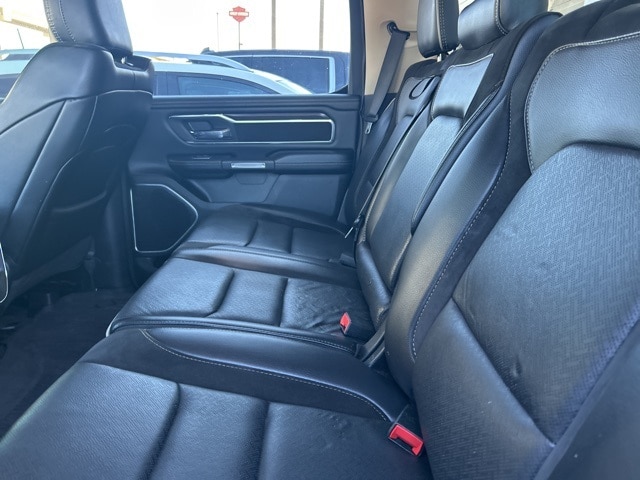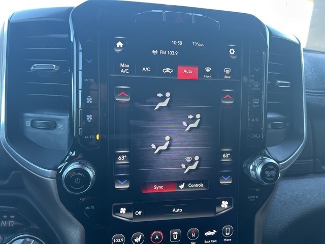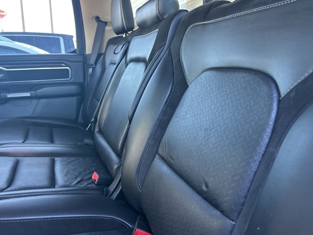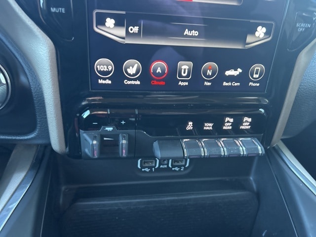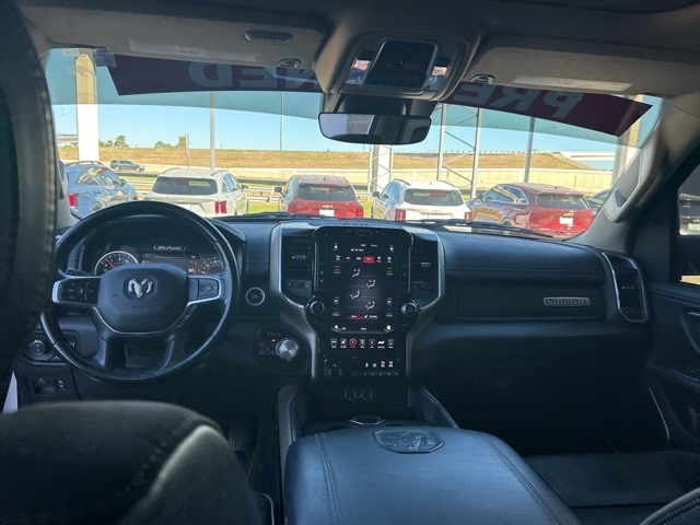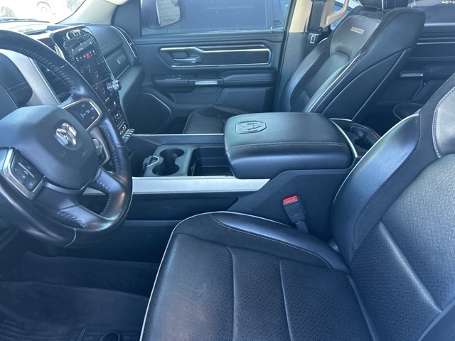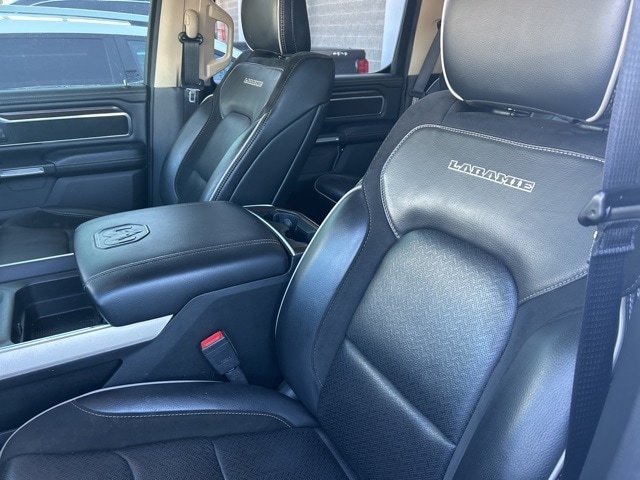 The 2021 Ram 1500 comes with the following features; Laramie Level An Equipment Group (Auto High Beam Headlamp Control, Foam Bottle Insert (Door Trim Panel), ParkSense Front/Rear Park Assist w/Stop, Rain Sensitive Windshield Wipers, Rear 60/40 Folding Split Recline Seat, Remote Tailgate Release, and Tailgate Ajar Warning Lamp), Laramie Southwest Edition (Body Color Exterior Mirrors, Body Color Front Bumper, Body Color Premium Power Mirrors, Body Color Rear Bumper w/Step Pads, Chrome Tow Hooks, Dome Dual LED Reading Lamp, Dual-Pane Panoramic Sunroof, Grille Surround 3 Body Color Tex 4 Chrome, LED Dome/Reading Lamp, MOPAR Lockable Console Storage, Power Running Boards, Trailer Brake Control, and Wheels: 20" x 9" Premium Painted w/Inserts), Quick Order Package 25H Laramie, #1 Seat Foam Cushion, 1-Yr SiriusXM Guardian Trial, 10 Speakers, 12" Touchscreen Display, 3 Rear Seat Head Restraints, 3.21 Rear Axle Ratio, 4 Way Front Headrests, 4-Wheel Disc Brakes, 48V Belt Starter Generator, 4G LTE Wi-Fi Hot Spot, 5-Year SiriusXM Traffic Service, 5-Year SiriusXM Travel Link Service, 8.4" Touchscreen Display, ABS brakes, Adjustable pedals, Air Conditioning, Alloy wheels, AM/FM radio: SiriusXM, Anti-Spin Differential Rear Axle, Apple CarPlay, Apple CarPlay/Android Auto, Audio memory, Auto-dimming door mirrors, Auto-dimming Rear-View mirror, Automatic temperature control, Brake assist, Bumpers: chrome, Chrome Exterior Mirrors, Compass, Delay-off headlights, Disassociated Touchscreen Display, Driver door bin, Driver Seat Memory, Driver vanity mirror, Dual front impact airbags, Dual front side impact airbags, Electronic Stability Control, For Details, Visit DriveUconnect.com, For More Info, Call 800-643-2112, Front anti-roll bar, Front Center Armrest w/Storage, Front dual zone A/C, Front fog lights, Front License Plate Bracket, Front reading lights, Front Seat Back Map Pockets, Front wheel independent suspension, Fully automatic headlights, Garage door transmitter, Google Android Auto, GPS Antenna Input, GPS Navigation, HD Radio, Heated door mirrors, Heated Front Seats, Heated front seats, Heated Steering Wheel, Heated steering wheel, Illuminated entry, Integrated Center Stack Radio, Integrated Voice Command w/Bluetooth, Leather steering wheel, Leather Trim 40/20/40 Bench Seat, Low tire pressure warning, Memory seat, MOPAR Front & Rear Rubber Floor Mats, Occupant sensing airbag, Outside temperature display, Overhead airbag, Overhead console, Panic alarm, ParkView Rear Back-Up Camera, Passenger door bin, Passenger vanity mirror, Pedal memory, Power 4-Way Driver Lumbar Adjust, Power 4-Way Passenger Lumbar Adjust, Power 8-Way Driver & Passenger Seats, Power door mirrors, Power driver seat, Power passenger seat, Power steering, Power windows, Radio data system, Radio: Uconnect 12 w/Navigation, Radio: Uconnect 4 w/8.4" Display, Rear anti-roll bar, Rear seat center armrest, Rear step bumper, Rear Wheelhouse Liners, Rear window defroster, Remote keyless entry, Security system, SiriusXM Radio Service, SiriusXM Satellite Radio, SiriusXM Traffic Plus, SiriusXM Travel Link, SiriusXM w/360L, Speed control, Split folding rear seat, Steering wheel mounted audio controls, Tachometer, Telescoping steering wheel, Tilt steering wheel, Traction control, Trip computer, Turn signal indicator mirrors, USB Host Flip, Variably intermittent wipers, Ventilated Front Seats, Ventilated front seats, Voltmeter, and Wheels: 18" x 8" Aluminum Base PainteD.