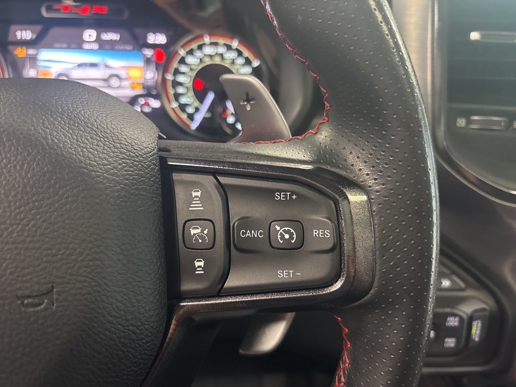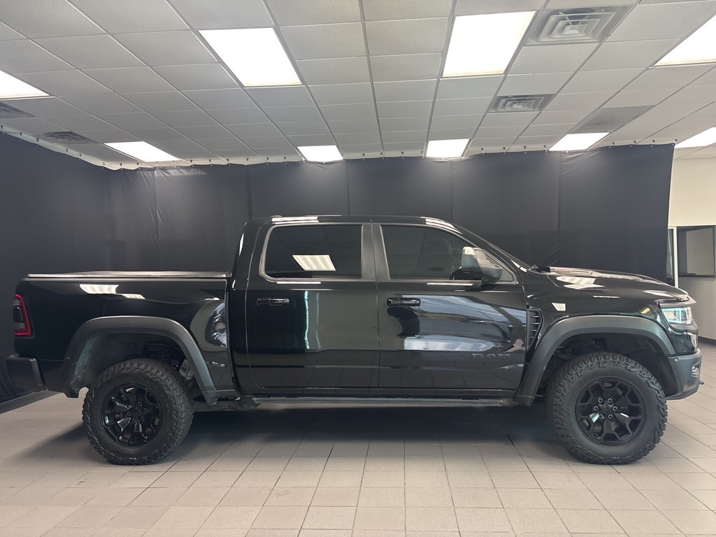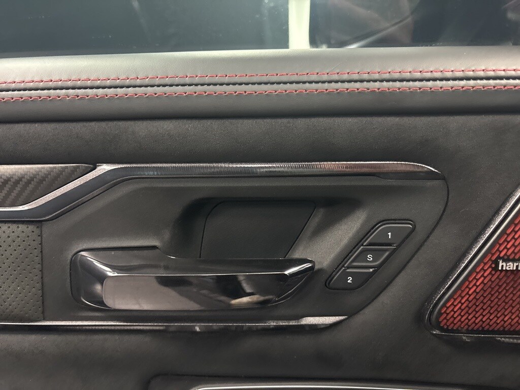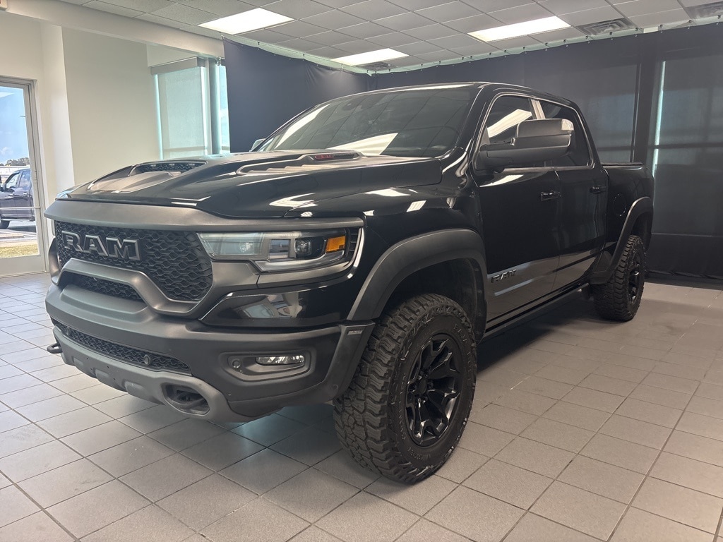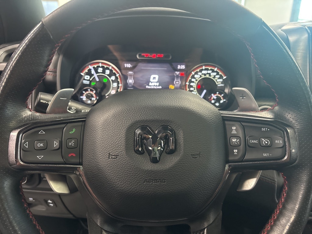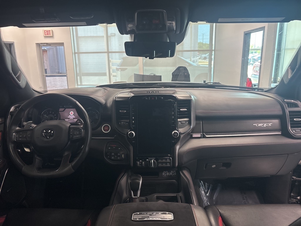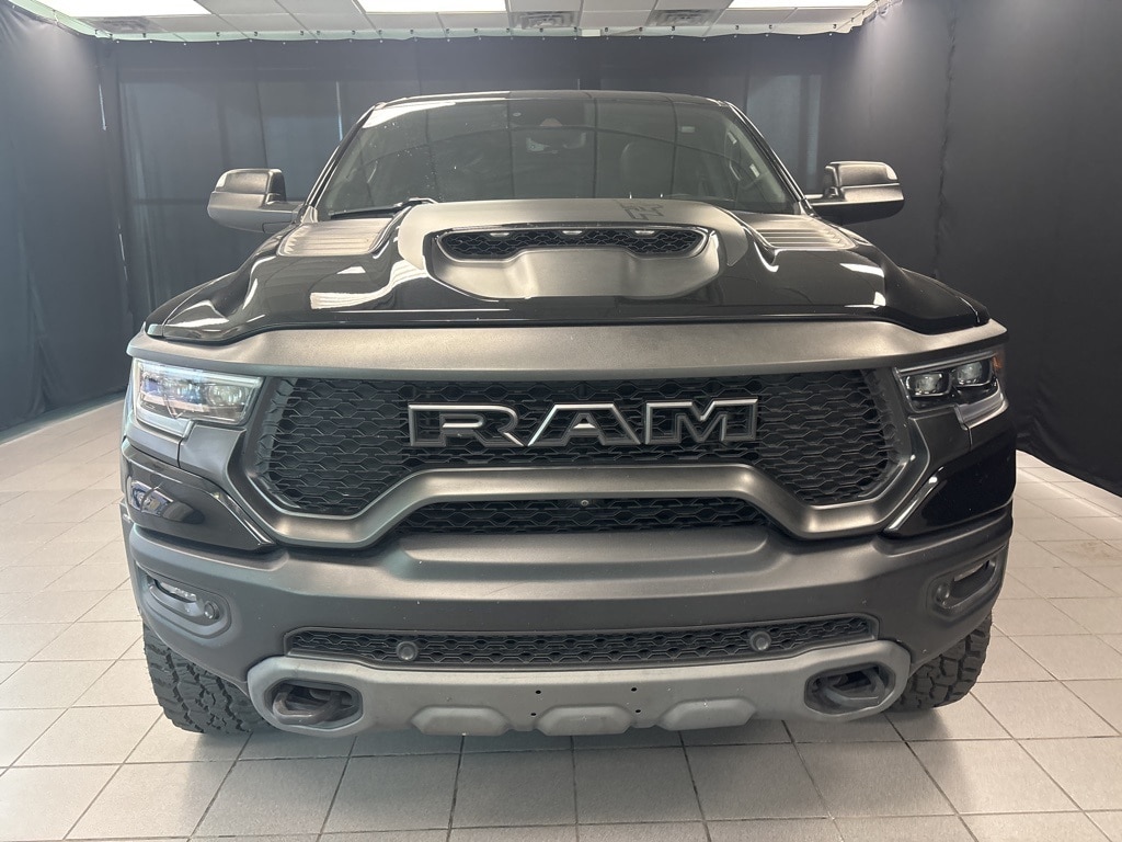 CARFAX One-Owner. Diamond Black Crystal Pearlcoat TRX 4WD 8-Speed Automatic 6.2L Supercharged HEMI V8 SRT 10 Speakers, 3.55 Rear Axle Ratio, ABS brakes, Adaptive Cruise Control w/Stop & Go, Advanced Safety Group, Auto High-beam Headlights, Auto-dimming door mirrors, Bed Utility Group, Brake assist, Delay-off headlights, Driver door bin, Electronic Stability Control, Emergency communication system: SiriusXM Guardian, Exterior Mirrors w/Heating Element, Exterior Mirrors w/Memory, Exterior Mirrors w/Supplemental Signals, Front fog lights, Front License Plate Bracket, Front wheel independent suspension, Heads-Up Display, Illuminated entry, Lane Keep Assist, Leather steering wheel, Leather/Carbon Flat-Bottom Steering Wheel, LED CHMSL Lamp, Low tire pressure warning, Mirror Clearance/Running Lights, MOPAR 4 Adjustable Cargo Tie-Down Hooks, MOPAR Deployable Bed Step, MOPAR Rock Rails, MOPAR Spray In Bedliner, MOPAR TRX Exterior Graphics, MOPAR TRX Hood Graphics, Navigation System, Occupant sensing airbag, Outside temperature display, Panic alarm, ParkSense Front/Rear Park Assist w/Stop, ParkView Rear Back-Up Camera, Pedestrian Emergency Braking, Power Adjustable Pedals w/Memory, Power steering, Premium Wrapped IP Bezel, Radio data system, Radio: Uconnect 12 w/Navigation, Radio/Driver Seat/Mirrors/Pedals Memory, Rain Sensitive Windshield Wipers, Real Carbon Fiber Interior Accents, Security system, Steering wheel mounted audio controls, Tachometer, Tilt steering wheel, Trailer Reverse Steering Control, TRX Carbon Fiber Package, TRX Red Interior Accents, Variably intermittent wipers, Voltmeter, Wheels: 18" x 9" Black Paint/Polish Aluminum, Wireless Charging Pad.