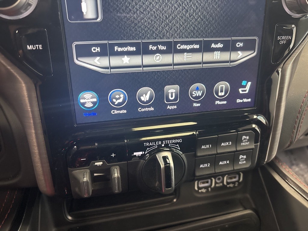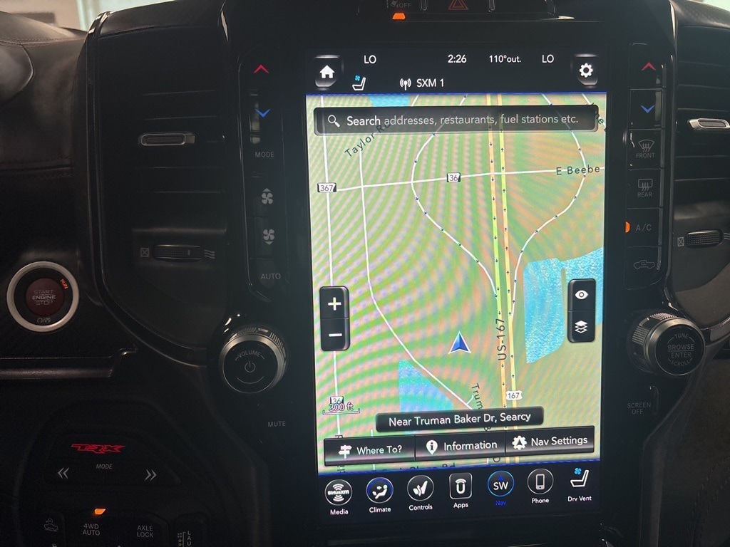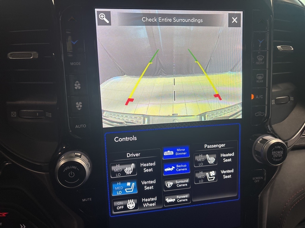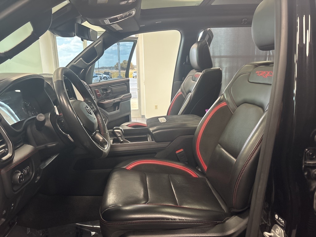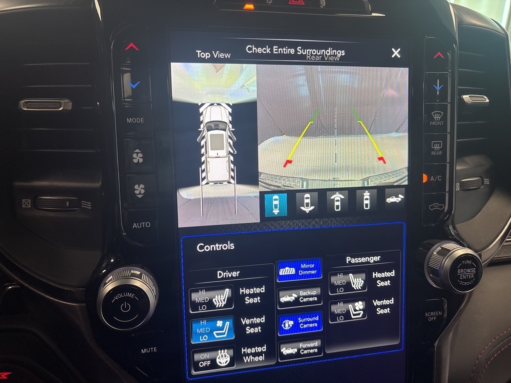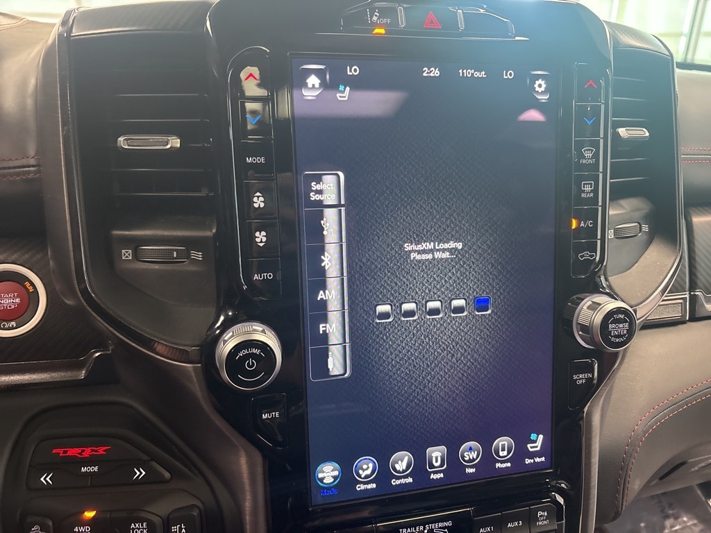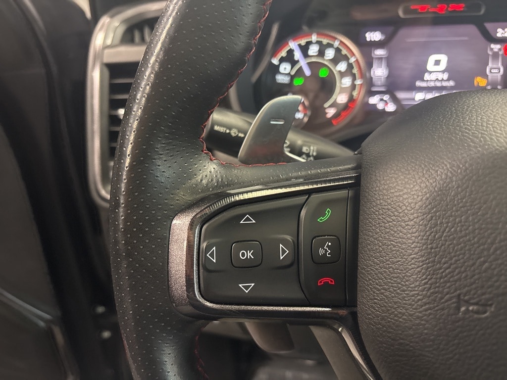 CARFAX One-Owner. Diamond Black Crystal Pearlcoat TRX 4WD 8-Speed Automatic 6.2L Supercharged HEMI V8 SRT 10 Speakers, 3.55 Rear Axle Ratio, ABS brakes, Adaptive Cruise Control w/Stop & Go, Advanced Safety Group, Auto High-beam Headlights, Auto-dimming door mirrors, Bed Utility Group, Brake assist, Delay-off headlights, Driver door bin, Electronic Stability Control, Emergency communication system: SiriusXM Guardian, Exterior Mirrors w/Heating Element, Exterior Mirrors w/Memory, Exterior Mirrors w/Supplemental Signals, Front fog lights, Front License Plate Bracket, Front wheel independent suspension, Heads-Up Display, Illuminated entry, Lane Keep Assist, Leather steering wheel, Leather/Carbon Flat-Bottom Steering Wheel, LED CHMSL Lamp, Low tire pressure warning, Mirror Clearance/Running Lights, MOPAR 4 Adjustable Cargo Tie-Down Hooks, MOPAR Deployable Bed Step, MOPAR Rock Rails, MOPAR Spray In Bedliner, MOPAR TRX Exterior Graphics, MOPAR TRX Hood Graphics, Navigation System, Occupant sensing airbag, Outside temperature display, Panic alarm, ParkSense Front/Rear Park Assist w/Stop, ParkView Rear Back-Up Camera, Pedestrian Emergency Braking, Power Adjustable Pedals w/Memory, Power steering, Premium Wrapped IP Bezel, Radio data system, Radio: Uconnect 12 w/Navigation, Radio/Driver Seat/Mirrors/Pedals Memory, Rain Sensitive Windshield Wipers, Real Carbon Fiber Interior Accents, Security system, Steering wheel mounted audio controls, Tachometer, Tilt steering wheel, Trailer Reverse Steering Control, TRX Carbon Fiber Package, TRX Red Interior Accents, Variably intermittent wipers, Voltmeter, Wheels: 18" x 9" Black Paint/Polish Aluminum, Wireless Charging Pad.