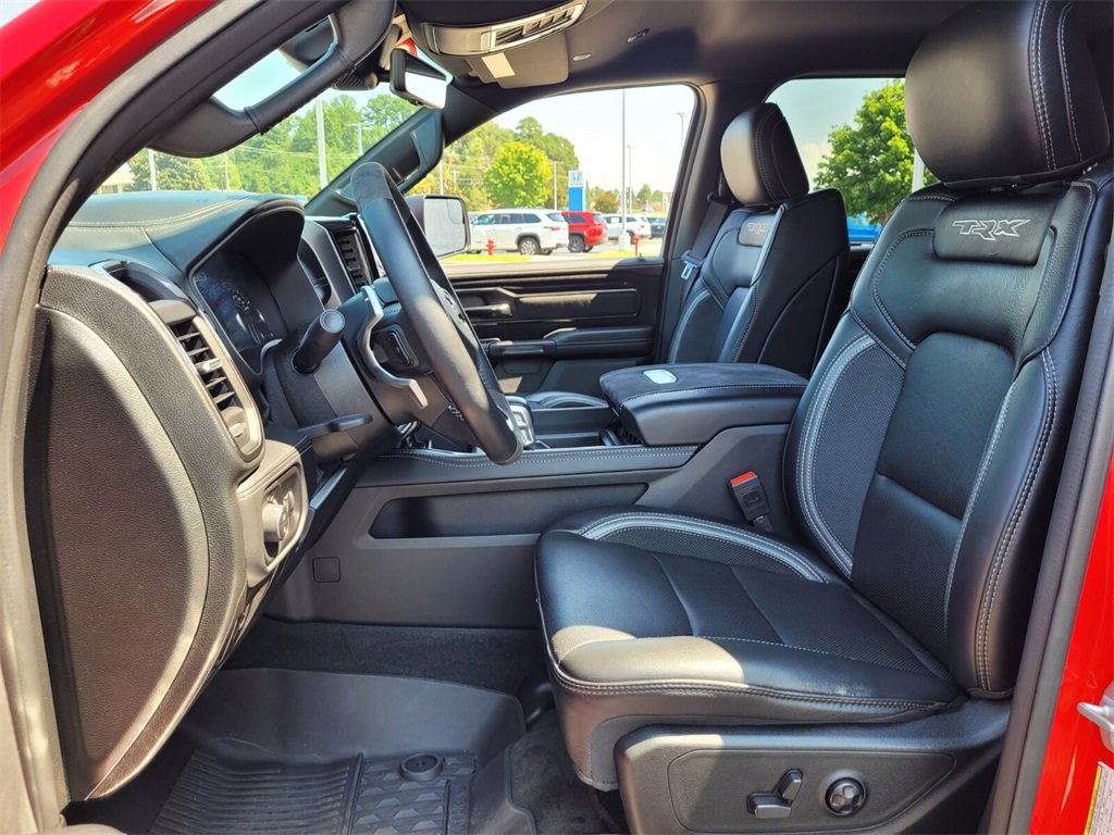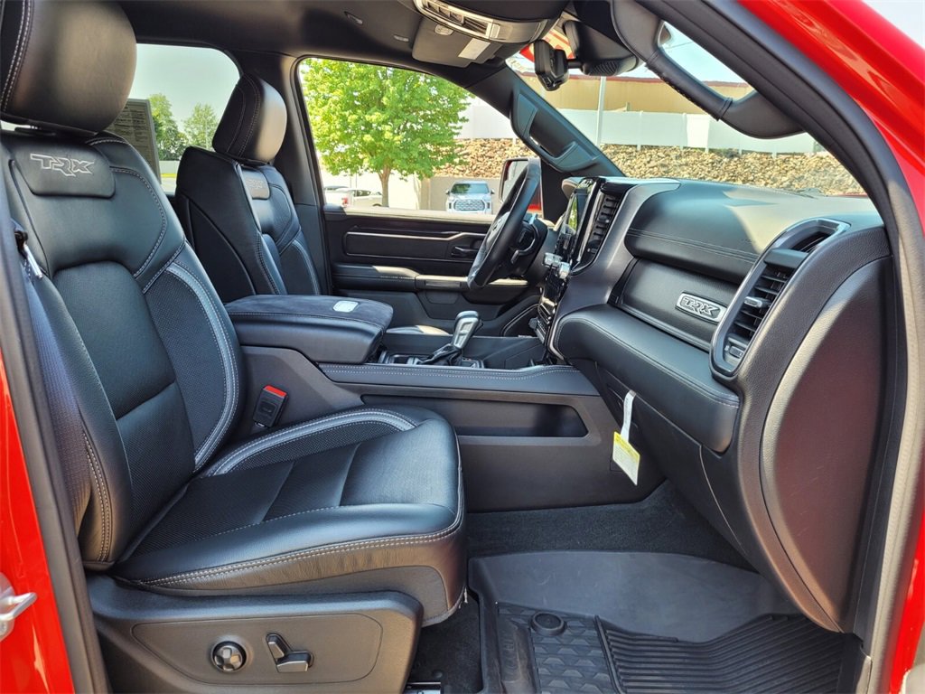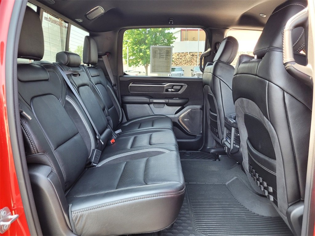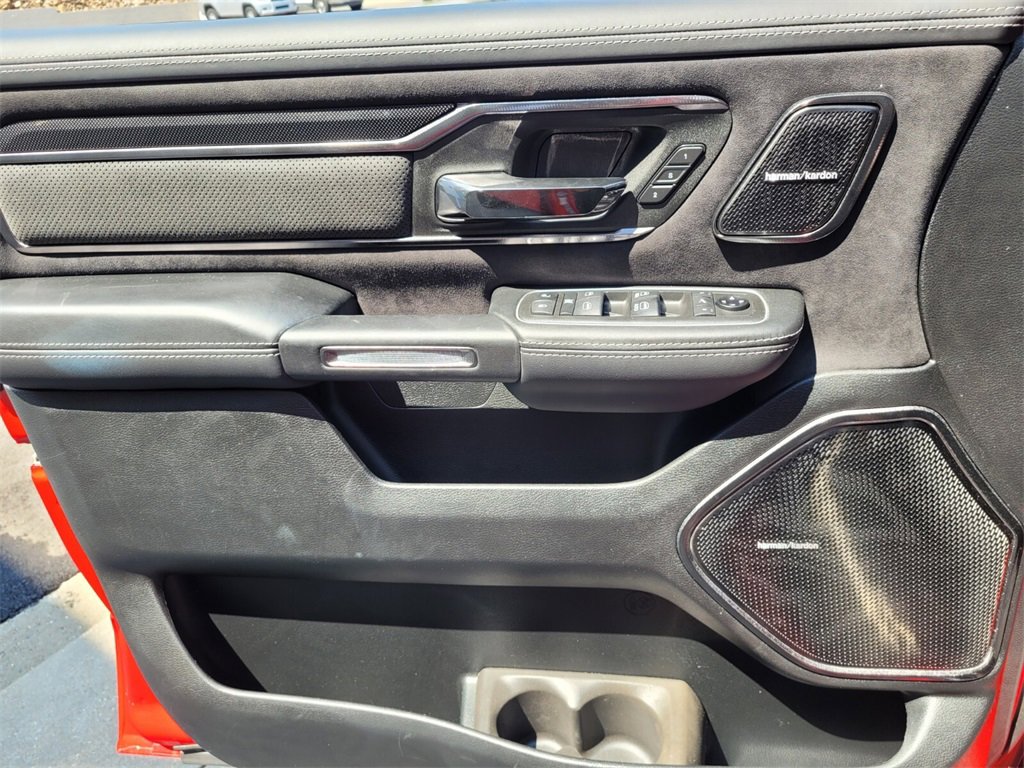 This 2021 Ram 1500 comes equipped with, 10 Speakers, 3.55 Rear Axle Ratio, 4 Way Front Headrests, 4-Wheel Disc Brakes, ABS brakes, Adaptive suspension, Air Conditioning, Alloy wheels, AM/FM radio: SiriusXM with 360L, Apple CarPlay/Android Auto, Auto High-beam Headlights, Auto-dimming door mirrors, Auto-dimming Rear-View mirror, Automatic temperature control, Black Exterior Mirrors, Blind Spot & Cross Path Detection, Body Color Door Handles, Brake assist, Bucket Seats, Cloth/Vinyl Bucket Seats, Compass, Delay-off headlights, Driver door bin, Driver Seat Memory, Driver/Passenger Wrapped Assist Handles, Dual front impact airbags, Dual front side impact airbags, Electronic Stability Control, Emergency communication system: SiriusXM Guardian, Exterior Mirrors Courtesy Lamps, Exterior Mirrors w/Heating Element, Exterior Mirrors w/Memory, Exterior Mirrors w/Supplemental Signals, Front anti-roll bar, Front Bucket Seats, Front Center Armrest w/Storage, Front Door Accent Lighting, Front dual zone A/C, Front fog lights, Front License Plate Bracket, Front reading lights, Front wheel independent suspension, Full Length Premium Upgraded Floor Console, Fully automatic headlights, harman/kardon 19 Speaker Premium Sound, Heads-Up Display, Heated door mirrors, Heated Front Seats, Heated Second Row Seats, Heated Steering Wheel, Illuminated entry, IP LED Ambient Light Pipe, Leather Shift Knob, Leather steering wheel, Leather Trimmed Bucket Seats, Leather/Suede Flat-Bottom Steering Wheel, LED CHMSL Lamp, Low tire pressure warning, Luxury Front Door Trim Panel, Manufacturer's Statement of Origin, Navigation System, Occupant sensing airbag, Outside temperature display, Overhead airbag, Overhead console, Panic alarm, ParkSense Front/Rear Park Assist w/Stop, ParkView Rear Back-Up Camera, Passenger door bin, Passenger vanity mirror, Pick-Up Box Lighting, Power 4-Way Driver Lumbar Adjust, Power 4-Way Passenger Lumbar Adjust, Power 8-Way Driver & Passenger Seats, Power Adjustable Pedals w/Memory, Power door mirrors, Power driver seat, Power steering, Power windows, Power-Folding Mirrors, Premium Wrapped IP Bezel, Quick Order Package 29Y, Radio data system, Radio: Uconnect 12 w/Navigation, Radio/Driver Seat/Mirrors/Pedals Memory, Rain Sensitive Windshield Wipers, Rear 60/40 Folding Split Recline Seat, Rear Door Accent Lighting, Rear seat center armrest, Rear step bumper, Rear Underseat Compartment Storage, Rear Window Defroster, Rearview Autodim Digital Display Mirror, Remote keyless entry, Remote Proximity Keyless Entry, Remote Start System, Remote Tailgate Release, Security system, Speed control, Split folding rear seat, Sport steering wheel, Steering wheel mounted audio controls, Sun Visors w/Illuminated Vanity Mirrors, Surround View Camera System, Tachometer, Technology Group, Telescoping steering wheel, Tilt steering wheel, Traction control, Trailer Brake Control, Trip computer, TRX Level 2 Equipment Group, Turn signal indicator mirrors, Universal Garage Door Opener, Variably intermittent wipers, Ventilated Front Seats, Ventilated Rear Seats, Voltmeter, Wheels: 18" x 9" Black Paint/Polish Aluminum, Wireless Charging Pad. Odometer is 50349 miles below market average!