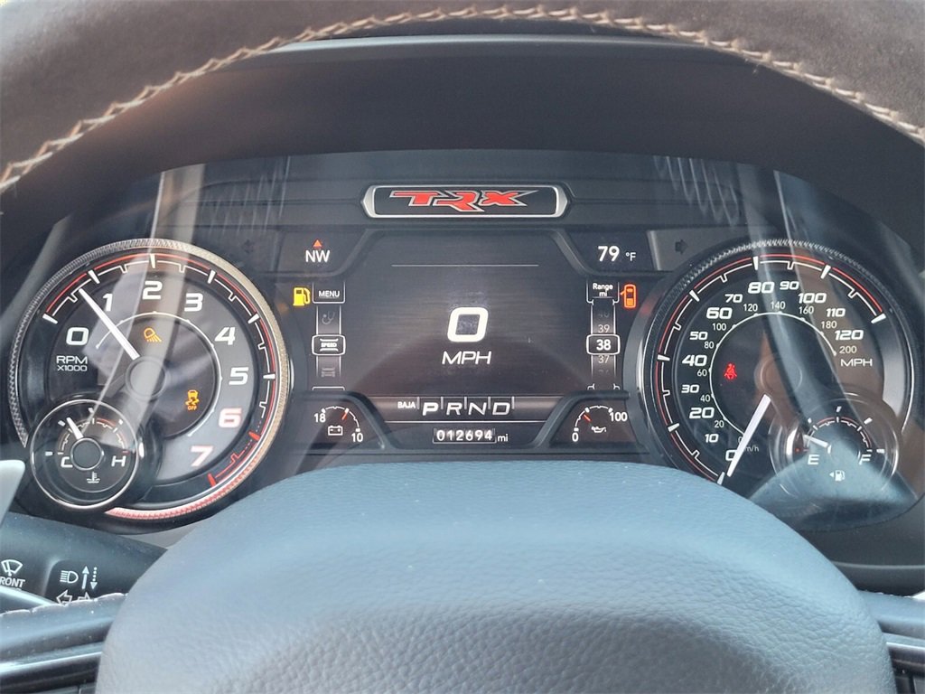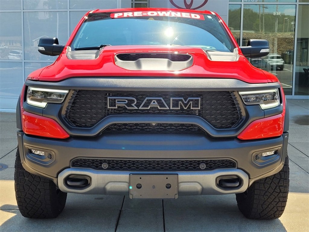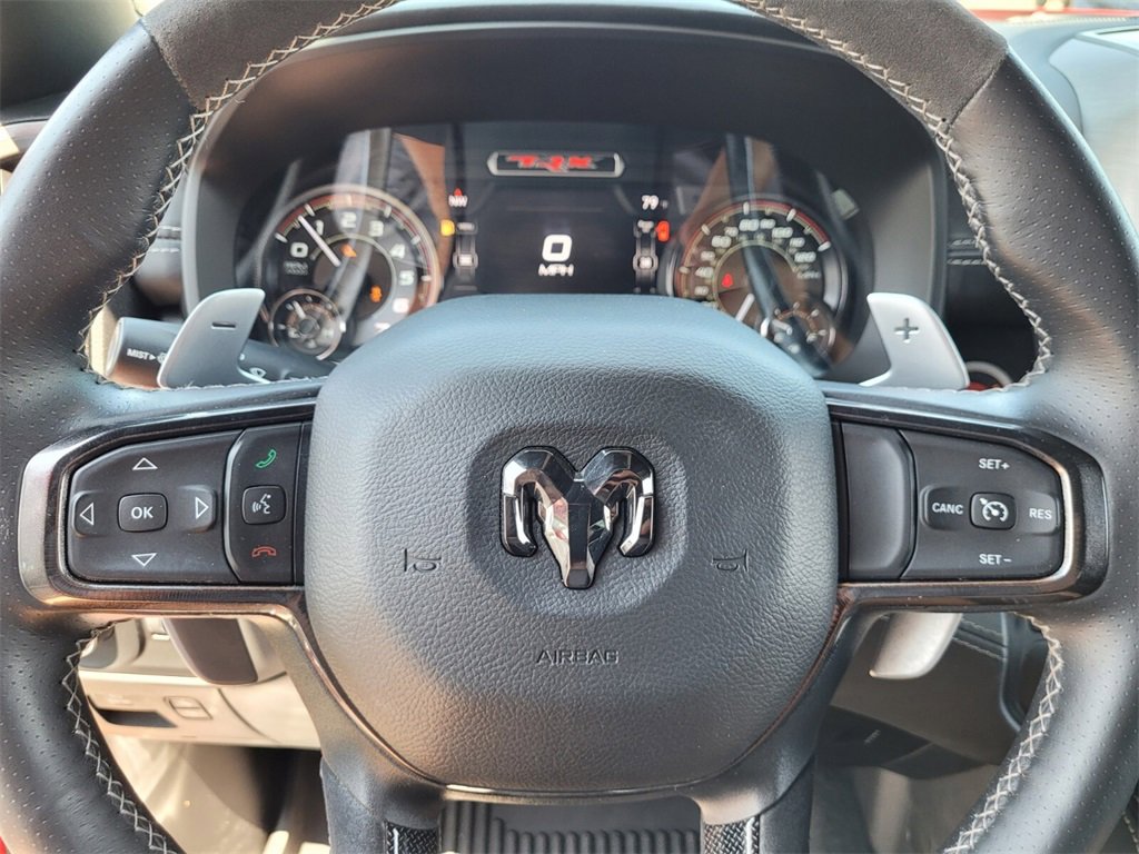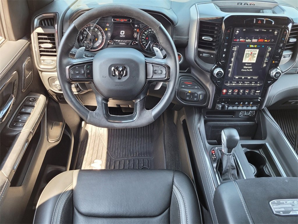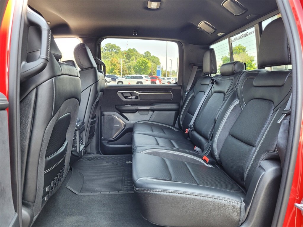 This 2021 Ram 1500 comes equipped with, 10 Speakers, 3.55 Rear Axle Ratio, 4 Way Front Headrests, 4-Wheel Disc Brakes, ABS brakes, Adaptive suspension, Air Conditioning, Alloy wheels, AM/FM radio: SiriusXM with 360L, Apple CarPlay/Android Auto, Auto High-beam Headlights, Auto-dimming door mirrors, Auto-dimming Rear-View mirror, Automatic temperature control, Black Exterior Mirrors, Blind Spot & Cross Path Detection, Body Color Door Handles, Brake assist, Bucket Seats, Cloth/Vinyl Bucket Seats, Compass, Delay-off headlights, Driver door bin, Driver Seat Memory, Driver/Passenger Wrapped Assist Handles, Dual front impact airbags, Dual front side impact airbags, Electronic Stability Control, Emergency communication system: SiriusXM Guardian, Exterior Mirrors Courtesy Lamps, Exterior Mirrors w/Heating Element, Exterior Mirrors w/Memory, Exterior Mirrors w/Supplemental Signals, Front anti-roll bar, Front Bucket Seats, Front Center Armrest w/Storage, Front Door Accent Lighting, Front dual zone A/C, Front fog lights, Front License Plate Bracket, Front reading lights, Front wheel independent suspension, Full Length Premium Upgraded Floor Console, Fully automatic headlights, harman/kardon 19 Speaker Premium Sound, Heads-Up Display, Heated door mirrors, Heated Front Seats, Heated Second Row Seats, Heated Steering Wheel, Illuminated entry, IP LED Ambient Light Pipe, Leather Shift Knob, Leather steering wheel, Leather Trimmed Bucket Seats, Leather/Suede Flat-Bottom Steering Wheel, LED CHMSL Lamp, Low tire pressure warning, Luxury Front Door Trim Panel, Manufacturer's Statement of Origin, Navigation System, Occupant sensing airbag, Outside temperature display, Overhead airbag, Overhead console, Panic alarm, ParkSense Front/Rear Park Assist w/Stop, ParkView Rear Back-Up Camera, Passenger door bin, Passenger vanity mirror, Pick-Up Box Lighting, Power 4-Way Driver Lumbar Adjust, Power 4-Way Passenger Lumbar Adjust, Power 8-Way Driver & Passenger Seats, Power Adjustable Pedals w/Memory, Power door mirrors, Power driver seat, Power steering, Power windows, Power-Folding Mirrors, Premium Wrapped IP Bezel, Quick Order Package 29Y, Radio data system, Radio: Uconnect 12 w/Navigation, Radio/Driver Seat/Mirrors/Pedals Memory, Rain Sensitive Windshield Wipers, Rear 60/40 Folding Split Recline Seat, Rear Door Accent Lighting, Rear seat center armrest, Rear step bumper, Rear Underseat Compartment Storage, Rear Window Defroster, Rearview Autodim Digital Display Mirror, Remote keyless entry, Remote Proximity Keyless Entry, Remote Start System, Remote Tailgate Release, Security system, Speed control, Split folding rear seat, Sport steering wheel, Steering wheel mounted audio controls, Sun Visors w/Illuminated Vanity Mirrors, Surround View Camera System, Tachometer, Technology Group, Telescoping steering wheel, Tilt steering wheel, Traction control, Trailer Brake Control, Trip computer, TRX Level 2 Equipment Group, Turn signal indicator mirrors, Universal Garage Door Opener, Variably intermittent wipers, Ventilated Front Seats, Ventilated Rear Seats, Voltmeter, Wheels: 18" x 9" Black Paint/Polish Aluminum, Wireless Charging Pad. Odometer is 50349 miles below market average!