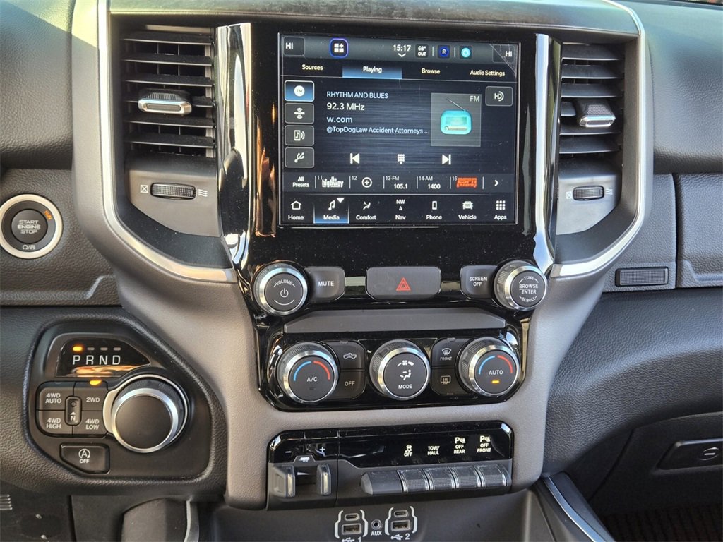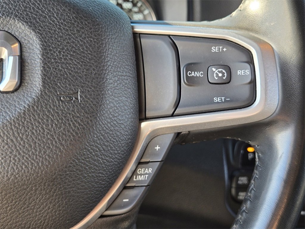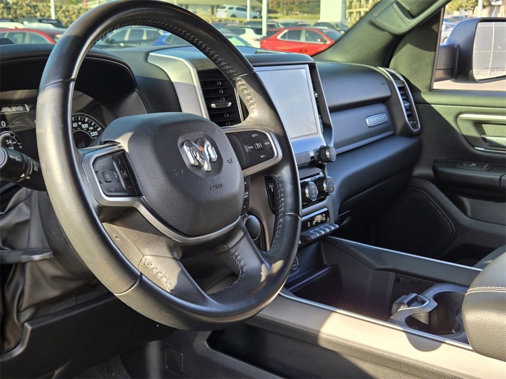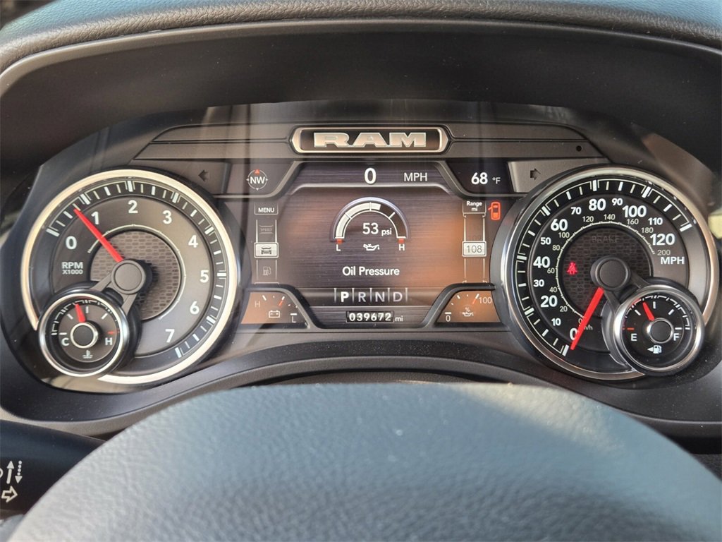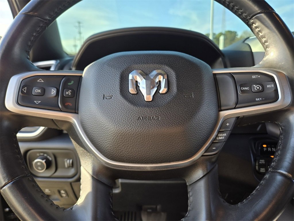 This 2022 Ram 1500 comes equipped with, 2nd Row In Floor Storage Bins, 3 Rear Seat Head Restraints, 3.21 Rear Axle Ratio, 33 Gallon Fuel Tank, 4 Way Front Headrests, 4-Wheel Disc Brakes, 48V Belt Starter Generator, 4G LTE Wi-Fi Hot Spot, 6 Speakers, 8.4" Touchscreen Display, 9 Amplified Speakers w/Subwoofer, ABS brakes, Air Conditioning, Air Conditioning ATC w/Dual Zone Control, All Plant-Installed Decals, All R1 High Radios, All Radio Equipped Vehicles, Alloy wheels, AM/FM radio, Anti-Spin Differential Rear Axle, Apple CarPlay, Auto-Dimming Exterior Driver Mirror, Auto-Dimming Rear-View Mirror, Bed Utility Group, Big Horn Badge, Big Horn Level 1 Equipment Group, Black Exterior Mirrors, Black Interior Accents, Black Premium Power Mirrors, Bluetooth Handsfree Phone & Audio, Body Color Exterior Mirrors, Body Color Front Bumper, Body Color Premium Power Mirrors, Body Color Rear Bumper w/Step Pads, Brake assist, Bridgestone Brand Tires, Bucket Seats, Bumpers: chrome, Class IV Receiver Hitch, Cloth Bench Seat, Cluster 3.5" TFT Color Display, Cluster 7.0" TFT Color Display, Compass, Connected Travel & Traffic Services, Connectivity - US/Canada, Convex Wide-Angle Mirror Insert, Delay-off headlights, Delete LED Lamp - Floor Console Bin, Deluxe Cloth Bucket Seats, Disassociated Touchscreen Display, Driver door bin, Dual front impact airbags, Dual front side impact airbags, Electronic Stability Control, Emergency communication system: SiriusXM Guardian, Exterior Mirrors Courtesy Lamps, Exterior Mirrors w/Heating Element, Exterior Mirrors w/Supplemental Signals, For Details, Visit DriveUconnect.com, Front anti-roll bar, Front Center Armrest w/Storage, Front fog lights, Front License Plate Bracket, Front reading lights, Front Seat Back Map Pockets, Front wheel independent suspension, Full Length Floor Console, Fully automatic headlights, Global Telematics Box Module (TBM), Glove Box Lamp, Google Android Auto, GPS Antenna Input, GPS Navigation, HD Radio, Heated door mirrors, Illuminated entry, Integrated Center Stack Radio, Integrated Voice Command w/Bluetooth, Leather steering wheel, Low tire pressure warning, Manual Adjust 4-Way Front Passenger Seat, Manufacturer's Statement of Origin, MOPAR 4 Adjustable Cargo Tie-Down Hooks, MOPAR Deployable Bed Step, MOPAR Spray In Bedliner, Occupant sensing airbag, Outside temperature display, Overhead airbag, Overhead console, Panic alarm, ParkSense Front/Rear Park Assist w/Stop, ParkView Rear Back-Up Camera, Passenger door bin, Passenger vanity mirror, Pick-Up Box Lighting, Power 2-Way Driver Lumbar Adjust, Power 8-Way Driver Seat, Power Adjustable Pedals, Power door mirrors, Power steering, Power windows, Power-Folding Mirrors, Quick Order Package 23Z Big Horn, Quick Order Package 27Z Big Horn, Radio data system, Radio: Uconnect 3 w/5" Display, Radio: Uconnect 5 Nav w/8.4" Display, Radio: Uconnect 5 W w/8.4" Display, Rear 60/40 Folding Seat, Rear anti-roll bar, Rear Center Armrest, Rear Dome w/On/Off Switch Lamp, Rear Power Sliding Window, Rear seat center armrest, Rear step bumper, Rear Window Defroster, Remote keyless entry, Remote Start System, SiriusXM Radio Service, SiriusXM Satellite Radio, SiriusXM w/360L, Speed control, Split folding rear seat, Sport Appearance Package, Sport Decal, Steering wheel mounted audio controls, Sun Visors w/Illuminated Vanity Mirrors, Tachometer, Telescoping steering wheel, Tilt steering wheel, Traction control, Trailer Brake Control, Trip computer, Universal Garage Door Opener, USB Host Flip, Variably intermittent wipers, Voltmeter, Wheels: 18" x 8" Cast-Aluminum Painted, Wheels: 20" x 9" Aluminum Chrome Clad (WRK). Odometer is 40279 miles below market average!