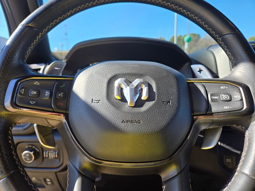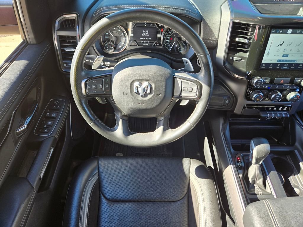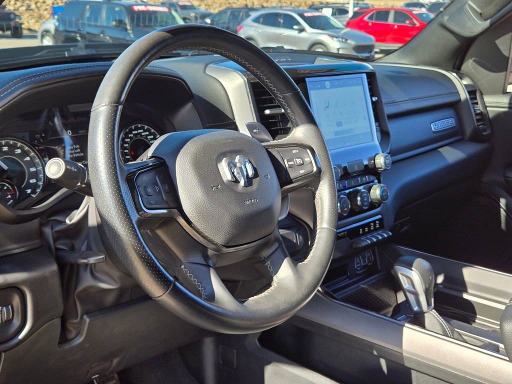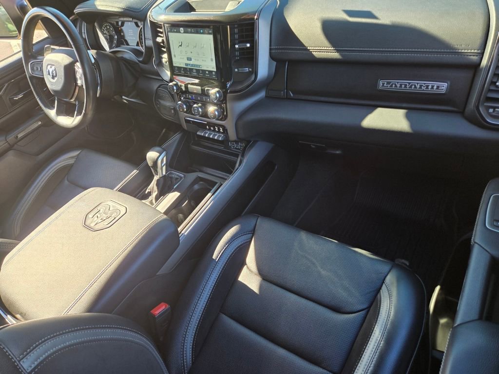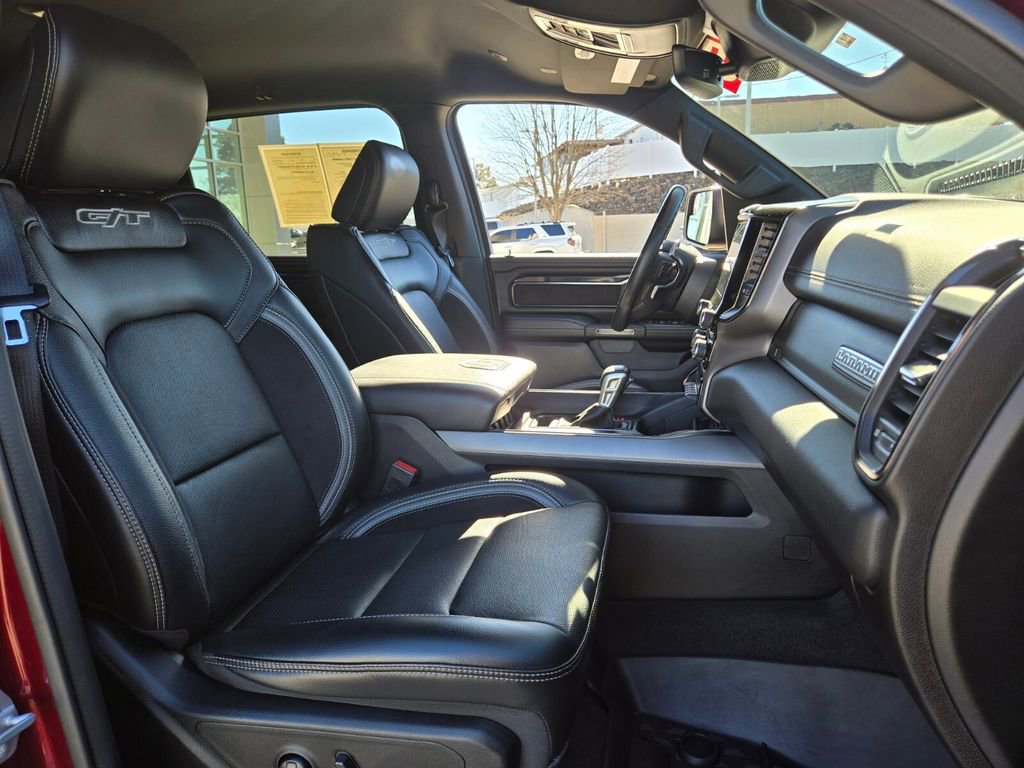 This 2022 Ram 1500 comes equipped with, #1 Seat Foam Cushion, 10 Speakers, 2nd Row In Floor Storage Bins, 3 Rear Seat Head Restraints, 4 Way Front Headrests, 4-Wheel Disc Brakes, 48V Belt Starter Generator, 4G LTE Wi-Fi Hot Spot, 8.4" Touchscreen Display, ABS brakes, Adjustable pedals, Air Conditioning, All Plant-Installed Decals, All R1 High Radios, All Radio Equipped Vehicles, Alloy wheels, AM/FM radio, Apple CarPlay, Apple CarPlay/Android Auto, Audio memory, Auto High Beam Headlamp Control, Auto-dimming door mirrors, Auto-Dimming Exterior Driver Mirror, Auto-dimming Rear-View mirror, Automatic temperature control, Bed Utility Group, Black Interior Accents, Blind Spot & Cross Path Detection, Body Color Door Handles, Body Color Exterior Mirrors, Body Color Front Bumper, Body Color Premium Power Mirrors, Body Color Rear Bumper w/Step Pads, Brake assist, Bucket Seats, Bumpers: chrome, Center Console Parts Module, Chrome Exterior Mirrors, Compass, Connected Travel & Traffic Services, Connectivity - US/Canada, Convex Wide-Angle Mirror Insert, Delay-off headlights, Delete LED Lamp - Floor Console Bin, Disassociated Touchscreen Display, Driver door bin, Driver Seat Memory, Driver vanity mirror, Dual front impact airbags, Dual front side impact airbags, E-Locker Rear Axle, Electronic Stability Control, Exterior Mirrors Courtesy Lamps, Exterior Mirrors w/Heating Element, Exterior Mirrors w/Memory, Exterior Mirrors w/Supplemental Signals, Exterior Parking Camera Rear, Floor Console, Foam Bottle Insert (Door Trim Panel), For Details, Visit DriveUconnect.com, For More Info, Call 800-643-2112, Front anti-roll bar, Front Center Armrest w/Storage, Front dual zone A/C, Front fog lights, Front reading lights, Front Seat Back Map Pockets, Front wheel independent suspension, Full Length Upgraded Floor Console, Fully automatic headlights, G/T Decal, G/T Package, Garage door transmitter, Global Telematics Box Module (TBM), Google Android Auto, GPS Antenna Input, GPS Navigation, Grille Surround 3 Body Color Tex 2 Black, GT Interior Theme, HD Radio, Heated door mirrors, Heated Front Seats, Heated front seats, Heated Steering Wheel, Heated steering wheel, Illuminated entry, Integrated Center Stack Radio, Integrated Voice Command w/Bluetooth, Laramie Level I Equipment Group, Leather steering wheel, Leather Trim 40/20/40 Bench Seat, Leather Trimmed Bucket Seats, Leather Wrapped Shift Knob, Leather-Wrapped Steering Wheel, Leather/Vinyl Bucket Seats, Low tire pressure warning, Manufacturer's Statement of Origin, Memory seat, MOPAR 4 Adjustable Cargo Tie-Down Hooks, MOPAR Bright Pedal Kit, MOPAR Cold Air Intake System, MOPAR Off Road Truck Rubber Floor Mats, MOPAR Spray In Bedliner, Occupant sensing airbag, Outside temperature display, Overhead airbag, Overhead console, Panic alarm, ParkSense Front/Rear Park Assist w/Stop, Passenger door bin, Passenger vanity mirror, Passive Cold End Exhaust, Pedal memory, Pick-Up Box Lighting, Power 2-Way Driver Lumbar Adjust, Power 2-Way Passenger Lumbar Adjust, Power 4-Way Driver Lumbar Adjust, Power 4-Way Passenger Lumbar Adjust, Power 8-Way Driver & Passenger Seats, Power door mirrors, Power driver seat, Power passenger seat, Power steering, Power windows, Power-Folding Mirrors, Quick Order Package 27H Laramie, Radio data system, Radio: Uconnect 5 Nav w/8.4" Display, Radio: Uconnect 5 W w/8.4" Display, Rain Sensitive Windshield Wipers, Rear 60/40 Folding Seat, Rear 60/40 Folding Split Recline Seat, Rear anti-roll bar, Rear seat center armrest, Rear step bumper, Rear Wheelhouse Liners, Rear window defroster, Remote keyless entry, Remote Tailgate Release, Security system, SiriusXM Radio Service, SiriusXM w/360L, Speed control, Split folding rear seat, Sport Appearance Package, Sport Decal, Sport Performance Hood, Steering wheel mounted audio controls, Steering Wheel Mounted Shift Control, Tachometer, Telescoping steering wheel, Tilt steering wheel, Traction control, Tri-Fold Tonneau Cover, Trip computer, Turn signal