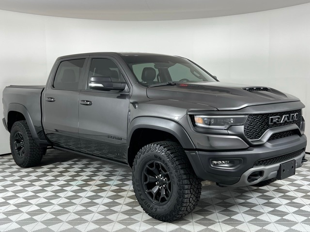 **UNLEASH PURE POWER WITH THIS 2022 RAM 1500 TRX IN GRANITE CRYSTAL METALLIC PACKED WITH A SUPERCHARGED 6.2L HEMI V8 THAT ROARS WITH MUSCLE AND 4WD THAT CONQUERS ANY TERRAIN THIS BEAST IS BUILT FOR THRILLS FROM DESERT RUNS TO HIGHWAY CRUISES STEP INTO THE BLACK INTERIOR AND COMMAND AN 8-SPEED AUTOMATIC THAT BLENDS RAW STRENGTH WITH SMOOTH CONTROL THE TRX IS NOT JUST A TRUCK ITS A SUPERCAR IN A PICKUP BODY**.