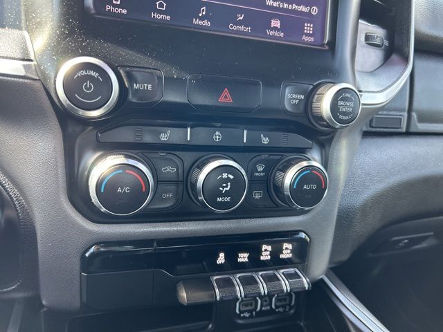 This 2022 Ram 1500 comes equipped with the following features Big Horn Level B Equipment Group (DISC) (115V Auxiliary Power Outlet, 115V Auxiliary Rear Power Outlet, 2nd Row In Floor Storage Bins, 400W Inverter, 4G LTE Wi-Fi Hot Spot, 8.4" Touchscreen Display, Air Conditioning ATC w/Dual Zone Control, Apple CarPlay, Auto-Dimming Exterior Driver Mirror, Auto-Dimming Rear-View Mirror, Black Premium Power Mirrors (GUL), Bluetooth Handsfree Phone & Audio, Class IV Receiver Hitch, Cluster 7.0" TFT Color Display, Connectivity - US/Canada, Exterior Mirrors Courtesy Lamps, Exterior Mirrors w/Supplemental Signals, Foam Bottle Insert (Door Trim Panel), For More Info, Call 800-643-2112, Glove Box Lamp, Google Android Auto, Heated Front Seats, Heated Steering Wheel, Integrated Center Stack Radio, Media Hub w/2 Charge Only USBs, ParkSense Front/Rear Park Assist w/Stop, Power 2-Way Driver Lumbar Adjust, Power 8-Way Driver Seat, Power Adjustable Pedals, Radio: Uconnect 5 W w/8.4" Display, Rear Dome w/On/Off Switch Lamp, Rear Power Sliding Window, Rear Window Defroster, Remote Start System, Security Alarm, SiriusXM Radio Service, SiriusXM Satellite Radio, Sun Visors w/Illuminated Vanity Mirrors, Universal Garage Door Opener, and USB Host Flip), Protection Group (Tow Hooks), Quick Order Package 23Z Big Horn (Big Horn Badge), Quick Order Package 25Z Big Horn, 3 Rear Seat Head Restraints, 3.21 Rear Axle Ratio, 33 Gallon Fuel Tank, 4 Way Front Headrests, 4-Wheel Disc Brakes, 48V Belt Starter Generator, 6 Speakers, ABS brakes, Air Conditioning, Alloy wheels, AM/FM radio, Anti-Spin Differential Rear Axle, Black Exterior Mirrors, Brake assist, Bumpers: chrome, Cloth Bench Seat, Compass, Convex Wide-Angle Mirror Insert, Delay-off headlights, Driver door bin, Dual front impact airbags, Dual front side impact airbags, Electronic Stability Control, Emergency communication system: SiriusXM Guardian, Front anti-roll bar, Front Center Armrest w/Storage, Front fog lights, Front License Plate Bracket, Front reading lights, Front Seat Back Map Pockets, Front wheel independent suspension, Fully automatic headlights, Global Telematics Box Module (TBM), GPS Antenna Input, Heated door mirrors, Heavy-Duty Engine Cooling, Illuminated entry, Integrated Voice Command w/Bluetooth, Leather steering wheel, Low tire pressure warning, MOPAR Front & Rear Rubber Floor Mats, Occupant sensing airbag, Outside temperature display, Overhead airbag, Overhead console, Panic alarm, ParkView Rear Back-Up Camera, Passenger door bin, Passenger vanity mirror, Power door mirrors, Power steering, Power windows, Radio data system, Radio: Uconnect 3 w/5" Display, Rear 60/40 Folding Seat, Rear anti-roll bar, Rear seat center armrest, Rear step bumper, Rear Underseat Compartment Storage (DISC), Remote keyless entry, Speed control, Split folding rear seat, Steering wheel mounted audio controls, Tachometer, Telescoping steering wheel, Tilt steering wheel, Traction control, Trip computer, Variably intermittent wipers, Voltmeter, Wheels: 18" x 8" Cast-Aluminum Painted, and Wheels: 20" x 9" Aluminum Chrome Clad (WRK) CARFAX One-Owner. 2022 Ram 1500 Big Horn/Lone Star 4WD HEMI 5.7L V8 Multi Displacement VVT