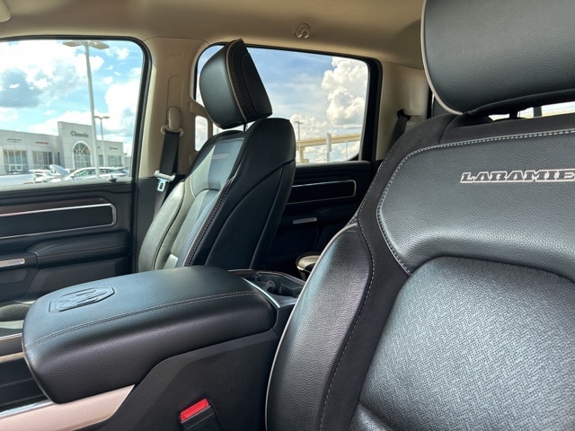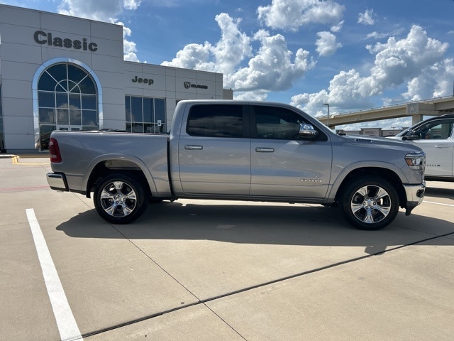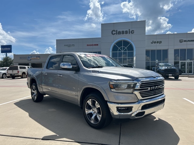 Classic CDJR in Texarkana is proud to offer this fantastic-looking 2022 Ram 1500 in Billet Silver Metallic Clearcoat. This 2022 Ram 1500 comes with the following features; Laramie Level An Equipment Group (DISC) (Auto High Beam Headlamp Control, Foam Bottle Insert (Door Trim Panel), ParkSense Front/Rear Park Assist w/Stop, Rain Sensitive Windshield Wipers, Rear 60/40 Folding Split Recline Seat, and Remote Tailgate Release), Quick Order Package 25H Laramie, #1 Seat Foam Cushion, 10 Speakers, 12" Touchscreen Display, 2nd Row In Floor Storage Bins, 3 Rear Seat Head Restraints, 3.21 Rear Axle Ratio, 4 Way Front Headrests, 4-Wheel Disc Brakes, 48V Belt Starter Generator, 4G LTE Wi-Fi Hot Spot, 8.4" Touchscreen Display, ABS brakes, Adjustable pedals, Air Conditioning, All R1 High Radios, All Radio Equipped Vehicles, Alloy wheels, AM/FM radio: SiriusXM, Anti-Spin Differential Rear Axle, Apple CarPlay, Apple CarPlay/Android Auto, Audio memory, Auto-dimming door mirrors, Auto-Dimming Exterior Driver Mirror, Auto-dimming Rear-View mirror, Automatic temperature control, Brake assist, Bumpers: chrome, Chrome Exterior Mirrors, Compass, Connected Travel & Traffic Services, Connectivity - US/Canada, Convex Wide-Angle Mirror Insert, Delay-off headlights, Disassociated Touchscreen Display, Driver door bin, Driver Seat Memory, Driver vanity mirror, Dual front impact airbags, Dual front side impact airbags, Electronic Stability Control, Exterior Mirrors Courtesy Lamps, Exterior Mirrors w/Heating Element, Exterior Mirrors w/Memory, Exterior Mirrors w/Supplemental Signals, For Details, Visit DriveUconnect.com, For More Info, Call 800-643-2112, Front anti-roll bar, Front Center Armrest w/Storage, Front dual zone A/C, Front fog lights, Front License Plate Bracket, Front reading lights, Front Seat Back Map Pockets, Front wheel independent suspension, Fully automatic headlights, Garage door transmitter, Global Telematics Box Module (TBM), Google Android Auto, GPS Antenna Input, GPS Navigation, HD Radio, Heated door mirrors, Heated Front Seats, Heated front seats, Heated Steering Wheel, Heated steering wheel, Illuminated entry, Integrated Center Stack Radio, Integrated Voice Command w/Bluetooth, Leather steering wheel, Leather Trim 40/20/40 Bench Seat, Low tire pressure warning, Manufacturer's Statement of Origin, Memory seat, Occupant sensing airbag, Outside temperature display, Overhead airbag, Overhead console, Panic alarm, ParkView Rear Back-Up Camera, Passenger door bin, Passenger vanity mirror, Pedal memory, Power 2-Way Driver Lumbar Adjust, Power 2-Way Passenger Lumbar Adjust, Power 8-Way Driver & Passenger Seats, Power door mirrors, Power driver seat, Power passenger seat, Power steering, Power windows, Power-Folding Mirrors, Radio data system, Radio: Uconnect 5 Nav w/12.0" Display, Radio: Uconnect 5 W w/8.4" Display, Rear 60/40 Folding Seat, Rear anti-roll bar, Rear seat center armrest, Rear step bumper, Rear window defroster, Remote keyless entry, Security system, SiriusXM Radio Service, SiriusXM w/360L, Speed control, Split folding rear seat, Steering wheel mounted audio controls, Tachometer, Telescoping steering wheel, Tilt steering wheel, Traction control, Trailer Brake Control, Trip computer, Turn signal indicator mirrors, USB Host Flip, Variably intermittent wipers, Ventilated Front Seats, Ventilated front seats, Voltmeter, Wheels: 18" x 8" Aluminum Base Painted, and Wheels: 20" x 9" Premium Paint/PolisheD.