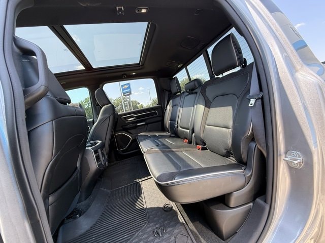 Clean CARFAX. Billet Silver Metallic Clearcoat 2023 Ram 1500 Laramie HEMI 5.7L V8 Multi Displacement VVT eTorque 4WD 8-Speed Automatic The 2023 Ram 1500 comes with the following features; Laramie Level 1 Equipment Group (12 Touchscreen Display, 2nd Row In Floor Storage Bins, 4G LTE Wi-Fi Hot Spot, Apple CarPlay, Auto High Beam Headlamp Control, Blind Spot & Cross Path Detection, Connected Travel & Traffic Services, Connectivity - US/Canada, Disassociated Touchscreen Display, Electric Shift-On-Demand Transfer Case, Foam Bottle Insert (Door Trim Panel), For Details, Visit DriveUconnect.com, For More Info, Call 800-643-2112, Front Door Accent Lighting, Front LED Fog Lamps, Global Telematics Box Module (TBM), Google Android Auto, GPS Antenna Input, GPS Navigation, HD Radio, Integrated Center Stack Radio, Integrated Voice Command w/Bluetooth, LED Reflector Headlamps, Radio: Uconnect 5 Nav w/12.0 Display, Rain Sensitive Windshield Wipers, Rear Door Accent Lighting, Rear Power Sliding Window, Rear Window Defroster, Remote Tailgate Release, SiriusXM Radio Service, SiriusXM w/360L, and USB Host Flip), Laramie Southwest Edition (Auto-Dimming Exterior Driver Mirror, Body Color Exterior Mirrors, Body Color Front Bumper, Body Color Premium Power Mirrors, Body Color Rear Bumper w/Step Pads, Chrome Tow Hooks, Convex Wide-Angle Exterior Mirror Insert, Dome Dual LED Reading Lamp, Dual-Pane Panoramic Sunroof, Exterior Mirrors Courtesy Lamps, Exterior Mirrors w/Heating Element, Exterior Mirrors w/Memory, Exterior Mirrors w/Supplemental Signals, Grille Surround 3 Body Color Tex 4 Chrome, LED Dome/Reading Lamp, MOPAR Lockable Console Storage, Power Running Boards, Power-Folding Mirrors, RAM Grille Badge - Chrome, Trailer Brake Control, and Wheels: 20 x 9 Premium Painted w/Inserts), Off Road Group (E-Locker Rear Axle, Front Extra HD Shock Absorbers, Off Road Decals, Raised Ride Height, Rear Extra HD Shock Absorbers, Selec-Speed (TM) Control, and Tow Hooks), Quick Order Package 27H Laramie, #1 Seat Foam Cushion, 10 Speakers, 3 Rear Seat Head Restraints, 3.21 Rear Axle Ratio, 33 Gallon Fuel Tank, 4 Way Front Headrests, 4-Wheel Disc Brakes, 48V Belt Starter Generator, ABS brakes, Adjustable pedals, Air Conditioning, Alloy wheels, AM/FM radio: SiriusXM with 360L, Apple CarPlay/Android Auto, Audio memory, Auto-dimming door mirrors, Auto-dimming Rear-View mirror, Automatic temperature control, Brake assist, Bumpers: chrome, Chrome Exterior Mirrors, Class IV Receiver Hitch, Compass, Delay-off headlights, Driver door bin, Driver Seat Memory, Driver vanity mirror, Dual front impact airbags, Dual front side impact airbags, Electronic Stability Control, Front anti-roll bar, Front Center Armrest w/Storage, Front dual zone A/C, Front fog lights, Front License Plate Bracket, Front reading lights, Front Seat Back Map Pockets, Front wheel independent suspension, Fully automatic headlights, Garage door transmitter, Heated door mirrors, Heated Front Seats, Heated front seats, Heated Steering Wheel, Heated steering wheel, Illuminated entry, Leather steering wheel, Leather Trim 40/20/40 Bench Seat, Low tire pressure warning, Memory seat, MOPAR Front & Rear Rubber Floor Mats, Navigation System, Occupant sensing airbag, Outside temperature display, Overhead airbag, Overhead console, Panic alarm, ParkSense Front/Rear Park Assist w/Stop (DISC), ParkView Rear Back-Up Camera, Passenger door bin, Passenger vanity mirror, Pedal memory, Power 2-Way Driver Lumbar Adjust, Power 2-Way Passenger Lumbar Adjust, Power 8-Way Driver & Passenger Seats, Power door mirrors, Power driver seat, Power passenger seat, Power steering, Power windows, Radio data system, Radio: Uconnect 5 Nav w/8.4 Display, Rear 60/40 Folding Seat, Rear anti-roll bar, Rear seat center armrest, Rear step bumper, Rear Underseat Compartment Storage, Rear Wheelhouse Liners, Remote keyless entry, Security system, Speed control, Split folding rear seat, Steering wheel