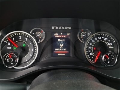 This 2023 Ram 1500 comes equipped with Big Horn Level 1 Equipment Group (2nd Row In Floor Storage Bins, 4G LTE Wi-Fi Hot Spot, 8.4" Touchscreen Display, Apple CarPlay, Auto-Dimming Exterior Driver Mirror, Auto-Dimming Rear-View Mirror, Black Exterior Mirrors, Black Premium Power Mirrors, Bluetooth Handsfree Phone & Audio, Class IV Receiver Hitch, Connectivity - US/Canada, Convex Wide-Angle Exterior Mirror Insert, Electric Shift-On-Demand Transfer Case, Exterior Mirrors Courtesy Lamps, Exterior Mirrors w/Heating Element, Exterior Mirrors w/Supplemental Signals, For Details, Visit DriveUconnect.com, For More Info, Call 800-643-2112, Front Fog Lamps, Glove Box Lamp, Google Android Auto, GPS Antenna Input, Heated Front Seats, Heated Steering Wheel, Integrated Center Stack Radio, Passenger Sun Visor w/Illuminated Mirror, Power-Folding Mirrors, Radio: Uconnect 5 W w/8.4" Display, Rear Dome w/On/Off Switch Lamp, Rear Power Sliding Window, Rear Window Defroster, SiriusXM Satellite Radio, and USB Host Flip), Off Road Group (E-Locker Rear Axle, Front Extra HD Shock Absorbers, Off Road Decals, Raised Ride Height, Rear Extra HD Shock Absorbers, Selec-Speed (TM) Control, and Tow Hooks), Quick Order Package 27Z Big Horn (Big Horn Badge), 3 Rear Seat Head Restraints, 3.21 Rear Axle Ratio, 4 Way Front Headrests, 4-Wheel Disc Brakes, 48V Belt Starter Generator, 6 Speakers, ABS brakes, Air Conditioning, Alloy wheels, AM/FM radio, Brake assist, Bumpers: chrome, Cloth Bench Seat, Compass, Delay-off headlights, Driver door bin, Dual front impact airbags, Dual front side impact airbags, Electronic Stability Control, Emergency communication system: SiriusXM Guardian, Front anti-roll bar, Front Center Armrest w/Storage, Front License Plate Bracket, Front reading lights, Front Seat Back Map Pockets, Front wheel independent suspension, Fully automatic headlights, Global Telematics Box Module (TBM), Heated door mirrors, Illuminated entry, Integrated Voice Command w/Bluetooth, Leather steering wheel, Low tire pressure warning, Occupant sensing airbag, Outside temperature display, Overhead airbag, Overhead console, Panic alarm, ParkView Rear Back-Up Camera, Passenger door bin, Passenger vanity mirror, Power door mirrors, Power steering, Power windows, Radio data system, Radio: Uconnect 3 w/5" Display, RAM Grille Badge - Chrome, Rear 60/40 Folding Seat, Rear anti-roll bar, Rear seat center armrest, Rear step bumper, Remote keyless entry, Remote Start System, Speed control, Split folding rear seat, Steering wheel mounted audio controls, Tachometer, Telescoping steering wheel, Tilt steering wheel, Traction control, Trailer Brake Control, Trip computer, Variably intermittent wipers, Voltmeter, and Wheels: 18" x 8" Cast-Aluminum PainteD. CARFAX One-Owner. 2nd Row In Floor Storage Bins, 4G LTE Wi-Fi Hot Spot, 8.4" Touchscreen Display, Apple CarPlay, Auto-Dimming Exterior Driver Mirror, Auto-Dimming Rear-View Mirror, Big Horn Badge, Big Horn Level 1 Equipment Group, Black Exterior Mirrors, Black Premium Power Mirrors, Bluetooth Handsfree Phone & Audio, Class IV Receiver Hitch, Connectivity - US/Canada, Convex Wide-Angle Exterior Mirror Insert, E-Locker Rear Axle, Electric Shift-On-Demand Transfer Case, Exterior Mirrors Courtesy Lamps, Exterior Mirrors w/Heating Element, Exterior Mirrors w/Supplemental Signals, For Details, Visit DriveUconnect.com, For More Info, Call 800-643-2112, Front Extra HD Shock Absorbers, Front Fog Lamps, Glove Box Lamp, Google Android Auto, GPS Antenna Input, Heated Front Seats, Heated Steering Wheel, Integrated Center Stack Radio, Off Road Decals, Off Road Group, Passenger Sun Visor w/Illuminated Mirror, Power-Folding Mirrors, Quick Order Package 27Z Big Horn, Radio: Uconnect 5 W w/8.4" Display, Raised Ride Height, Rear Dome w/On/Off Switch Lamp, Rear Extra HD Shock Absorbers, Rear Power Sliding Window, Rear Window Defroster, Selec-Speed (TM) Control, SiriusXM Satellite Radio, Tow Hooks, USB Host Flip.