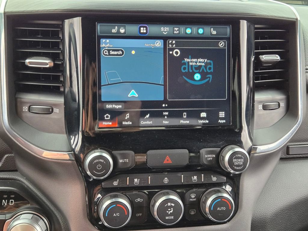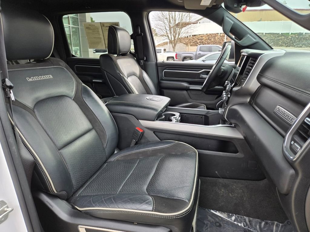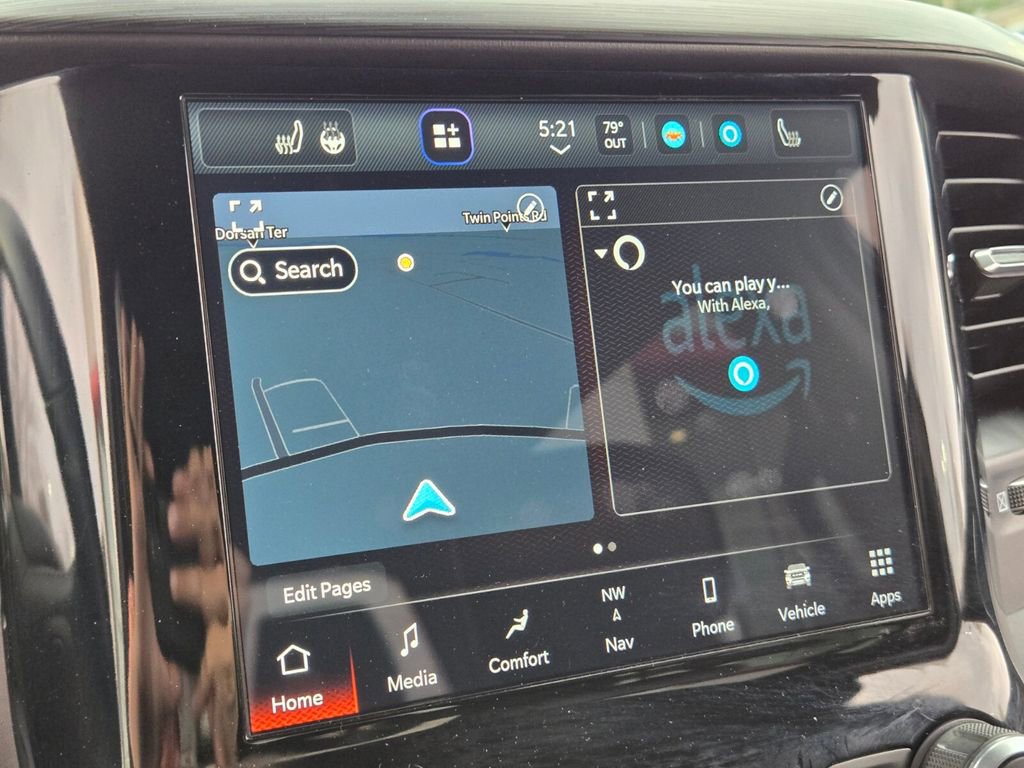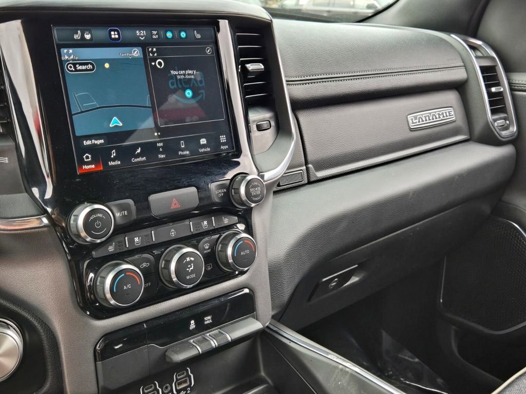 This 2024 Ram 1500 comes equipped with, 10 Speakers, 3 Rear Seat Head Restraints, 3.21 Rear Axle Ratio, 4 Way Front Headrests, 4-Wheel Disc Brakes, 48V Belt Starter Generator, 4G LTE Wi-Fi Hot Spot, ABS brakes, Air Conditioning, Alloy wheels, AM/FM radio: SiriusXM with 360L, Apple CarPlay, Apple CarPlay/Android Auto, Audio memory, Auto-dimming door mirrors, Auto-Dimming Exterior Driver Mirror, Auto-dimming Rear-View mirror, Automatic temperature control, Brake assist, Bumpers: chrome, Chrome Exterior Mirrors, Compass, Connected Travel & Traffic Services, Connectivity - US/Canada, Convex Wide-Angle Exterior Mirror Insert, Delay-off headlights, Driver door bin, Driver Seat Memory, Driver vanity mirror, Dual front impact airbags, Dual front side impact airbags, Electronic Stability Control, Exterior Mirrors Courtesy Lamps, Exterior Mirrors w/Heating Element, Exterior Mirrors w/Memory, Exterior Mirrors w/Supplemental Signals, Exterior Parking Camera Rear, For Details, Visit DriveUconnect.com, For More Info, Call 800-643-2112, Front anti-roll bar, Front Center Armrest w/Storage, Front dual zone A/C, Front fog lights, Front License Plate Bracket, Front reading lights, Front Seat Back Map Pockets, Front wheel independent suspension, Fully automatic headlights, Garage door transmitter, Global Telematics Box Module (TBM), Google Android Auto, GPS Navigation, HD Radio, Heated door mirrors, Heated Front Seats, Heated front seats, Heated Steering Wheel, Heated steering wheel, Illuminated entry, Integrated Voice Command w/Bluetooth, Leather steering wheel, Leather Trim 40/20/40 Bench Seat, Low tire pressure warning, Manufacturer's Statement of Origin, Memory seat, Navigation System, Occupant sensing airbag, Outside temperature display, Overhead airbag, Overhead console, Panic alarm, Passenger door bin, Passenger vanity mirror, Power 2-Way Driver Lumbar Adjust, Power 2-Way Passenger Lumbar Adjust, Power 8-Way Driver & Passenger Seats, Power door mirrors, Power driver seat, Power passenger seat, Power steering, Power windows, Power-Folding Mirrors, Quick Order Package 27H Laramie, Radio data system, Radio: Uconnect 5 Nav w/8.4" Display, RAM Grille Badge - Chrome, Rear 60/40 Folding Seat, Rear anti-roll bar, Rear seat center armrest, Rear step bumper, Remote keyless entry, Security system, SiriusXM Radio Service, SiriusXM w/360L, Speed control, Split folding rear seat, Steering wheel mounted audio controls, Tachometer, Telescoping steering wheel, Tilt steering wheel, Traction control, Trip computer, Turn signal indicator mirrors, Variably intermittent wipers, Ventilated Front Seats, Ventilated front seats, Voltmeter, Wheels: 18" x 8" Aluminum Base Painted.