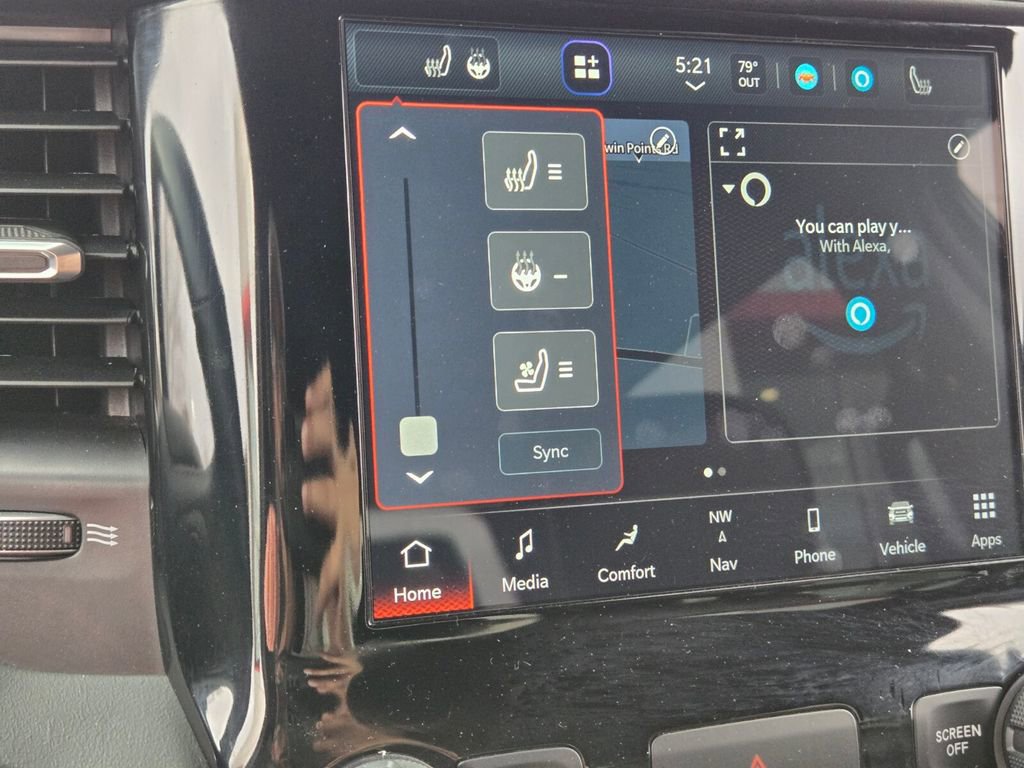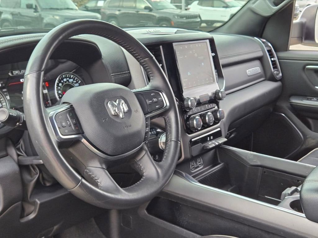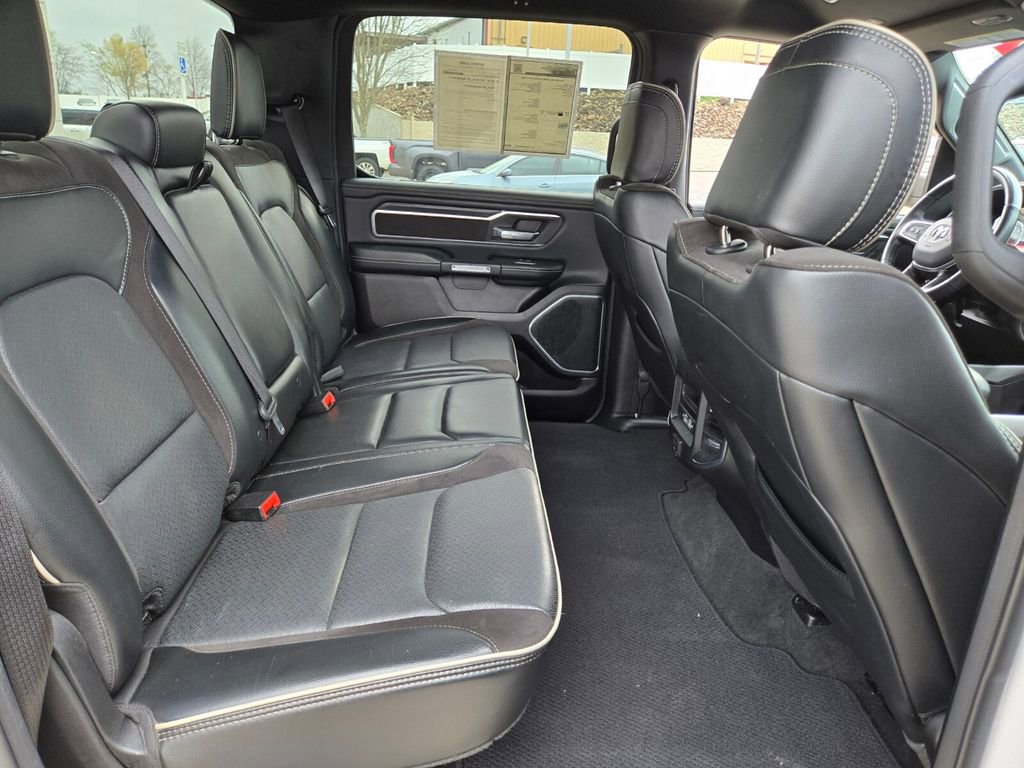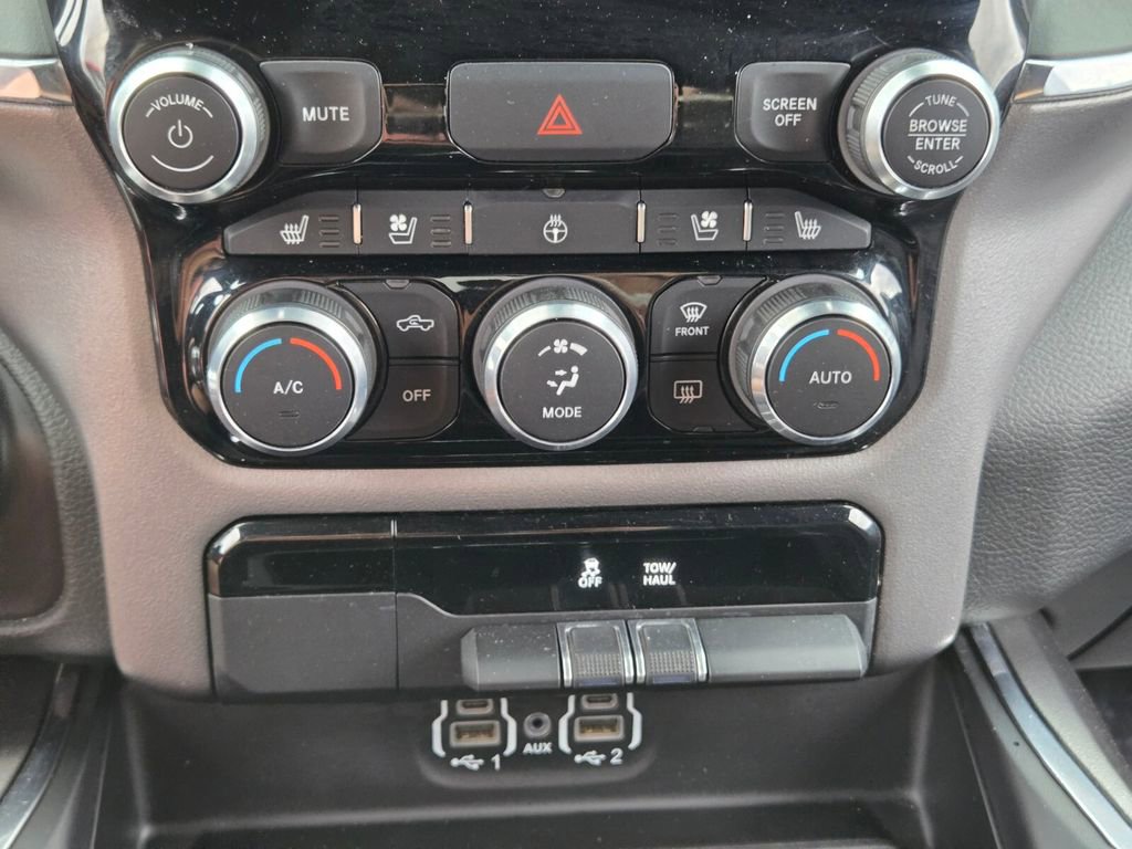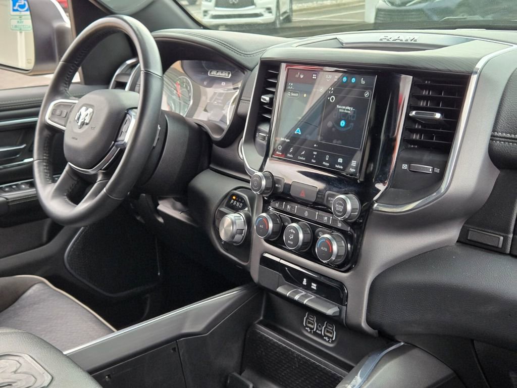 This 2024 Ram 1500 comes equipped with, 10 Speakers, 3 Rear Seat Head Restraints, 3.21 Rear Axle Ratio, 4 Way Front Headrests, 4-Wheel Disc Brakes, 48V Belt Starter Generator, 4G LTE Wi-Fi Hot Spot, ABS brakes, Air Conditioning, Alloy wheels, AM/FM radio: SiriusXM with 360L, Apple CarPlay, Apple CarPlay/Android Auto, Audio memory, Auto-dimming door mirrors, Auto-Dimming Exterior Driver Mirror, Auto-dimming Rear-View mirror, Automatic temperature control, Brake assist, Bumpers: chrome, Chrome Exterior Mirrors, Compass, Connected Travel & Traffic Services, Connectivity - US/Canada, Convex Wide-Angle Exterior Mirror Insert, Delay-off headlights, Driver door bin, Driver Seat Memory, Driver vanity mirror, Dual front impact airbags, Dual front side impact airbags, Electronic Stability Control, Exterior Mirrors Courtesy Lamps, Exterior Mirrors w/Heating Element, Exterior Mirrors w/Memory, Exterior Mirrors w/Supplemental Signals, Exterior Parking Camera Rear, For Details, Visit DriveUconnect.com, For More Info, Call 800-643-2112, Front anti-roll bar, Front Center Armrest w/Storage, Front dual zone A/C, Front fog lights, Front License Plate Bracket, Front reading lights, Front Seat Back Map Pockets, Front wheel independent suspension, Fully automatic headlights, Garage door transmitter, Global Telematics Box Module (TBM), Google Android Auto, GPS Navigation, HD Radio, Heated door mirrors, Heated Front Seats, Heated front seats, Heated Steering Wheel, Heated steering wheel, Illuminated entry, Integrated Voice Command w/Bluetooth, Leather steering wheel, Leather Trim 40/20/40 Bench Seat, Low tire pressure warning, Manufacturer's Statement of Origin, Memory seat, Navigation System, Occupant sensing airbag, Outside temperature display, Overhead airbag, Overhead console, Panic alarm, Passenger door bin, Passenger vanity mirror, Power 2-Way Driver Lumbar Adjust, Power 2-Way Passenger Lumbar Adjust, Power 8-Way Driver & Passenger Seats, Power door mirrors, Power driver seat, Power passenger seat, Power steering, Power windows, Power-Folding Mirrors, Quick Order Package 27H Laramie, Radio data system, Radio: Uconnect 5 Nav w/8.4" Display, RAM Grille Badge - Chrome, Rear 60/40 Folding Seat, Rear anti-roll bar, Rear seat center armrest, Rear step bumper, Remote keyless entry, Security system, SiriusXM Radio Service, SiriusXM w/360L, Speed control, Split folding rear seat, Steering wheel mounted audio controls, Tachometer, Telescoping steering wheel, Tilt steering wheel, Traction control, Trip computer, Turn signal indicator mirrors, Variably intermittent wipers, Ventilated Front Seats, Ventilated front seats, Voltmeter, Wheels: 18" x 8" Aluminum Base Painted.