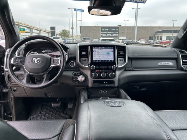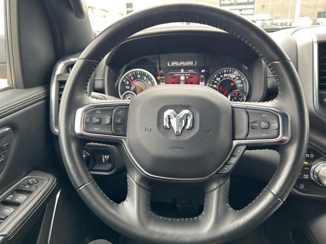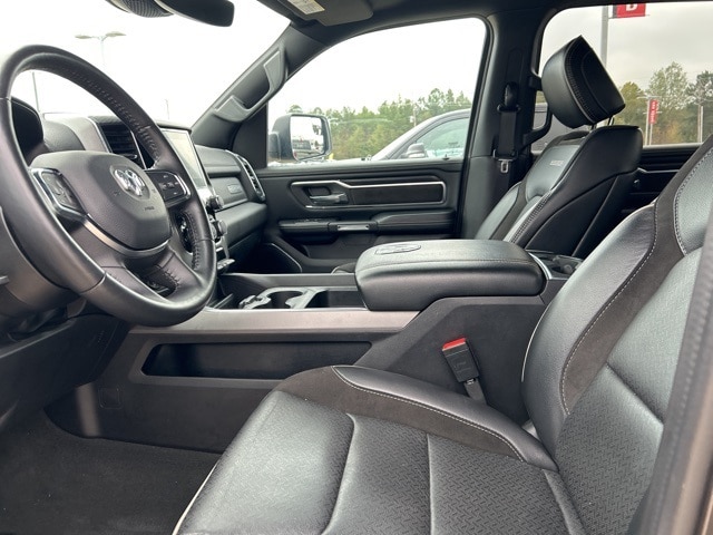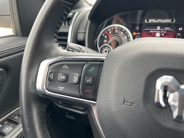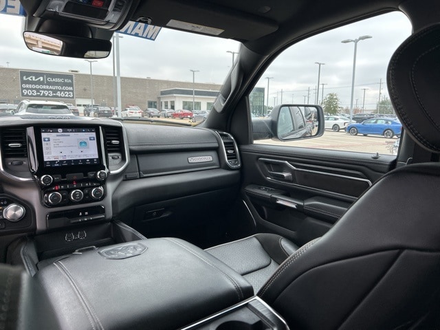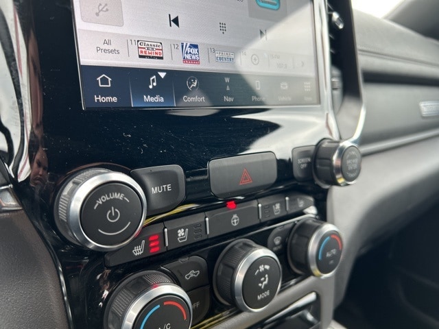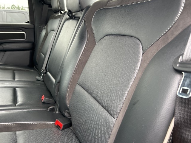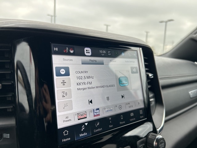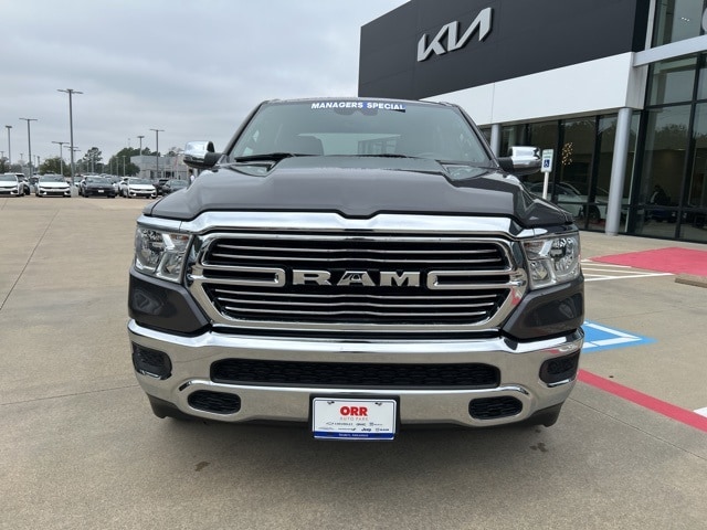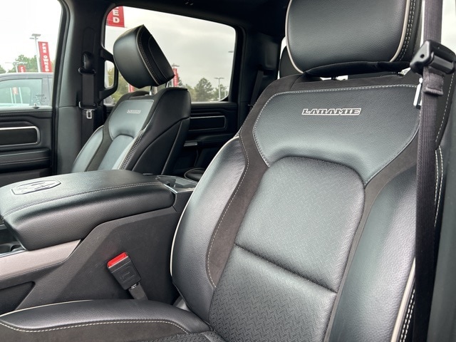 The 2024 Ram 1500 comes with the following features; Quick Order Package 27H Laramie, 10 Speakers, 3 Rear Seat Head Restraints, 3.21 Rear Axle Ratio, 4 Way Front Headrests, 4-Wheel Disc Brakes, 48V Belt Starter Generator, 4G LTE Wi-Fi Hot Spot, ABS brakes, Air Conditioning, Alloy wheels, AM/FM radio: SiriusXM with 360L, Apple CarPlay, Apple CarPlay/Android Auto, Audio memory, Auto-dimming door mirrors, Auto-Dimming Exterior Driver Mirror, Auto-dimming Rear-View mirror, Automatic temperature control, Brake assist, Bumpers: chrome, Chrome Exterior Mirrors, Compass, Connected Travel & Traffic Services, Connectivity - US/Canada, Convex Wide-Angle Exterior Mirror Insert, Delay-off headlights, Driver door bin, Driver Seat Memory, Driver vanity mirror, Dual front impact airbags, Dual front side impact airbags, Electronic Stability Control, Exterior Mirrors Courtesy Lamps, Exterior Mirrors w/Heating Element, Exterior Mirrors w/Memory, Exterior Mirrors w/Supplemental Signals, For Details, Visit DriveUconnect.com, For More Info, Call 800-643-2112, Front anti-roll bar, Front Center Armrest w/Storage, Front dual zone A/C, Front fog lights, Front License Plate Bracket, Front reading lights, Front Seat Back Map Pockets, Front wheel independent suspension, Fully automatic headlights, Garage door transmitter, Global Telematics Box Module (TBM), Google Android Auto, GPS Navigation, HD Radio, Heated door mirrors, Heated Front Seats, Heated front seats, Heated Steering Wheel, Heated steering wheel, Illuminated entry, Integrated Voice Command w/Bluetooth, Leather steering wheel, Leather Trim 40/20/40 Bench Seat, Low tire pressure warning, Manufacturer's Statement of Origin, Memory seat, Navigation System, Occupant sensing airbag, Outside temperature display, Overhead airbag, Overhead console, Panic alarm, ParkView Rear Back-Up Camera, Passenger door bin, Passenger vanity mirror, Power 2-Way Driver Lumbar Adjust, Power 2-Way Passenger Lumbar Adjust, Power 8-Way Driver & Passenger Seats, Power door mirrors, Power driver seat, Power passenger seat, Power steering, Power windows, Power-Folding Mirrors, Radio data system, Radio: Uconnect 5 Nav w/8.4" Display, RAM Grille Badge - Chrome, Rear 60/40 Folding Seat, Rear anti-roll bar, Rear seat center armrest, Rear step bumper, Remote keyless entry, Security system, SiriusXM Radio Service, SiriusXM w/360L, Speed control, Split folding rear seat, Steering wheel mounted audio controls, Tachometer, Telescoping steering wheel, Tilt steering wheel, Traction control, Trip computer, Turn signal indicator mirrors, USB Host Flip, Variably intermittent wipers, Ventilated Front Seats, Ventilated front seats, Voltmeter, and Wheels: 18" x 8" Aluminum Base PainteD.
