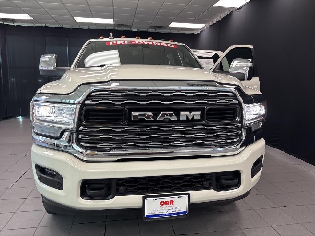 Priced below KBB Fair Purchase Price! CARFAX One-Owner. Clean CARFAX. Pearl White Limited 4WD 6-Speed Automatic Cummins 6.7L I6 Turbodiesel **NAVIGATION**, **CLEAN AUTOCHECK**, **4WD**, **MOONROOF**, **NON SMOKER**, **ONE OWNER**, **LEATHER INTERIOR**, **KEYLESS ENTRY**, **REMOTE START**, **HEATED / COOLED SEATS**, **RUNNING BOARDS**, **WE DELIVER ANYWHERE**, **REAR VIEW CAMERA**, **BLUETOOTH HANDES FREE CALLING**, **MP3 / IPOD COMPATIBLE**, **SPRAY IN BEDLINER**, **TOWING PACKAGE**, **TURBO DIESEL POWER**, 10 Speakers, 12" Touchscreen Display, 17 Speaker harman/kardon Premium Sound, 3.73 Axle Ratio, 4 Adjustable Cargo Tie-Down Hooks, 4-Wheel Disc Brakes, 4G LTE Wi-Fi Hot Spot, ABS brakes, Active Noise Control System, Adaptive Cruise Control w/Stop, Adaptive Steering System, Adjustable pedals, Air Conditioning, Alexa Built-In, Alloy wheels, AM/FM radio: SiriusXM with 360L, Anti-Spin Differential Rear Axle, Apple CarPlay, Apple CarPlay/Android Auto, Audio memory, Auto High-beam Headlights, Auto-dimming door mirrors, Auto-dimming Rear-View mirror, Automatic temperature control, Bodyside moldings, Brake assist, Bumpers: body-color, Center Hub, Center Stop Lamp w/Cargo View Camera, Compass, Connected Travel & Traffic Services, Connectivity - US/Canada, Delay-off headlights, Delete Spray In Bedliner, Digital 3.0 Rear View Auto Dimming Mirror, Digital Rearview Mirror, Disassociated Touchscreen Display, Driver door bin, Driver vanity mirror, Dual front impact airbags, Dual front side impact airbags, Electronic Stability Control, Electronically Controlled Throttle, For Details, Visit DriveUconnect.com, For More Info, Call 800-643-2112, Front anti-roll bar, Front Bucket Seats, Front Center Armrest w/Storage, Front dual zone A/C, Front fog lights, Front License Plate Bracket, Front Performance Tuned Shock Absorbers, Front reading lights, Full Speed Forward Collision Warning Plus, Fully automatic headlights, Garage door transmitter, Genuine wood console insert, Genuine wood dashboard insert, Genuine wood door panel insert, Global Telematics Box Module (TBM), Google Android Auto, GPS Antenna Input, GPS Navigation, HD Radio, Heated door mirrors, Heated front seats, Heated rear seats, Heated steering wheel, Hill Descent Control, Illuminated entry, Instrument Cluster Theme 8, Integrated Voice Command w/Bluetooth, Lane Keep Assist, Leather steering wheel, LED Bed Lighting, Limited Leather Bucket Seats, Limited Level 1 Equipment Group, Low tire pressure warning, Luxury Door Trim Panel (CTH), Memory seat, MOPAR Deployable Bed Step, MOPAR Spray In Bedliner, Navigation System, Occupant sensing airbag, Off Road Package, Off-Road Information Pages, Outside temperature display, Overhead airbag, Overhead console, Panic alarm, ParkView Rear Back-Up Camera, Passenger door bin, Passenger vanity mirror, Pedal memory, Power Deployable Running Boards, Power door mirrors, Power driver seat, Power passenger seat, Power steering, Power Sunroof, Power windows, Quick Order Package 2HM Limited, Radio data system, Radio: Uconnect 5 Nav w/12.0" Display, Rain sensing wipers, RamBox Cargo Management System, Ramcharger Wireless Charging Pad, Rear anti-roll bar, Rear Performance Tuned Shock Absorbers, Rear reading lights, Rear seat center armrest, Rear step bumper, Rear window defroster, Remote keyless entry, Security system, Selectable Tire Fill Alert, SiriusXM Radio Service, SiriusXM w/360L, Speed control, Split folding rear seat, Steering wheel mounted audio controls, Surround View Camera System, Tachometer, Tilt steering wheel, Tip Start, Tow Technology Plus Group, Tow-Mode Camera (Wired), Traction control, Trailer Reverse Guidance, Trailer Reverse Steering Control, Trailer Tow Pages, Trip computer, Truck Bed Cargo Divider, Turn signal indicator mirrors, Variably intermittent wipers, Vendor Painted Cargo Box, Vendor Painted Cargo Box Tracking, Ventilated front seats, Voltmeter, Wheels: 20" x 8.0" Satin Carbon w/Chrome Inserts.