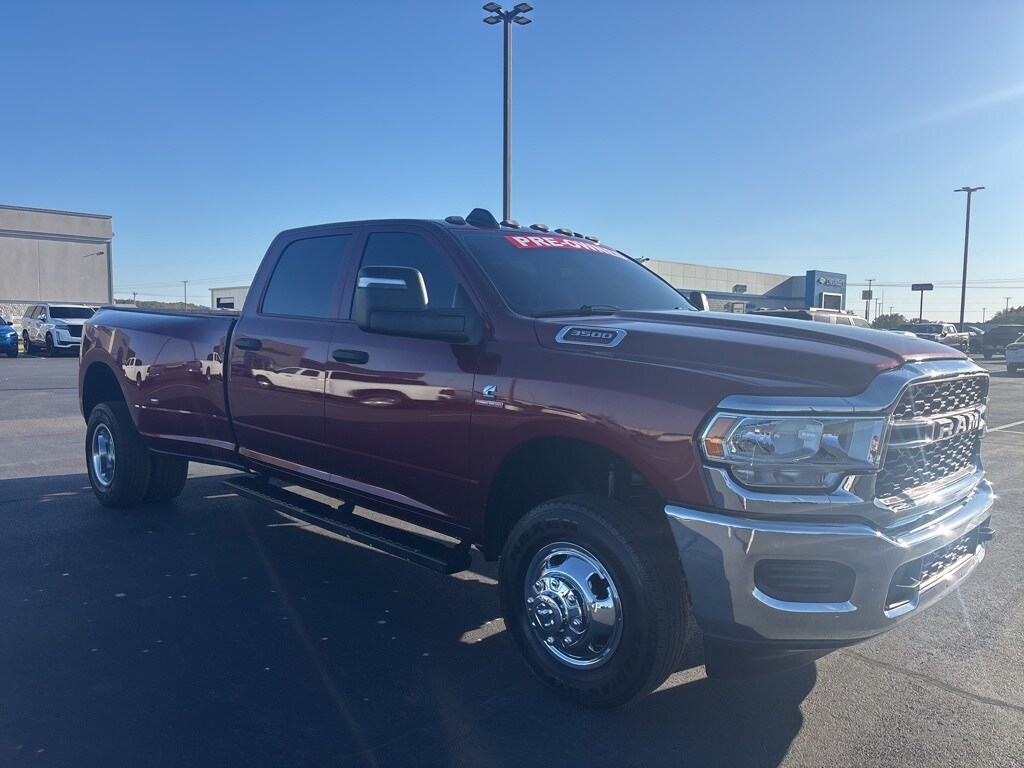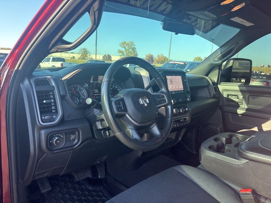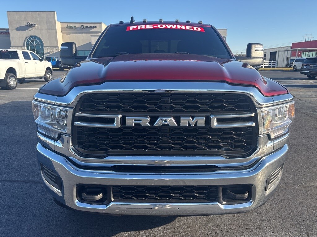 Clean CARFAX. Delmonico Red Pearlcoat Tradesman 4WD 6-Speed Automatic Cummins 6.7L I6 Turbodiesel 2 Way Rear Headrest Seat, 3.73 Axle Ratio, 4 Way Front Headrests, 4-Wheel Disc Brakes, 40/20/40 Split Bench Seat, 4G LTE Wi-Fi Hot Spot, 50 Gallon Fuel Tank, 6000# Front Axle w/Hub Ext, 8.4" Touchscreen Display, ABS brakes, Active Noise Control System, Air Conditioning, AM/FM radio, Black Exterior Mirrors, Bluetooth Handsfree Phone & Audio, Box & Rear Fender Clearance Lamps, Brake assist, Bright Front Bumper, Bright Rear Bumper, Bright Wheel Skins, Carpet Floor Covering, Center Hub, Chrome Appearance Group, Chrome Grille Surround, Chrome Headlamp Bezels, Clearance Lamps, Cloth 40/20/40 Bench Seat, Delay-off headlights, Dual Rear Wheels, Electric Shift-On-The-Fly Transfer Case, Electronic Stability Control, Electronically Controlled Throttle, Exterior Mirrors Courtesy Lamps, Exterior Mirrors w/Heating Element, Exterior Mirrors w/Supplemental Signals, For Details Visit DriveUconnect.com, Front & Rear Floor Mats, Front Armrest w/Cupholders, Front Center Armrest w/Storage, Front reading lights, Fully automatic headlights, GPS Antenna Input, Low tire pressure warning, Manual Adjust 4-Way Driver Seat, Manual Adjust 4-Way Front Passenger Seat, Manual Folding Exterior Mirrors, Manual Telescoping Mirrors, Matte Black Mesh w/Chrome Grille, Mirror Running Lights, Overhead airbag, Panic alarm, ParkView Rear Back-Up Camera, Passenger door bin, Power Adjust Mirrors, Power Heat Fold Telescopic Mirrors, Power windows, Power-Adjustable Convex Aux Mirrors, Quick Order Package 2HA Tradesman, Radio data system, Radio: Uconnect 3 w/5" Display, Rear Folding Seat, Rear Power Sliding Window, Rear step bumper, Rear Wheelhouse Liners, Rear Window Defroster, Remote USB Port - Charge Only, SiriusXM Radio Service, Speed control, Storage Tray, Tilt steering wheel, Tip Start, Traction control, Tradesman Level 2 Equipment Group, Trailer Brake Control, Trailer Light Check, Variably intermittent wipers, Voltmeter, Wheels: 17" x 6.0" Steel Argent.