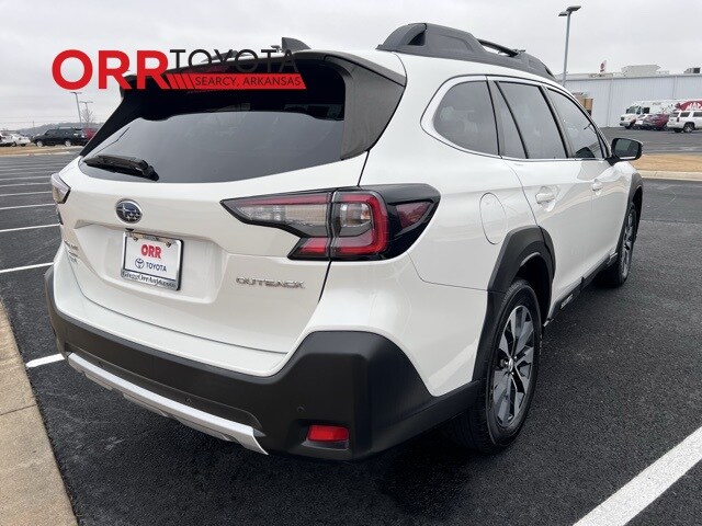 Crystal White Pearl 2023 Subaru Outback Limited AWD CVT Lineartronic 2.5L 4-Cylinder DOHC 16V This Outback Limited is nicely equipped with Standard Model, 12 Speakers, 3.90 Axle Ratio, 4-Wheel Disc Brakes, ABS brakes, Air Conditioning, All-Weather Floor Liners, Alloy wheels, AM/FM radio: SiriusXM, Auto High-beam Headlights, Auto-dimming Rear-View mirror, Automatic temperature control, Brake assist, Bumpers: body-color, Compass, Driver door bin, Driver vanity mirror, Dual front impact airbags, Dual front side impact airbags, Electronic Stability Control, Emergency communication system: STARLINK Safety Plus (3-year free trial), Exterior Parking Camera Rear, Four wheel independent suspension, Front anti-roll bar, Front Bucket Seats, Front Center Armrest w/Storage, Front dual zone A/C, Front fog lights, Front reading lights, Fully automatic headlights, Garage door transmitter: HomeLink, harman/kardon® Speakers, Heated door mirrors, Heated Front Bucket Seats, Heated front seats, Heated rear seats, Illuminated entry, Knee airbag, Leather Shift Knob, Leather steering wheel, Low tire pressure warning, Memory seat, Occupant sensing airbag, Outside temperature display, Overhead airbag, Overhead console, Panic alarm, Passenger door bin, Passenger vanity mirror, Perforated Leather-Trimmed Upholstery, Power door mirrors, Power driver seat, Power Liftgate, Power passenger seat, Power steering, Power windows, Radio: Subaru STARLINK 11.6" Multimedia Plus Sys, Rear anti-roll bar, Rear seat center armrest, Rear window defroster, Rear window wiper, Remote keyless entry, Roof rack, Security system, Speed control, Speed-sensing steering, Split folding rear seat, Spoiler, Steering wheel mounted audio controls, Steering Wheel Paddle Shift Control Switches, Tachometer, Telescoping steering wheel, Tilt steering wheel, Traction control, Trip computer, Turn signal indicator mirrors, Variably intermittent wipers, and Wheels: 18" x 7J Black Aluminum Alloy. Carfax no accidents, Back up camera, Bluetooth, Blind spot monitor, Keyless entry.