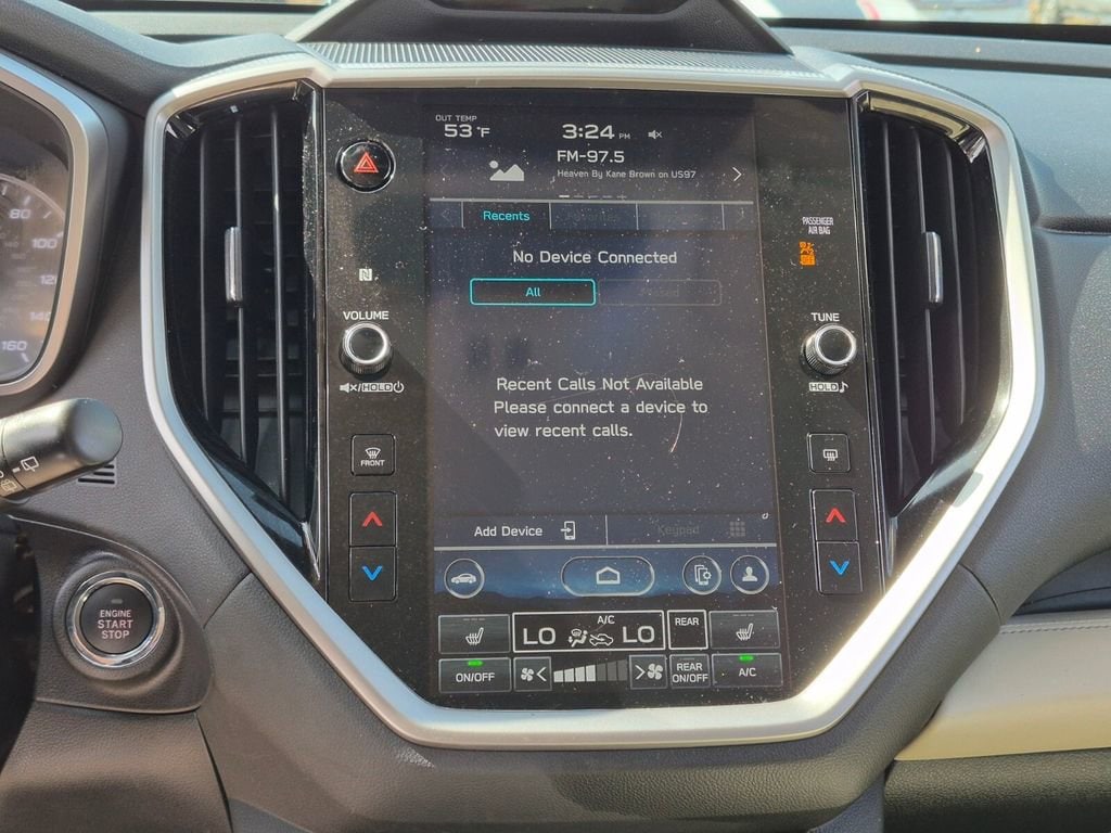 This 2024 Subaru Ascent comes equipped with, 3rd row seats: bench, 4-Wheel Disc Brakes, 6 Speakers, ABS brakes, Air Conditioning, All-Weather Floor Liners, Alloy wheels, AM/FM radio: SiriusXM, Auto High-beam Headlights, Auto-dimming Rear-View mirror, Automatic temperature control, Axle Ratio: 4.44, Brake assist, Bumpers: body-color, Cabin Connect, Compass, Crystal Black Power-Folding Exterior Power Mirrors, Delay-off headlights, Driver door bin, Driver vanity mirror, Dual front impact airbags, Dual front side impact airbags, Electronic Stability Control, Emergency communication system: STARLINK Safety and Security (Subscription Required), Exterior Parking Camera Rear, Four wheel independent suspension, Front anti-roll bar, Front Bucket Seats, Front Center Armrest, Front dual zone A/C, Front fog lights, Front reading lights, Fully automatic headlights, Garage door transmitter: HomeLink, Heated door mirrors, Heated Front Bucket Seats, Heated front seats, Heated rear seats, Heated steering wheel, HVAC memory, Illuminated entry, Knee airbag, Leather Shift Knob, Leather steering wheel, Low tire pressure warning, Memory seat, Occupant sensing airbag, Outside temperature display, Overhead airbag, Overhead console, Panic alarm, Panoramic Power Moonroof w/UV/Drk Tint Dual Glass, Passenger door bin, Passenger vanity mirror, Perforated Leather-Trimmed Upholstery, Power door mirrors, Power driver seat, Power Liftgate, Power passenger seat, Power steering, Power windows, Radio data system, Radio: Subaru STARLINK 11.6" Multimedia Nav System, Radio: Subaru STARLINK 11.6" Multimedia Plus System, Rear air conditioning, Rear anti-roll bar, Rear reading lights, Rear seat center armrest, Rear window defroster, Rear window wiper, Reclining 3rd row seat, Remote keyless entry, Retractable Cargo Area Cover, Security system, Speed control, Speed-sensing steering, Split folding rear seat, Spoiler, STARLINK/Apple CarPlay/Android Auto, Steering wheel mounted audio controls, Surround View Monitor System, Tachometer, Technology Package, Telescoping steering wheel, Tilt steering wheel, Traction control, Trip computer, Turn signal indicator mirrors, Variably intermittent wipers, Wheels: 20" x 7.5 J Dk Gray Alloy w/Machine Finish.