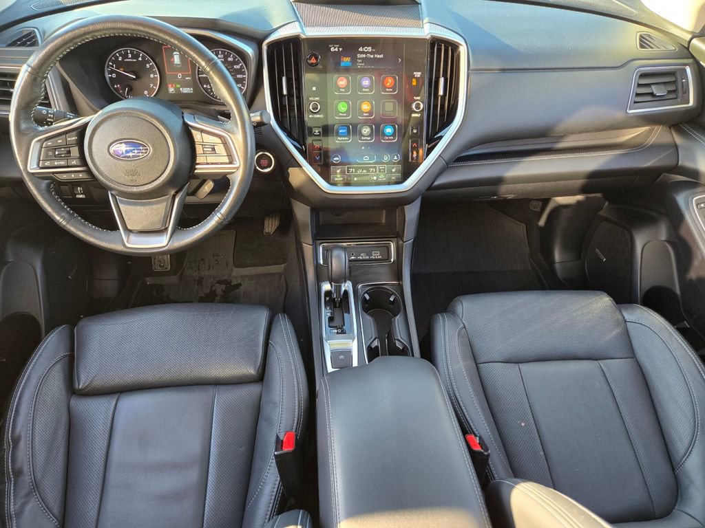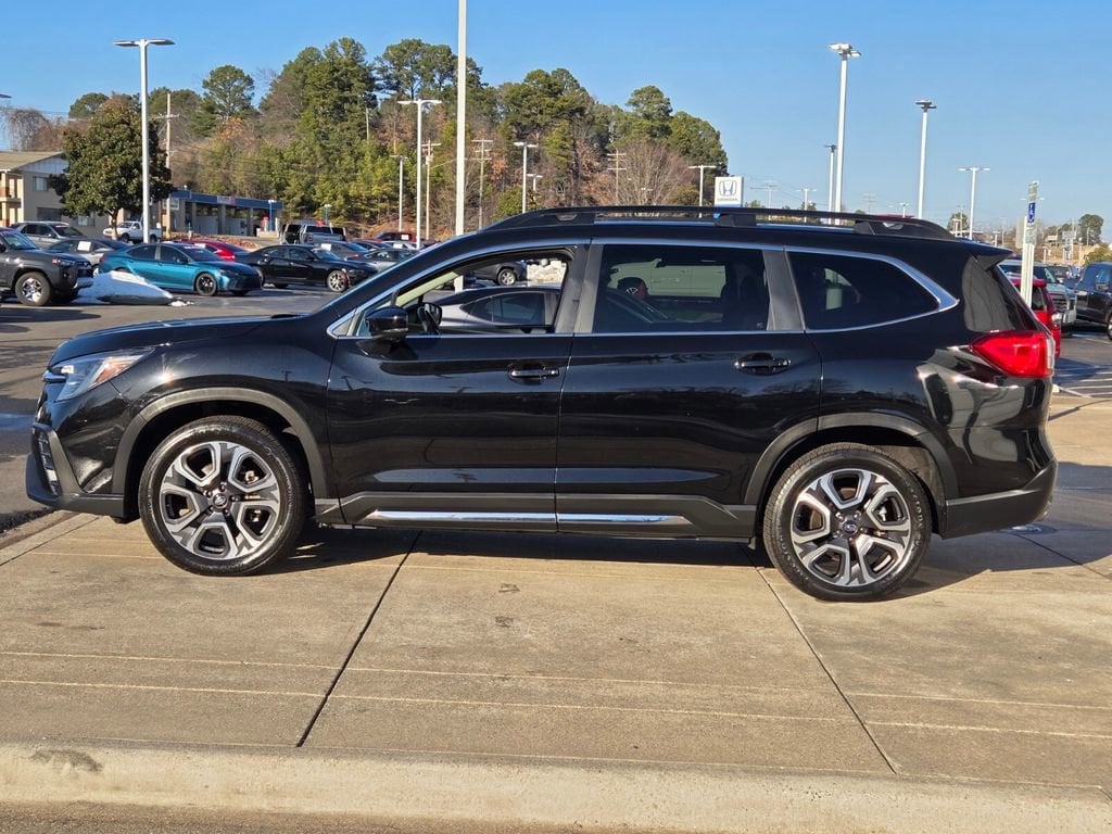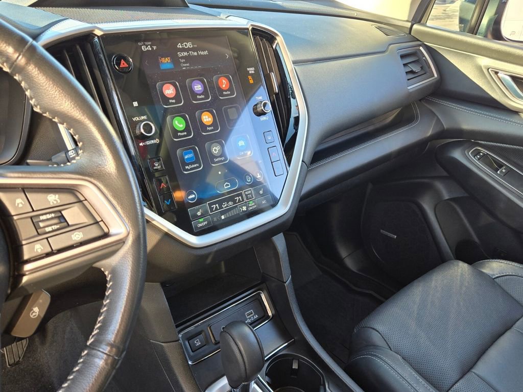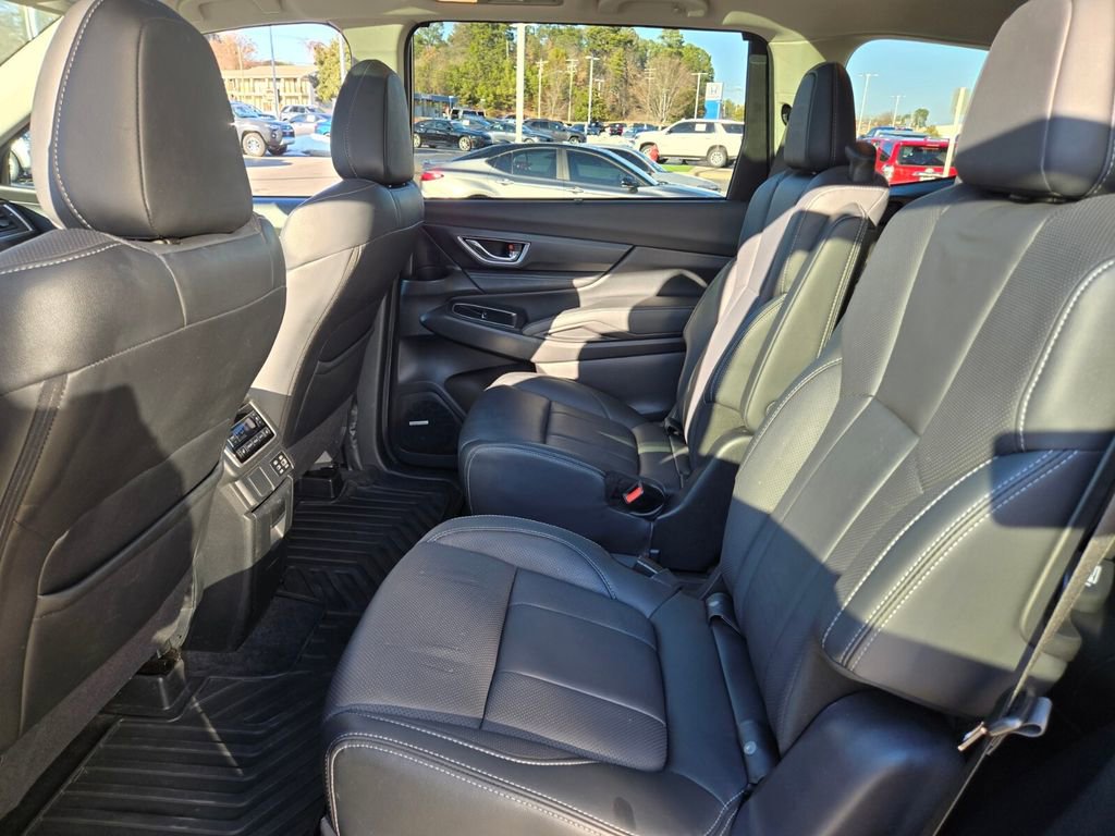 This 2024 Subaru Ascent comes equipped with, 3rd row seats: bench, 4-Wheel Disc Brakes, 6 Speakers, ABS brakes, Air Conditioning, All-Weather Floor Liners, Alloy wheels, AM/FM radio: SiriusXM, Auto High-beam Headlights, Auto-dimming Rear-View mirror, Automatic temperature control, Axle Ratio: 4.44, Brake assist, Bumpers: body-color, Cabin Connect, Compass, Crystal Black Power-Folding Exterior Power Mirrors, Delay-off headlights, Driver door bin, Driver vanity mirror, Dual front impact airbags, Dual front side impact airbags, Electronic Stability Control, Emergency communication system: STARLINK Safety and Security (Subscription Required), Exterior Parking Camera Rear, Four wheel independent suspension, Front anti-roll bar, Front Bucket Seats, Front Center Armrest, Front dual zone A/C, Front fog lights, Front reading lights, Fully automatic headlights, Garage door transmitter: HomeLink, Heated door mirrors, Heated Front Bucket Seats, Heated front seats, Heated rear seats, Heated steering wheel, HVAC memory, Illuminated entry, Knee airbag, Leather Shift Knob, Leather steering wheel, Low tire pressure warning, Memory seat, Occupant sensing airbag, Outside temperature display, Overhead airbag, Overhead console, Panic alarm, Panoramic Power Moonroof w/UV/Drk Tint Dual Glass, Passenger door bin, Passenger vanity mirror, Perforated Leather-Trimmed Upholstery, Power door mirrors, Power driver seat, Power Liftgate, Power passenger seat, Power steering, Power windows, Radio data system, Radio: Subaru STARLINK 11.6" Multimedia Nav System, Radio: Subaru STARLINK 11.6" Multimedia Plus System, Rear air conditioning, Rear anti-roll bar, Rear reading lights, Rear window defroster, Rear window wiper, Reclining 3rd row seat, Remote keyless entry, Retractable Cargo Area Cover, Security system, Speed control, Speed-sensing steering, Split folding rear seat, Spoiler, STARLINK/Apple CarPlay/Android Auto, Steering wheel mounted audio controls, Surround View Monitor System, Tachometer, Technology Package, Telescoping steering wheel, Tilt steering wheel, Traction control, Trip computer, Turn signal indicator mirrors, Variably intermittent wipers, Wheels: 20" x 7.5 J Dk Gray Alloy w/Machine Finish.