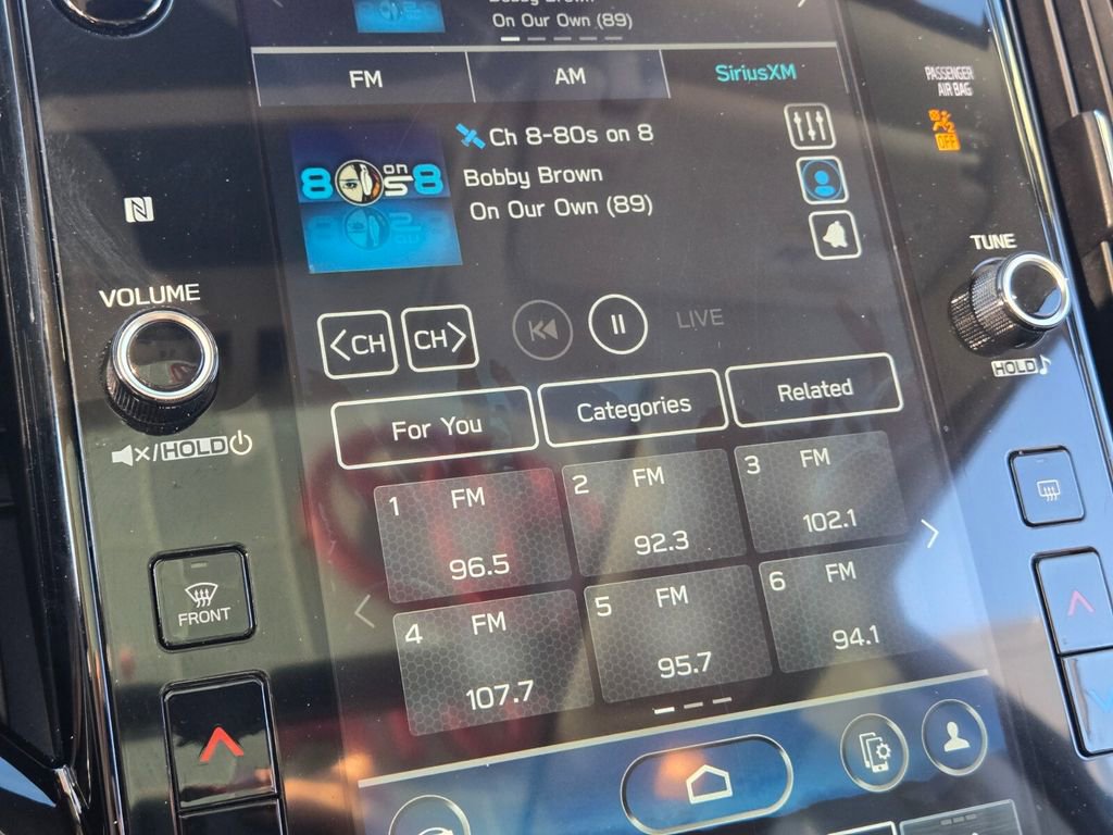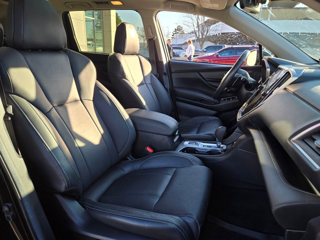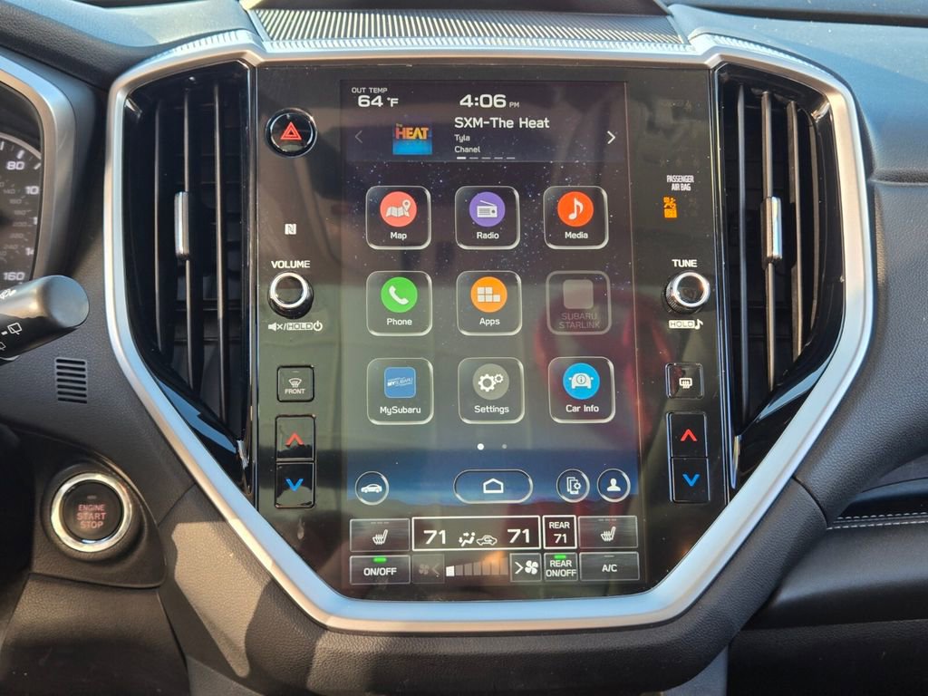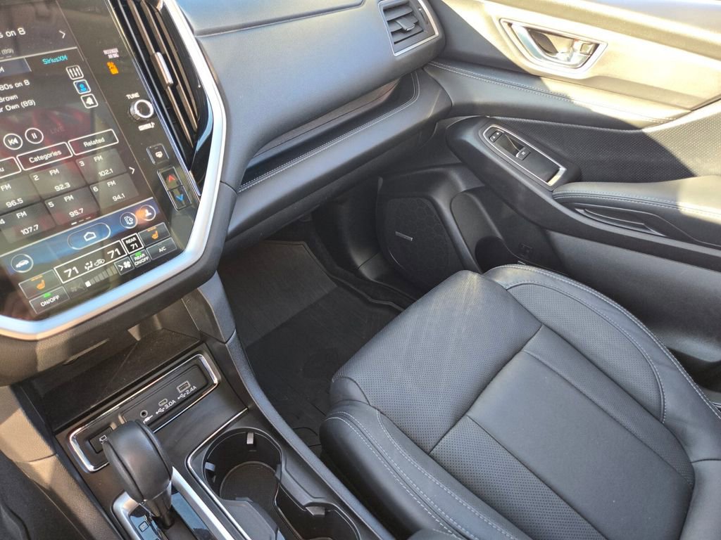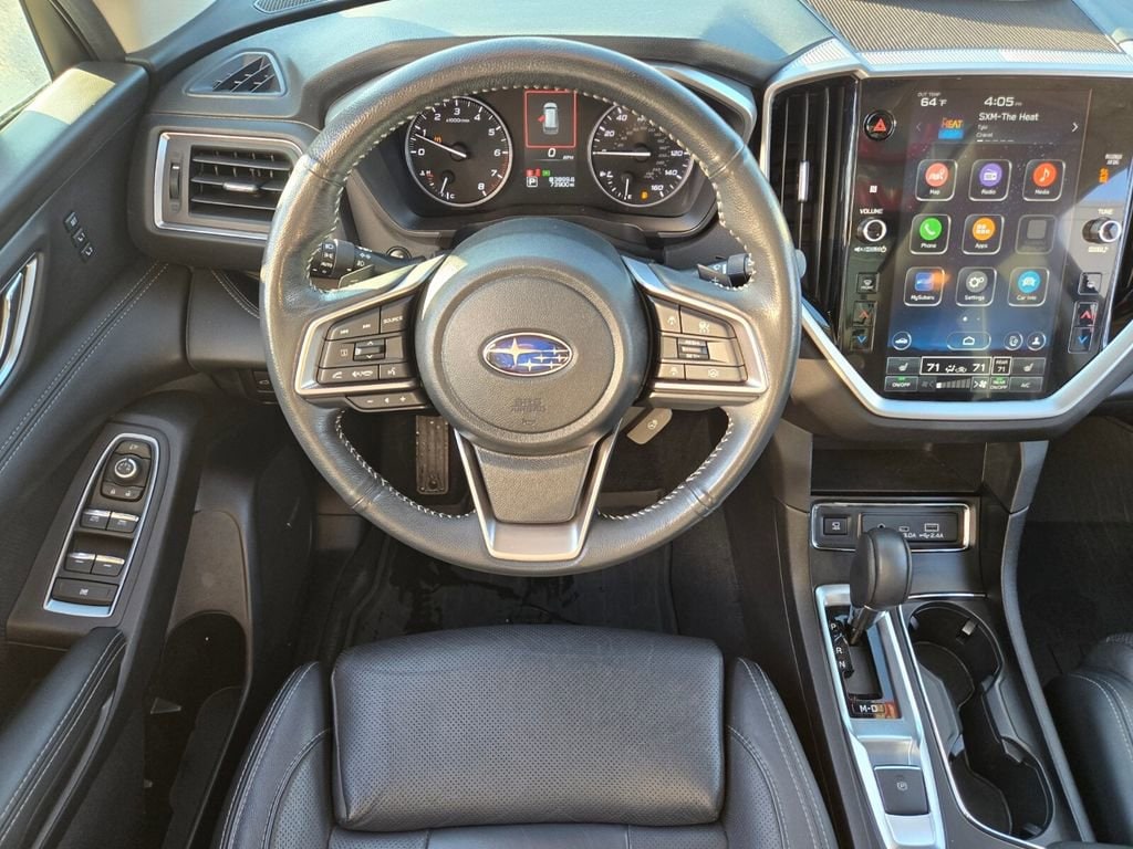 This 2024 Subaru Ascent comes equipped with, 3rd row seats: bench, 4-Wheel Disc Brakes, 6 Speakers, ABS brakes, Air Conditioning, All-Weather Floor Liners, Alloy wheels, AM/FM radio: SiriusXM, Auto High-beam Headlights, Auto-dimming Rear-View mirror, Automatic temperature control, Axle Ratio: 4.44, Brake assist, Bumpers: body-color, Cabin Connect, Compass, Crystal Black Power-Folding Exterior Power Mirrors, Delay-off headlights, Driver door bin, Driver vanity mirror, Dual front impact airbags, Dual front side impact airbags, Electronic Stability Control, Emergency communication system: STARLINK Safety and Security (Subscription Required), Exterior Parking Camera Rear, Four wheel independent suspension, Front anti-roll bar, Front Bucket Seats, Front Center Armrest, Front dual zone A/C, Front fog lights, Front reading lights, Fully automatic headlights, Garage door transmitter: HomeLink, Heated door mirrors, Heated Front Bucket Seats, Heated front seats, Heated rear seats, Heated steering wheel, HVAC memory, Illuminated entry, Knee airbag, Leather Shift Knob, Leather steering wheel, Low tire pressure warning, Memory seat, Occupant sensing airbag, Outside temperature display, Overhead airbag, Overhead console, Panic alarm, Panoramic Power Moonroof w/UV/Drk Tint Dual Glass, Passenger door bin, Passenger vanity mirror, Perforated Leather-Trimmed Upholstery, Power door mirrors, Power driver seat, Power Liftgate, Power passenger seat, Power steering, Power windows, Radio data system, Radio: Subaru STARLINK 11.6" Multimedia Nav System, Radio: Subaru STARLINK 11.6" Multimedia Plus System, Rear air conditioning, Rear anti-roll bar, Rear reading lights, Rear window defroster, Rear window wiper, Reclining 3rd row seat, Remote keyless entry, Retractable Cargo Area Cover, Security system, Speed control, Speed-sensing steering, Split folding rear seat, Spoiler, STARLINK/Apple CarPlay/Android Auto, Steering wheel mounted audio controls, Surround View Monitor System, Tachometer, Technology Package, Telescoping steering wheel, Tilt steering wheel, Traction control, Trip computer, Turn signal indicator mirrors, Variably intermittent wipers, Wheels: 20" x 7.5 J Dk Gray Alloy w/Machine Finish.