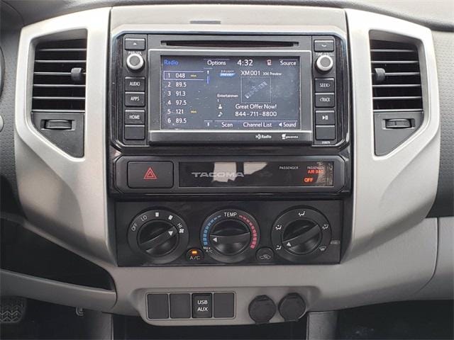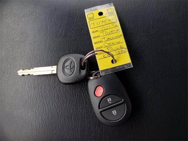 This 2015 Toyota Tacoma comes equipped with, One owner Carfax, 16' x 7J+30 Style Steel Wheels, 3.727 Axle Ratio, 6 Speakers, ABS brakes, Air Conditioning, AM/FM radio, Anti-whiplash front head restraints, Brake assist, CD player, Driver door bin, Dual front impact airbags, Dual front side impact airbags, Electronic Stability Control, Fabric Seat Trim, Front anti-roll bar, Front Bucket Seats, Front Center Armrest, Front reading lights, Front wheel independent suspension, Illuminated entry, Low tire pressure warning, MP3 decoder, Occupant sensing airbag, Overhead airbag, Overhead console, Passenger door bin, Passenger vanity mirror, Power door mirrors, Power steering, Power windows, Radio: Entune AM/FM/CD, Rear step bumper, Speed-sensing steering, Split folding rear seat, Tachometer, Telescoping steering wheel, Tilt steering wheel, Traction control. CARFAX One-Owner. Clean CARFAX. Blue 2015 Toyota Tacoma PreRunner V6 RWD 5-Speed Automatic 4.0L V6 EFI DOHC 24V Awards: * JD Power Initial Quality Study (IQS), Vehicle Dependability Study * JD Power Initial Quality Study (IQS) * ALG Residual Value Awards, Residual Value Awards * 2015 KBB.com Best Resale Value Awards Reviews: * If youre looking for a compact pickup with a solid gold reputation for durability and reliability, the short list of choices will likely land you in one of the many 2015 Toyota Tacoma models. Off-roaders will appreciate the new TRD Pro Series. Source: KBB.com * Choice of four-cylinder or V6 power; good four-cylinder fuel economy; serious off-road prowess; standard touchscreen; convenient size; strong resale value. Source: Edmunds * Get ready to have some serious fun with the most adrenaline-inducing lineup of off-road vehicles ever unleashed, the 2015 Toyota Tacoma Pro. It has muscular curves and a rugged look, complimented by large bumpers, bulging fenders, and a big grille. The 2015 Tacoma starts the adventure with available 4WD, an electronically controlled transfer case, stability control sensors and available BFGoodrich off-road tires, to deliver maximum traction. Whether it is for work or play, the Tacoma can handle all you throw at it in a more manageable form than a full-size pickup. Offered in three cab: Regular Cab fits up to 3 people, the Access Cab seats 4, and the Double Cab with large four doors and spacious interior for 5. Each cab size can be purchased as a Rear-Wheel Drive, or with 4WDemand part-time 4WD that can switch from 2WD to 4WD and back even while the vehicle is in motion. Each drivetrain is available with an automatic or a manual transmission. The exception is the Double Cab 4x2s, which are automatics only. All Regular Cab trims are powered by a 2.7-Liter, 159 Horsepower, 4-Cylinder engine. The Access Cab and Double Cabs add an optional 4.0-Liter, 236 Horsepower V6, exclusive to certain trims. Its fiber-reinforced composite bed has better impact strength than steel. Everywhere you look, you'll find thoughtful additions like rails, rings and compartments that make loading/unloading super easy. The interior has a modern urban feel, with controls and instruments that are easy to see and use. Sit inside and appreciate its intuitive feel, that is easy to maintain and comfortable as well. Offered with four levels of Entune audio, which uses compatible smartphones to provide access to information, entertainment and navigation. Source: The Manufacturer Summary