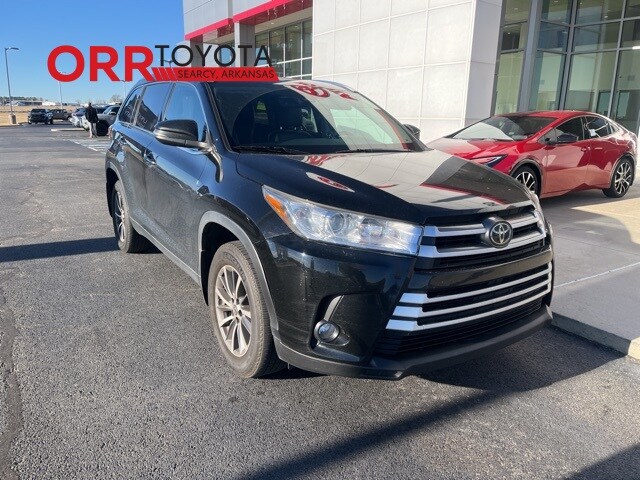 Midnight Black Metallic 2019 Toyota Highlander XLE FWD 8-Speed Automatic Electronic with ECT-i 3.5L V6 This Highlander XLE is nicely equipped with 3.003 Axle Ratio, 3rd row seats: split-bench, 4-Wheel Disc Brakes, 6 Speakers, ABS brakes, Air Conditioning, Alloy wheels, AM/FM radio: SiriusXM, Auto High-beam Headlights, Auto-dimming Rear-View mirror, Automatic temperature control, Brake assist, Bumpers: body-color, CD player, Delay-off headlights, Driver door bin, Driver vanity mirror, Dual front impact airbags, Dual front side impact airbags, Electronic Stability Control, Exterior Parking Camera Rear, Four wheel independent suspension, Front anti-roll bar, Front Bucket Seats, Front Center Armrest, Front dual zone A/C, Front fog lights, Front reading lights, Fully automatic headlights, Garage door transmitter, Heated door mirrors, Heated Front Bucket Seats, Heated front seats, Illuminated entry, Knee airbag, Leather Seat Trim, Leather Shift Knob, Low tire pressure warning, Navigation System, Occupant sensing airbag, Outside temperature display, Overhead airbag, Overhead console, Panic alarm, Passenger door bin, Passenger vanity mirror, Power door mirrors, Power driver seat, Power Liftgate, Power moonroof, Power passenger seat, Power steering, Power windows, Radio: Entune Premium Audio w/Nav & App Suite, Rear air conditioning, Rear anti-roll bar, Rear reading lights, Rear window defroster, Rear window wiper, Reclining 3rd row seat, Remote keyless entry, Roof rack: rails only, Seating for 8: 2nd Row 60/40 Bench Seat, Security system, Speed control, Speed-sensing steering, Split folding rear seat, Spoiler, Steering wheel mounted audio controls, Tachometer, Telescoping steering wheel, Tilt steering wheel, Traction control, Trip computer, Turn signal indicator mirrors, Variably intermittent wipers, and Wheels: 18" Turbine-Look Alloy. Back up camera, Bluetooth, Keyless entry.
