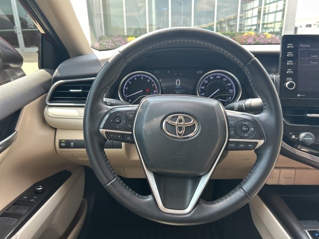 27/38 City/Highway MPG Classic CDJR in Texarkana is proud to offer this fantastic 2021 Toyota Camry in Ruby. This 2021 Toyota Camry comes with the following features; Macadamia Leather, 4-Wheel Disc Brakes, 6 Speakers, ABS brakes, Air Conditioning, Alloy wheels, AM/FM radio: SiriusXM, Apple CarPlay/Android Auto, Auto High-beam Headlights, Auto-dimming Rear-View mirror, Automatic temperature control, Brake assist, Bumpers: body-color, Delay-off headlights, Driver door bin, Driver vanity mirror, Dual front impact airbags, Dual front side impact airbags, Electronic Stability Control, Emergency communication system: Safety Connect with 1-year trial, Exterior Parking Camera Rear, Four wheel independent suspension, Front anti-roll bar, Front Bucket Seats, Front Center Armrest, Front dual zone A/C, Front reading lights, Fully automatic headlights, Garage door transmitter: HomeLink, Heated door mirrors, Heated front seats, Illuminated entry, Knee airbag, Low tire pressure warning, Multi-Stage Heated Front Bucket Seats, Occupant sensing airbag, Outside temperature display, Overhead airbag, Overhead console, Panic alarm, Panoramic Glass Roof, Passenger door bin, Passenger vanity mirror, Perforated Leather Seat Trim, Power door mirrors, Power driver seat, Power passenger seat, Power steering, Power windows, Radio data system, Radio: AM/FM/HD Audio Plus, Rear anti-roll bar, Rear reading lights, Rear seat center armrest, Rear side impact airbag, Rear window defroster, Remote keyless entry, Security system, Speed control, Speed-sensing steering, Split folding rear seat, Steering wheel mounted audio controls, Tachometer, Telescoping steering wheel, Tilt steering wheel, Traction control, Trip computer, Turn signal indicator mirrors, Variably intermittent wipers, and Wheels: 8.0J x 18" Dark Gray Machined-Finish Alloy. Macadamia Leather.