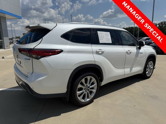 CARFAX One-Owner. 36/35 City/Highway MPG Blizzard Pearl 2021 Toyota Highlander Hybrid Limited 2.5L I4 PDI Hybrid DOHC 16V LEV3-SULEV30 186hp FWD eCVT The 2021 Toyota Highlander Hybrid comes with the following features; 2.5L I4 PDI Hybrid DOHC 16V LEV3-SULEV30 186hp, 11 Speakers, 3rd row seats: split-bench, 4-Wheel Disc Brakes, ABS brakes, Air Conditioning, Alloy wheels, AM/FM radio: SiriusXM, Apple CarPlay/Android Auto, Auto High-beam Headlights, Auto-dimming Rear-View mirror, Automatic temperature control, Axle Ratio TBD, Brake assist, Bumpers: body-color, Chrome wheels, Delay-off headlights, Driver door bin, Driver vanity mirror, Dual front impact airbags, Dual front side impact airbags, Electronic Stability Control, Emergency communication system: Safety Connect with 1-year trial, Exterior Parking Camera Rear, Four wheel independent suspension, Front anti-roll bar, Front Bucket Seats, Front Center Armrest, Front dual zone A/C, Front fog lights, Front reading lights, Fully automatic headlights, Garage door transmitter: HomeLink, Heated & Ventilated Front Bucket Seats, Heated door mirrors, Heated front seats, Heated steering wheel, Illuminated entry, Knee airbag, Leather Seat Trim, Leather Shift Knob, Low tire pressure warning, Memory seat, Navigation system: Dynamic Navigation (3-year trial), Occupant sensing airbag, Outside temperature display, Overhead airbag, Overhead console, Panic alarm, Passenger door bin, Passenger vanity mirror, Power door mirrors, Power driver seat, Power Liftgate, Power moonroof, Power passenger seat, Power steering, Power windows, Radio: JBL Premium Audio w/Navigation System, Rear air conditioning, Rear anti-roll bar, Rear reading lights, Rear window defroster, Rear window wiper, Reclining 3rd row seat, Remote keyless entry, Roof rack: rails only, Security system, Speed control, Speed-sensing steering, Split folding rear seat, Spoiler, Steering wheel mounted audio controls, Telescoping steering wheel, Tilt steering wheel, Traction control, Trip computer, Turn signal indicator mirrors, Variably intermittent wipers, Ventilated front seats, and Wheels: 20 Limited Composite. 2.5L I4 PDI Hybrid DOHC 16V LEV3-SULEV30 186hp.