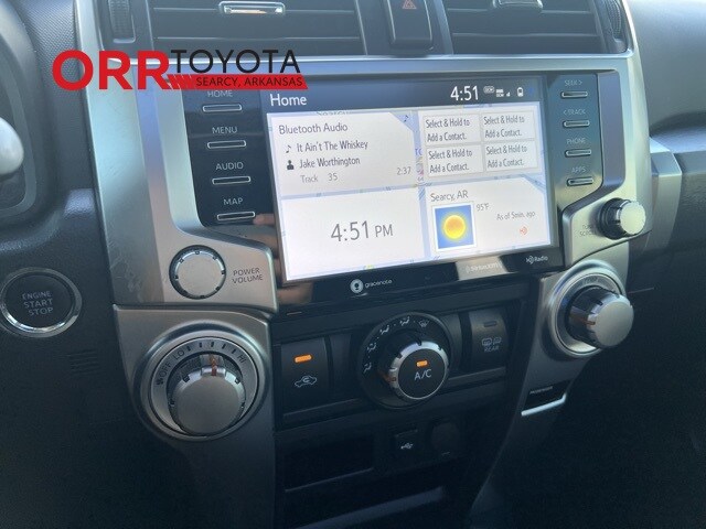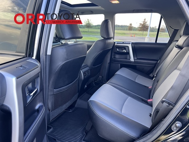 Midnight Black Metallic 2022 Toyota 4Runner SR5 Premium RWD 5-Speed with ECT 4.0L V6 DOHC 24V This 4Runner SR5 Premium is nicely equipped with Moonroof Package (Moonroof w/Tilt Up & Slide), SR5 Premium Plus Package w/SofTex (Blind Spot Monitor (BSM), Garage Door Opener, Outside Rear View Mirror, and Panoramic Back Monitor), TRD Black Wheel Package (PPO) (TMS), Black/Graphite w/SofTex Seat Trim, 17" 6-Spoke Alloy Wheels, 3.727 Axle Ratio, 4-Wheel Disc Brakes, 8 Speakers, ABS brakes, Air Conditioning, Alloy wheels, AM/FM radio: SiriusXM, Anti-whiplash front head restraints, Apple CarPlay/Android Auto, Auto High-beam Headlights, Auto-dimming Rear-View mirror, Brake assist, Bumpers: body-color, Compass, Driver door bin, Driver vanity mirror, Dual front impact airbags, Dual front side impact airbags, Electronic Stability Control, Emergency communication system: Safety Connect with 1-year trial, Exterior Parking Camera Rear, Front anti-roll bar, Front Bucket Seats, Front Center Armrest, Front fog lights, Front reading lights, Front wheel independent suspension, Garage door transmitter: HomeLink, Heated door mirrors, Heated Front Bucket Seats, Heated front seats, Illuminated entry, Knee airbag, Leather Shift Knob, Leather steering wheel, Low tire pressure warning, Navigation System, Occupant sensing airbag, Outside temperature display, Overhead airbag, Overhead console, Panic alarm, Passenger door bin, Passenger vanity mirror, Power door mirrors, Power driver seat, Power passenger seat, Power steering, Power windows, Radio: Premium Audio w/Dynamic Navigation, Rear anti-roll bar, Rear seat center armrest, Rear window defroster, Rear window wiper, Remote keyless entry, Roof rack: rails only, Security system, SofTex Seat Trim, Speed control, Speed-sensing steering, Split folding rear seat, Spoiler, Steering wheel mounted audio controls, Tachometer, Telescoping steering wheel, Tilt steering wheel, Traction control, Trip computer, Turn signal indicator mirrors, and Variably intermittent wipers. One owner Carfax, Carfax no accidents, Back up camera, Bluetooth, Keyless entry, Black/Graphite w/SofTex Seat Trim, Blind Spot Monitor (BSM), Garage Door Opener, Moonroof Package, Moonroof w/Tilt Up & Slide, Outside Rear View Mirror, Panoramic Back Monitor, SR5 Premium Plus Package w/SofTex, TRD Black Wheel Package (PPO) (TMS).