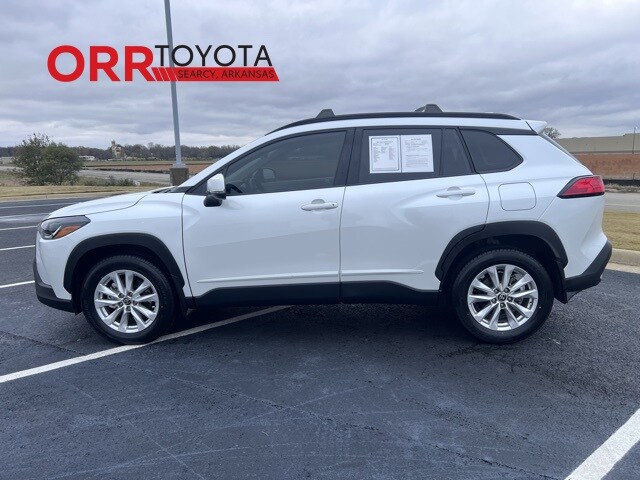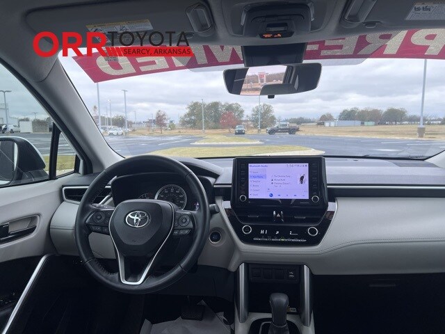 Wind Chill Pearl 2022 Toyota Corolla Cross LE FWD CVT 2.0L I4 PDI DOHC 16V LEV3-SULEV30 169hp This Corolla Cross LE is nicely equipped with 17" Alloy Wheels, 4-Wheel Disc Brakes, 4.014 Axle Ratio, 6 Speakers, ABS brakes, Air Conditioning, Alloy wheels, AM/FM radio: SiriusXM, Apple CarPlay/Android Auto, Auto High-beam Headlights, Automatic temperature control, Brake assist, Bumpers: body-color, Delay-off headlights, Driver door bin, Driver vanity mirror, Dual front impact airbags, Dual front side impact airbags, Electronic Stability Control, Emergency communication system: Safety Connect with 1-year trial, Exterior Parking Camera Rear, Fabric Seat Trim, Front anti-roll bar, Front Bucket Seats, Front Center Armrest, Front reading lights, Front wheel independent suspension, Fully automatic headlights, Heated door mirrors, Illuminated entry, Knee airbag, Leather steering wheel, Low tire pressure warning, Occupant sensing airbag, Outside temperature display, Overhead airbag, Panic alarm, Passenger door bin, Passenger vanity mirror, Power door mirrors, Power steering, Power windows, Radio data system, Radio: 6 Speaker Audio, Rear anti-roll bar, Rear side impact airbag, Rear window defroster, Rear window wiper, Remote keyless entry, Roof rack: rails only, Security system, Speed control, Split folding rear seat, Spoiler, Steering wheel mounted audio controls, Tachometer, Telescoping steering wheel, Tilt steering wheel, Traction control, Trip computer, Turn signal indicator mirrors, and Variably intermittent wipers. One owner Carfax, Carfax no accidents, Back up camera, Bluetooth, Keyless entry.