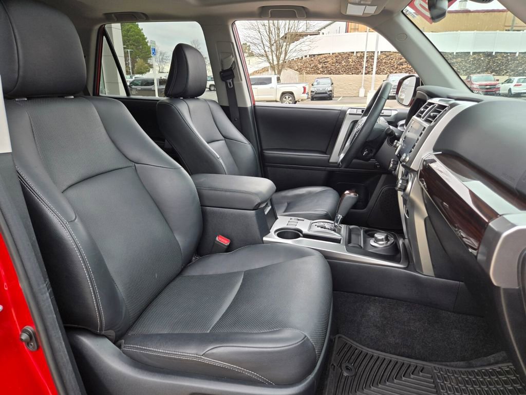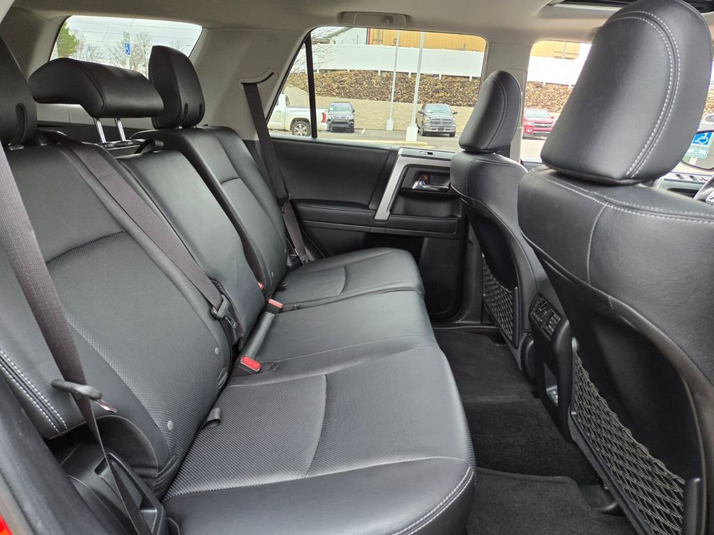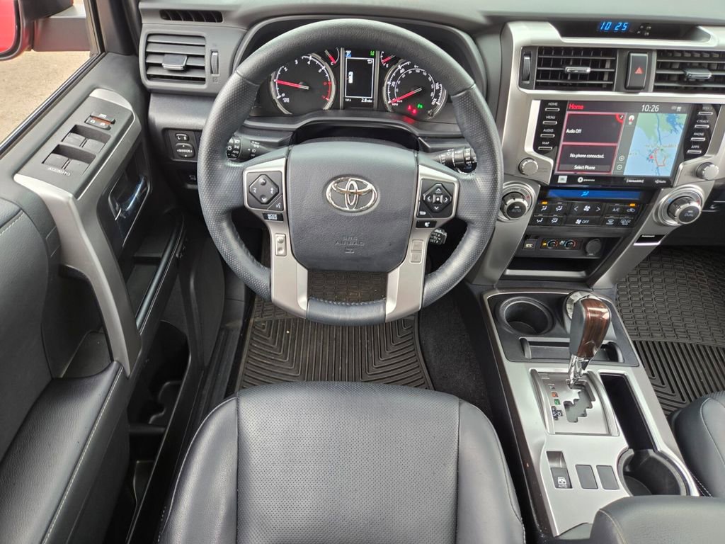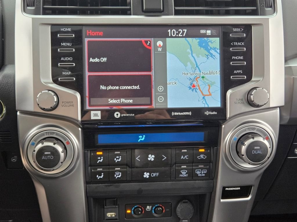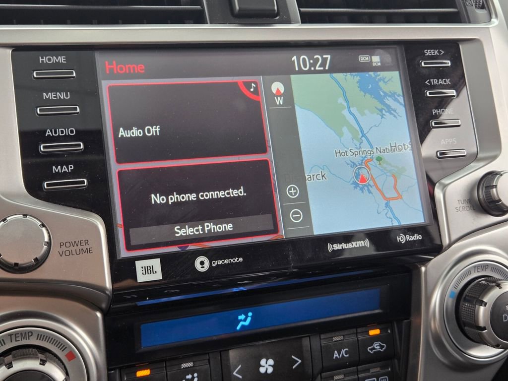 This 2023 Toyota 4Runner comes equipped with, 4WD, Black/Graphite Leather, 15 Speakers, 3.727 Axle Ratio, 4-Wheel Disc Brakes, ABS brakes, Air Conditioning, Alloy wheels, AM/FM radio: SiriusXM, Anti-whiplash front head restraints, Apple CarPlay/Android Auto, Auto High-beam Headlights, Auto-dimming Rear-View mirror, Automatic temperature control, Brake assist, Bumpers: body-color, Compass, Delay-off headlights, Driver door bin, Driver vanity mirror, Dual front impact airbags, Dual front side impact airbags, Dual Zone Auto Climate Control, Electronic Stability Control, Emergency communication system: Safety Connect (1-year trial), Front anti-roll bar, Front Bucket Seats, Front Center Armrest, Front dual zone A/C, Front fog lights, Front reading lights, Front wheel independent suspension, Fully automatic headlights, Garage Door Opener, Garage door transmitter: HomeLink, Heated & Ventilated Front Bucket Seats, Heated door mirrors, Heated front seats, Heated Outside Rear-View Mirrors, Illuminated entry, Knee airbag, Leather Seat Trim, Low tire pressure warning, Memory seat, Moonroof w/Tilt Up & Slide, Navigation System, Occupant sensing airbag, Outside temperature display, Overhead airbag, Overhead console, Panic alarm, Panoramic Back Monitor, Passenger door bin, Passenger vanity mirror, Power door mirrors, Power driver seat, Power moonroof, Power passenger seat, Power steering, Power windows, Radio: Premium Audio w/JBL, Rear anti-roll bar, Rear seat center armrest, Rear window defroster, Rear window wiper, Remote keyless entry, Security system, Silver Roof Rails, Speed control, Speed-sensing steering, Split folding rear seat, Spoiler, Steering wheel mounted audio controls, Tachometer, Telescoping steering wheel, Tilt steering wheel, Traction control, Trip computer, Turn signal indicator mirrors, Variably intermittent wipers, Ventilated front seats, Wheels: 20" Unique Dual 6-Spoke Alloy, 4WD, Black/Graphite Leather. Odometer is 12850 miles below market average!
