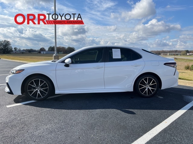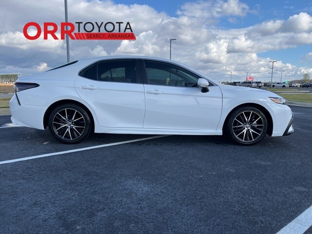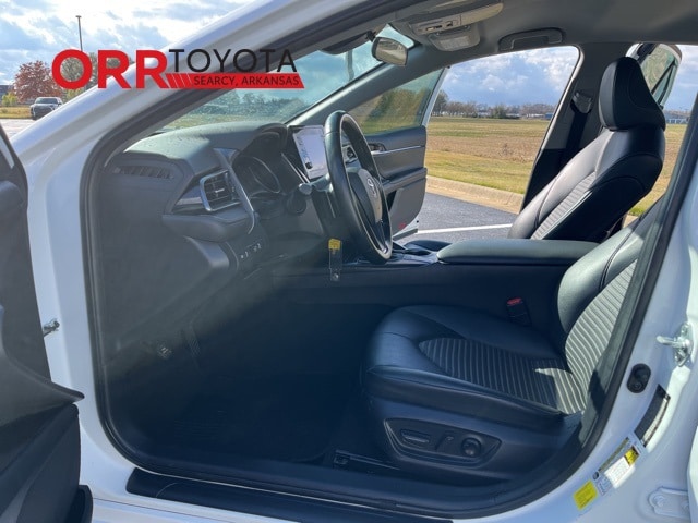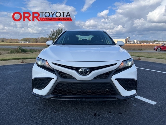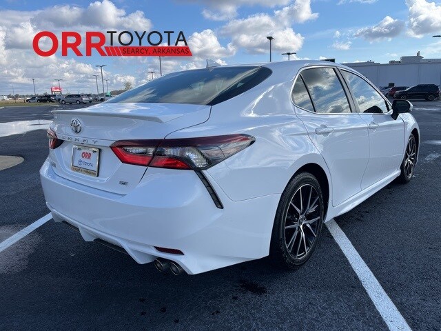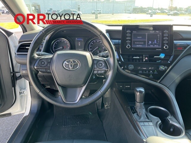 Ice Cap 2023 Toyota Camry SE FWD 8-Speed Automatic 2.5L I4 DOHC 16V This Camry SE is nicely equipped with Black w/Silver Performance w/Sport SofTex Seat Trim w/Fabric Inserts, ABS brakes, Active Cruise Control, Alloy wheels, Electronic Stability Control, Front dual zone A/C, Heated door mirrors, Illuminated entry, Low tire pressure warning, Remote keyless entry, Traction control, 4-Wheel Disc Brakes, 6 Speakers, 8.0J x 18" Alloy Wheels, Air Conditioning, AM/FM radio: SiriusXM, Apple CarPlay/Android Auto, Auto High-beam Headlights, Automatic temperature control, Brake assist, Bumpers: body-color, Delay-off headlights, Driver door bin, Driver vanity mirror, Dual front impact airbags, Dual front side impact airbags, Emergency communication system: Safety Connect (1-year trial), Exterior Parking Camera Rear, Four wheel independent suspension, Front anti-roll bar, Front Bucket Seats, Front Center Armrest, Front reading lights, Fully automatic headlights, Knee airbag, Leather steering wheel, Occupant sensing airbag, Outside temperature display, Overhead airbag, Overhead console, Panic alarm, Passenger door bin, Passenger vanity mirror, Power door mirrors, Power driver seat, Power steering, Power windows, Radio data system, Radio: Audio, Rear anti-roll bar, Rear seat center armrest, Rear side impact airbag, Rear window defroster, Security system, Speed control, Speed-sensing steering, Split folding rear seat, Spoiler, Sport SofTex Seat Trim w/Fabric Inserts, Steering wheel mounted audio controls, Tachometer, Telescoping steering wheel, Tilt steering wheel, Trip computer, Turn signal indicator mirrors, and Variably intermittent wipers. Carfax no accidents, Back up camera, Bluetooth, Keyless entry, Black w/Silver Performance w/Sport SofTex Seat Trim w/Fabric Inserts, ABS brakes, Active Cruise Control, Alloy wheels, Electronic Stability Control, Front dual zone A/C, Heated door mirrors, Illuminated entry, Low tire pressure warning, Remote keyless entry, Traction control.
