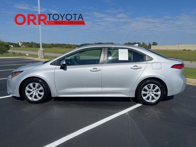 Classic Silver Metallic 2023 Toyota Corolla LE FWD CVT 2.0L I4 DOHC 16V This Corolla LE is nicely equipped with 4-Wheel Disc Brakes, 6 Speakers, ABS brakes, Air Conditioning, AM/FM radio: SiriusXM, Auto High-beam Headlights, Automatic temperature control, Brake assist, Bumpers: body-color, Delay-off headlights, Driver door bin, Driver vanity mirror, Dual front impact airbags, Dual front side impact airbags, Electronic Stability Control, Emergency communication system: Safety Connect (up to 10-year trial subscription), Exterior Parking Camera Rear, Front anti-roll bar, Front Bucket Seats, Front Center Armrest, Front reading lights, Front wheel independent suspension, Fully automatic headlights, Illuminated entry, Knee airbag, Low tire pressure warning, Occupant sensing airbag, Outside temperature display, Overhead airbag, Panic alarm, Passenger door bin, Passenger vanity mirror, Power door mirrors, Power steering, Power windows, Premium Fabric Seat Trim, Radio data system, Radio: 8" Toyota Audio Multimedia, Rear anti-roll bar, Rear seat center armrest, Rear side impact airbag, Rear window defroster, Remote keyless entry, Speed control, Split folding rear seat, Steering wheel mounted audio controls, Tachometer, Telescoping steering wheel, Tilt steering wheel, Traction control, Trip computer, Variably intermittent wipers, and Wheels: 16" Wide Vent Steel. One owner Carfax, Carfax no accidents, Back up camera, Bluetooth, Keyless entry.