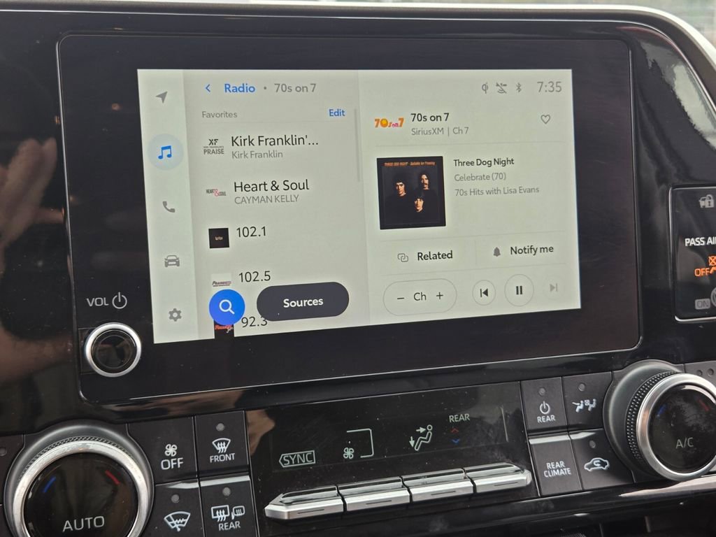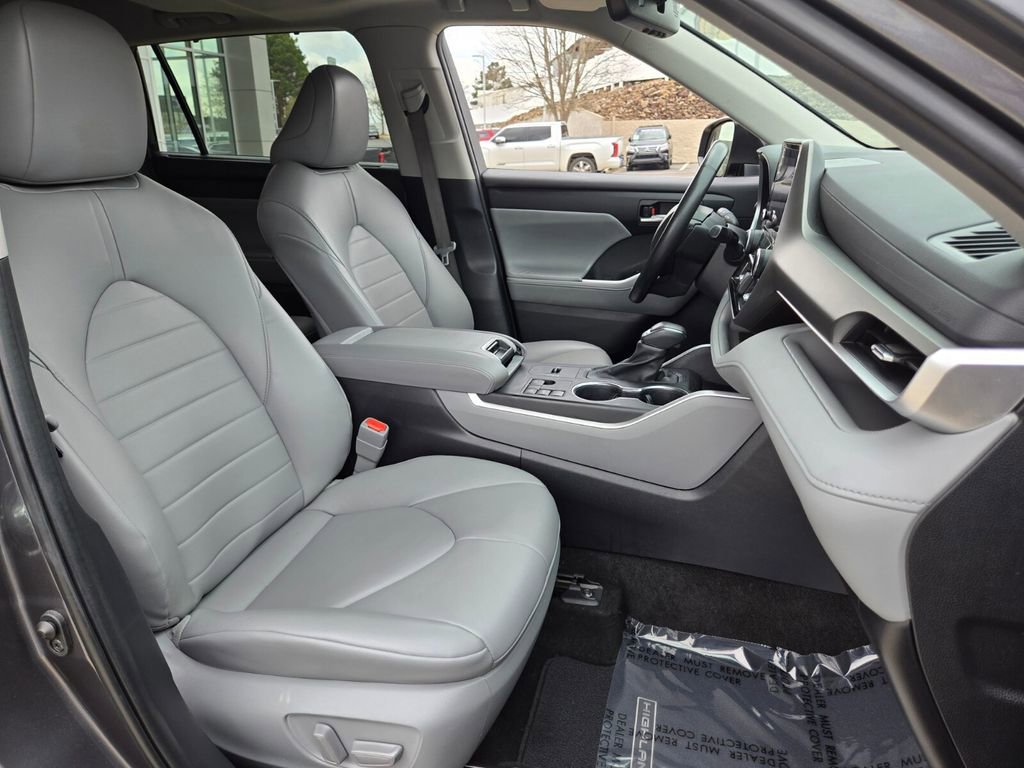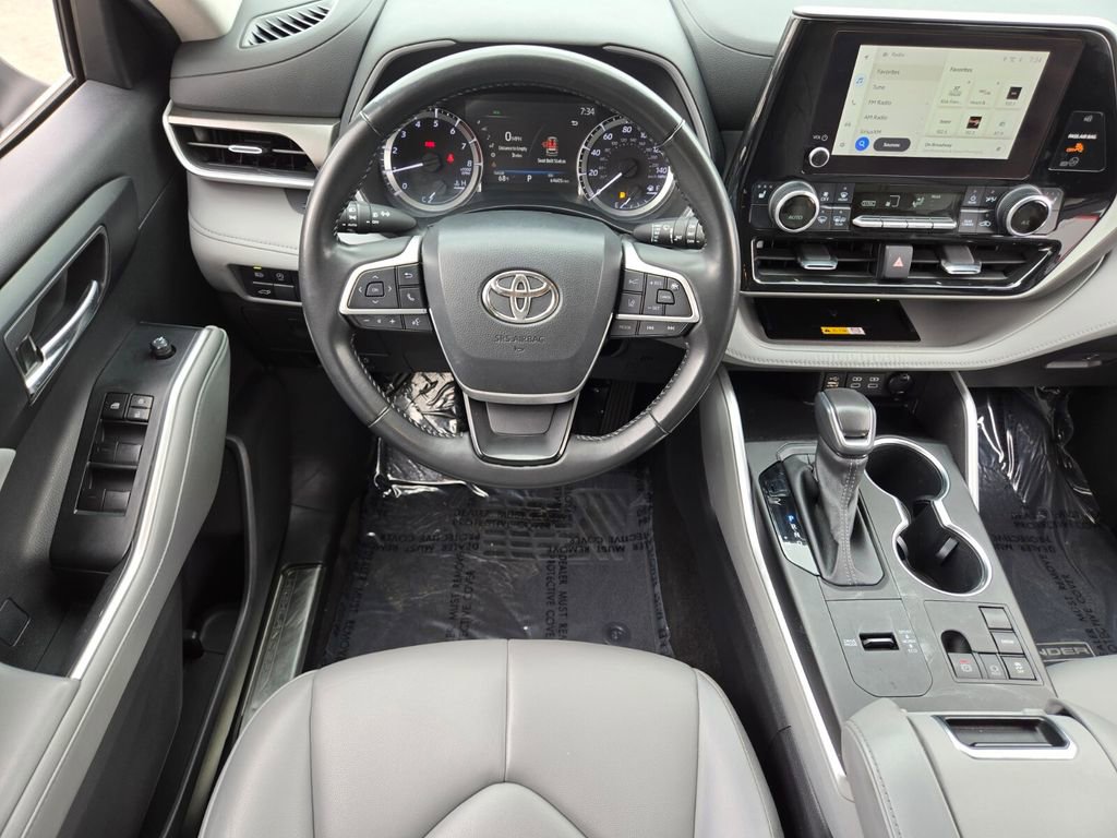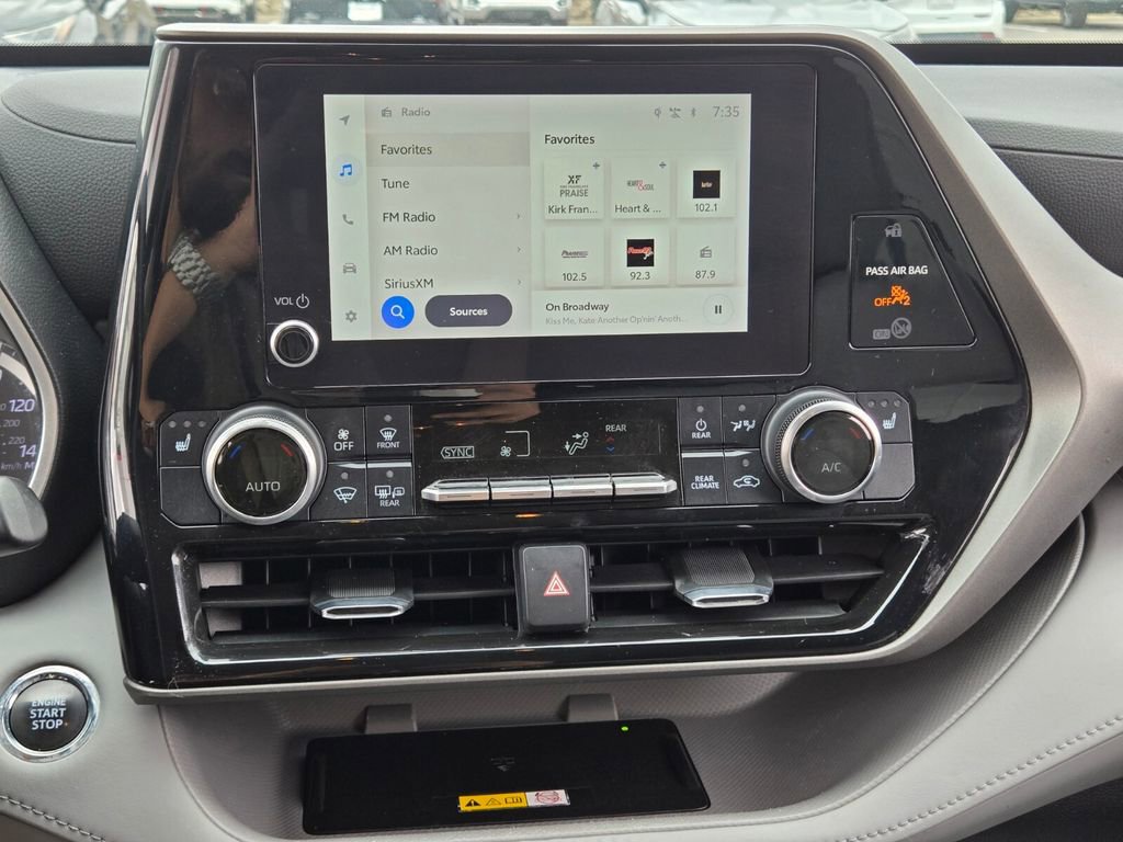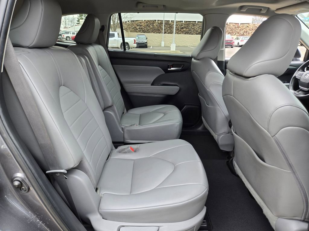 This 2023 Toyota Highlander comes equipped with, 3.329 Axle Ratio, 3rd row seats: split-bench, 4-Wheel Disc Brakes, 6 Speakers, ABS brakes, Air Conditioning, Alloy wheels, AM/FM radio: SiriusXM, Apple CarPlay/Android Auto, Auto High-beam Headlights, Auto-dimming Rear-View mirror, Automatic temperature control, Brake assist, Bumpers: body-color, Delay-off headlights, Driver door bin, Driver vanity mirror, Dual front impact airbags, Dual front side impact airbags, Electronic Stability Control, Emergency communication system: Safety Connect (up to 10-year trial subscription), Exterior Parking Camera Rear, Four wheel independent suspension, Front anti-roll bar, Front Bucket Seats, Front Center Armrest, Front dual zone A/C, Front fog lights, Front reading lights, Fully automatic headlights, Garage door transmitter: HomeLink, Heated door mirrors, Heated Front Bucket Seats, Heated front seats, Illuminated entry, Knee airbag, Leather Shift Knob, Leather steering wheel, Low tire pressure warning, Occupant sensing airbag, Outside temperature display, Overhead airbag, Overhead console, Panic alarm, Passenger door bin, Passenger vanity mirror, Power door mirrors, Power driver seat, Power Liftgate, Power moonroof, Power passenger seat, Power steering, Power windows, Radio: 8" Toyota Audio Multimedia, Rear air conditioning, Rear anti-roll bar, Rear reading lights, Rear window defroster, Rear window wiper, Reclining 3rd row seat, Remote keyless entry, Roof rack: rails only, Security system, SofTex Seat Trim, Speed control, Speed-sensing steering, Split folding rear seat, Spoiler, Steering wheel mounted audio controls, Tachometer, Telescoping steering wheel, Tilt steering wheel, Traction control, Trip computer, Turn signal indicator mirrors, Variably intermittent wipers, Wheels: 18" Machined-Finish Alloy.