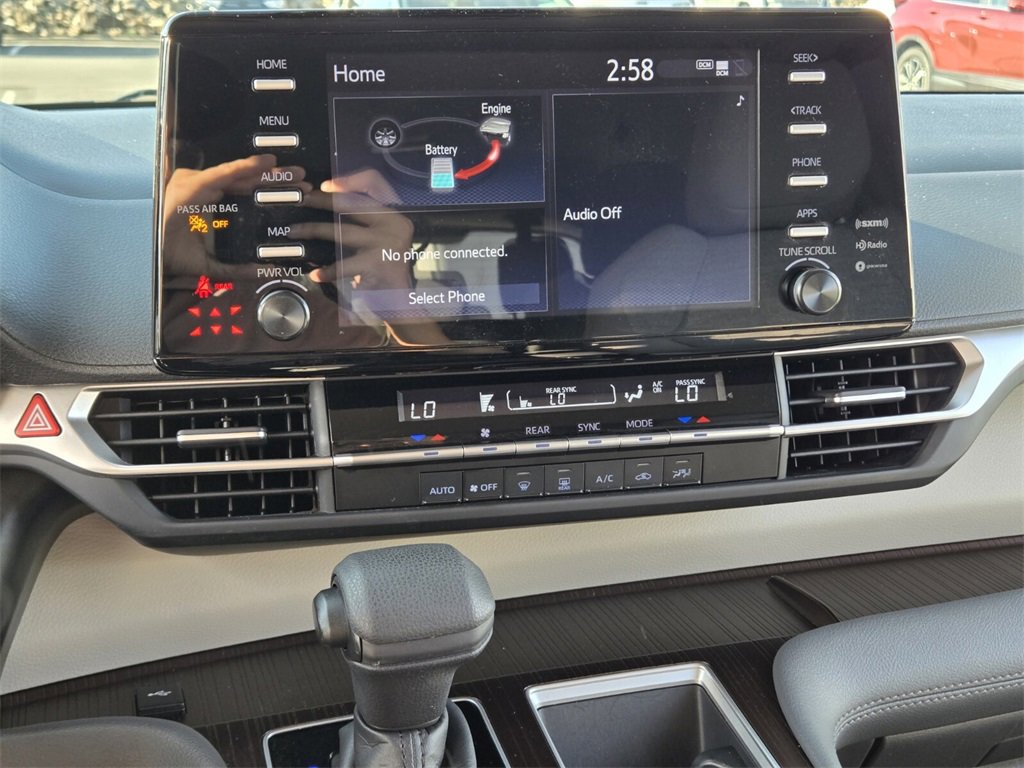 Recent Arrival! This 2023 Toyota Sienna comes equipped with, 17" Alloy Wheels, 3rd row seats: split-bench, 4-Wheel Disc Brakes, 6 Speakers, ABS brakes, Air Conditioning, Alloy wheels, AM/FM radio: SiriusXM, Apple CarPlay/Android Auto, Auto High-beam Headlights, Auto-dimming door mirrors, Automatic temperature control, Axle Ratio: TBA, Brake assist, Bumpers: body-color, Compass, Delay-off headlights, Driver door bin, Driver vanity mirror, Driver's Seat Mounted Armrest, Dual front impact airbags, Dual front side impact airbags, Electronic Stability Control, Emergency communication system: Safety Connect (1-year trial), Exterior Parking Camera Rear, Fabric Seat Material, Four wheel independent suspension, Front anti-roll bar, Front Bucket Seats, Front dual zone A/C, Front reading lights, Fully automatic headlights, Heated door mirrors, Illuminated entry, Knee airbag, Lane Departure Warning System, Low tire pressure warning, Occupant sensing airbag, Outside temperature display, Overhead airbag, Overhead console, Panic alarm, Passenger door bin, Passenger seat mounted armrest, Passenger vanity mirror, Power door mirrors, Power driver seat, Power steering, Power windows, Radio data system, Radio: Audio System, Rear air conditioning, Rear anti-roll bar, Rear reading lights, Rear seat center armrest, Rear side impact airbag, Rear window defroster, Rear window wiper, Reclining 3rd row seat, Remote keyless entry, Speed control, Speed-sensing steering, Split folding rear seat, Spoiler, Steering wheel mounted audio controls, Tachometer, Telescoping steering wheel, Tilt steering wheel, Traction control, Trip computer, Turn signal indicator mirrors, Variably intermittent wipers.