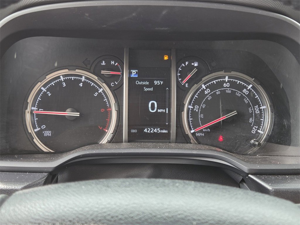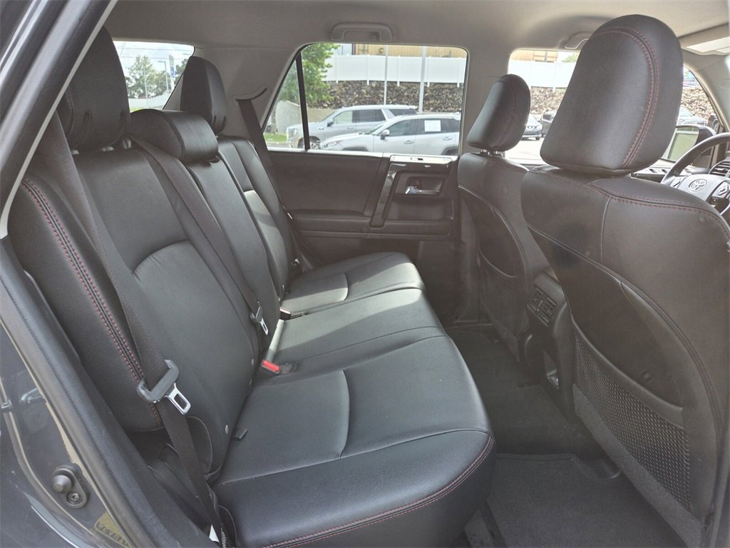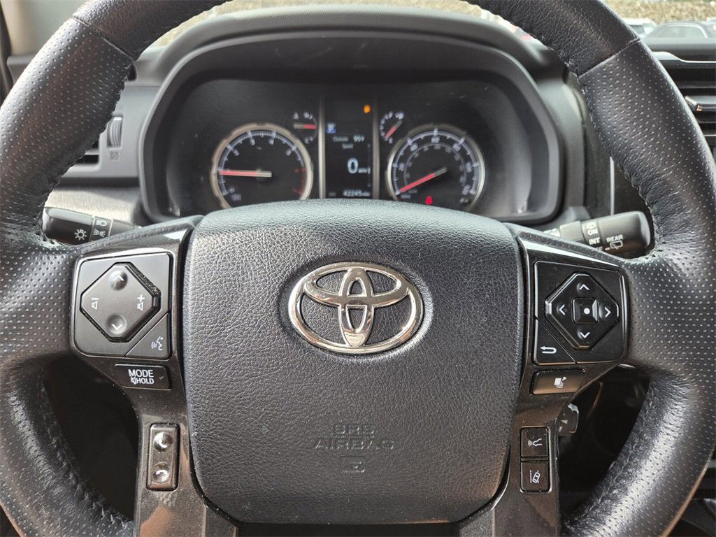 This 2024 Toyota 4Runner comes equipped with, 4WD, Graphite Artificial Leather, 3.727 Axle Ratio, 4-Wheel Disc Brakes, 8 Speakers, ABS brakes, Air Conditioning, Alloy wheels, AM/FM radio: SiriusXM, Anti-whiplash front head restraints, Apple CarPlay/Android Auto, Auto High-beam Headlights, Auto-dimming Rear-View mirror, Black Roof Rails, Brake assist, Bumpers: body-color, Compass, Driver door bin, Driver vanity mirror, Dual front impact airbags, Dual front side impact airbags, Electronic Stability Control, Emergency communication system: Safety Connect (1-year trial), Exterior Parking Camera Rear, Front anti-roll bar, Front Bucket Seats, Front Center Armrest, Front fog lights, Front reading lights, Front wheel independent suspension, Garage Door Opener, Garage door transmitter: HomeLink, Heated door mirrors, Heated Front Bucket Seats, Heated front seats, Heated Outside Rear-View Mirrors, Heated steering wheel, Illuminated entry, Knee airbag, Leather Shift Knob, Low tire pressure warning, Navigation System, Occupant sensing airbag, Off Road Package, Off Road Premium Package, Outside temperature display, Overhead airbag, Overhead console, Panic alarm, Passenger door bin, Passenger vanity mirror, Power door mirrors, Power driver seat, Power passenger seat, Power steering, Power windows, Radio: Premium Audio, Rear anti-roll bar, Rear seat center armrest, Rear window defroster, Rear window wiper, Remote keyless entry, Rigid Running Boards, Security system, SofTex Seat Trim, Speed control, Speed-sensing steering, Split folding rear seat, Spoiler, Steering wheel mounted audio controls, Tachometer, Telescoping steering wheel, Tilt steering wheel, Traction control, Trip computer, Turn signal indicator mirrors, Variably intermittent wipers, Wheels: 17" Unique 7-Spoke Off-Road Alloy, 4WD, Graphite Artificial Leather.