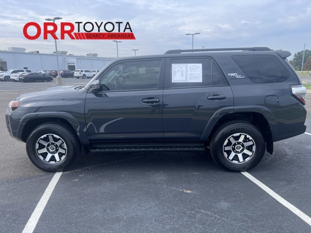Underground 2024 Toyota 4Runner TRD Off-Road 4WD 5-Speed with ECT 4.0L V6 DOHC 24V This 4Runner TRD Off-Road is nicely equipped with Off Road Package (Black Roof Rails), 4WD, Black/Graphite w/Fabric Seat Trim, All Weather Floor Liners (TMS), Running Boards (TMS), 3.727 Axle Ratio, 4-Wheel Disc Brakes, 8 Speakers, ABS brakes, Air Conditioning, Alloy wheels, AM/FM radio: SiriusXM, Anti-whiplash front head restraints, Apple CarPlay/Android Auto, Auto High-beam Headlights, Brake assist, Bumpers: body-color, Compass, Driver door bin, Driver vanity mirror, Dual front impact airbags, Dual front side impact airbags, Electronic Stability Control, Emergency communication system: Safety Connect (1-year trial), Exterior Parking Camera Rear, Fabric Seat Trim, Front anti-roll bar, Front Bucket Seats, Front Center Armrest, Front fog lights, Front reading lights, Front wheel independent suspension, Heated door mirrors, Illuminated entry, Knee airbag, Leather Shift Knob, Low tire pressure warning, Occupant sensing airbag, Outside temperature display, Overhead airbag, Overhead console, Panic alarm, Passenger door bin, Passenger vanity mirror, Power door mirrors, Power driver seat, Power steering, Power windows, Radio: Audio Plus, Rear anti-roll bar, Rear seat center armrest, Rear window defroster, Rear window wiper, Remote keyless entry, Security system, Speed control, Speed-sensing steering, Split folding rear seat, Spoiler, Steering wheel mounted audio controls, Tachometer, Telescoping steering wheel, Tilt steering wheel, Traction control, Trip computer, Variably intermittent wipers, and Wheels: 17" Unique 7-Spoke Off-Road Alloy. One owner Carfax, Carfax no accidents, Back up camera, Bluetooth, Keyless entry, 4WD, Black/Graphite w/Fabric Seat Trim, All Weather Floor Liners (TMS), Black Roof Rails, Off Road Package, Running Boards (TMS).