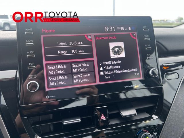 Ice Edge 2024 Toyota Camry XSE FWD 8-Speed Automatic 2.5L I4 DOHC 16V This Camry XSE is nicely equipped with Black w/Sport SofTex Seat Trim w/Fabric Inserts, 4-Wheel Disc Brakes, 6 Speakers, ABS brakes, Air Conditioning, Alloy wheels, AM/FM radio: SiriusXM, Apple CarPlay/Android Auto, Auto High-beam Headlights, Auto-dimming Rear-View mirror, Automatic temperature control, Brake assist, Bumpers: body-color, Delay-off headlights, Driver door bin, Driver vanity mirror, Dual front impact airbags, Dual front side impact airbags, Electronic Stability Control, Emergency communication system: Safety Connect (1-year trial), Exterior Parking Camera Rear, Four wheel independent suspension, Front anti-roll bar, Front Bucket Seats, Front Center Armrest, Front dual zone A/C, Front reading lights, Fully automatic headlights, Garage door transmitter: HomeLink, Heated door mirrors, Heated front seats, Illuminated entry, Knee airbag, Leather steering wheel, Low tire pressure warning, Multi-Stage Heated Front Bucket Seats, Occupant sensing airbag, Outside temperature display, Overhead airbag, Overhead console, Panic alarm, Passenger door bin, Passenger vanity mirror, Perforated Leather Seat Trim, Power door mirrors, Power driver seat, Power passenger seat, Power steering, Power windows, Radio data system, Radio: Audio Plus, Rear anti-roll bar, Rear reading lights, Rear seat center armrest, Rear side impact airbag, Rear window defroster, Remote keyless entry, Security system, Speed control, Speed-sensing steering, Split folding rear seat, Spoiler, Steering wheel mounted audio controls, Tachometer, Telescoping steering wheel, Tilt steering wheel, Traction control, Trip computer, Turn signal indicator mirrors, Variably intermittent wipers, and Wheels: 19" x 8J Alloy. Back up camera, Bluetooth, Keyless entry, Black w/Sport SofTex Seat Trim w/Fabric Inserts.