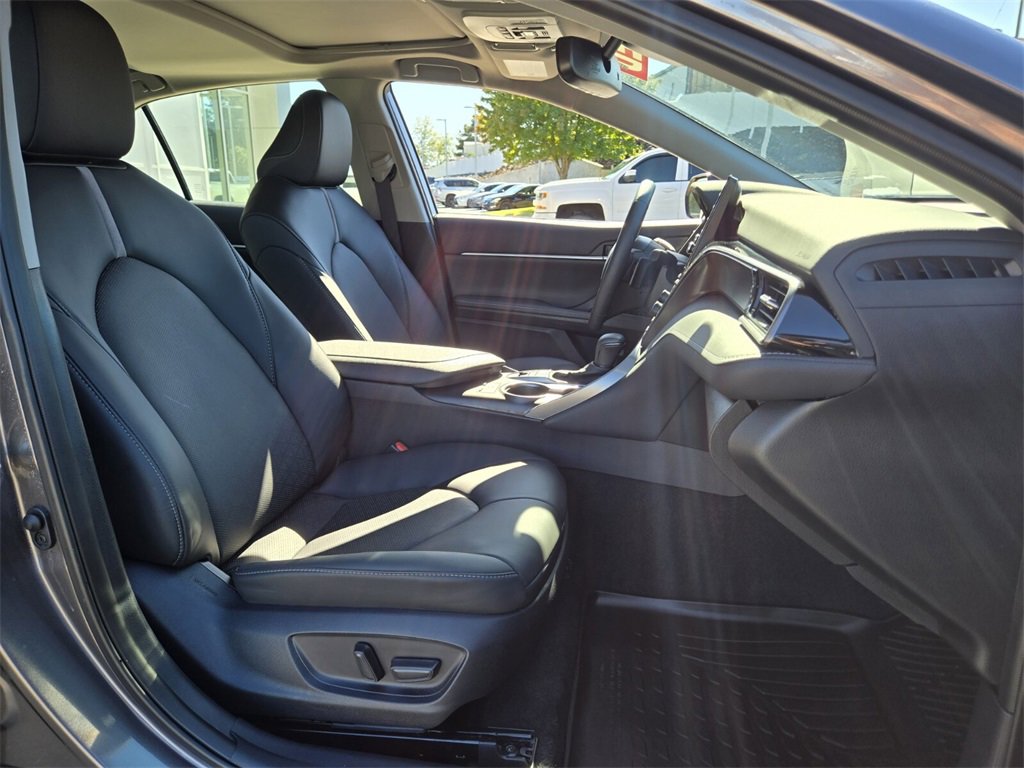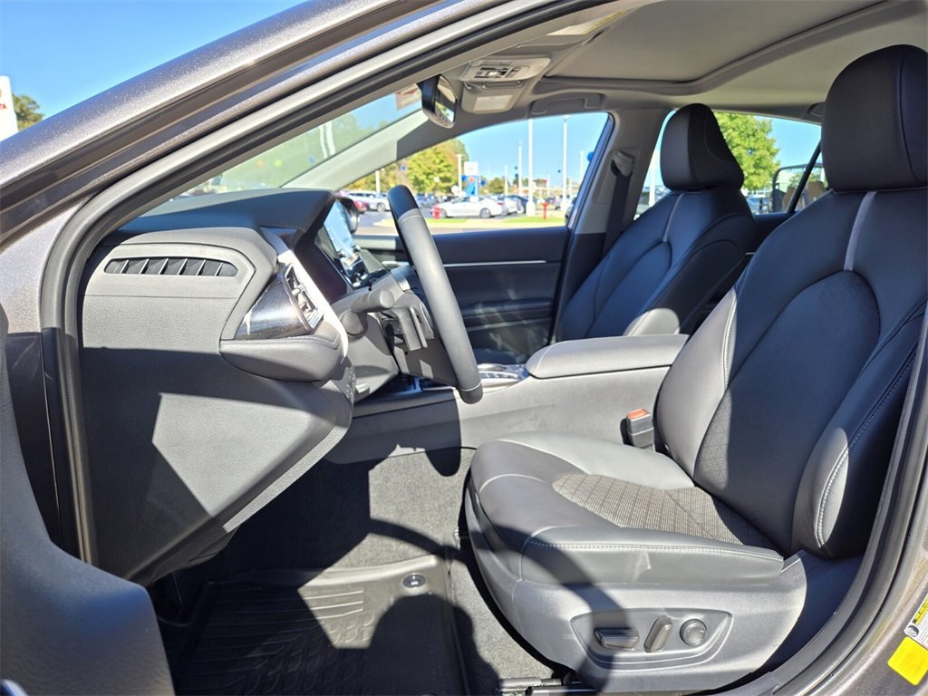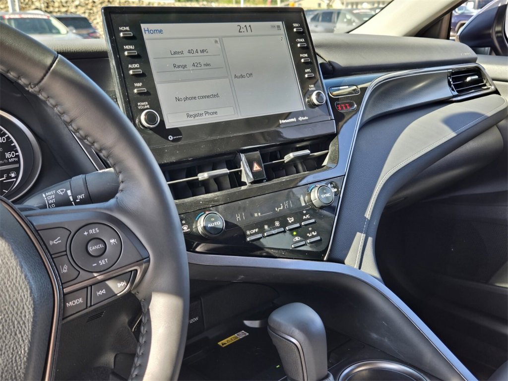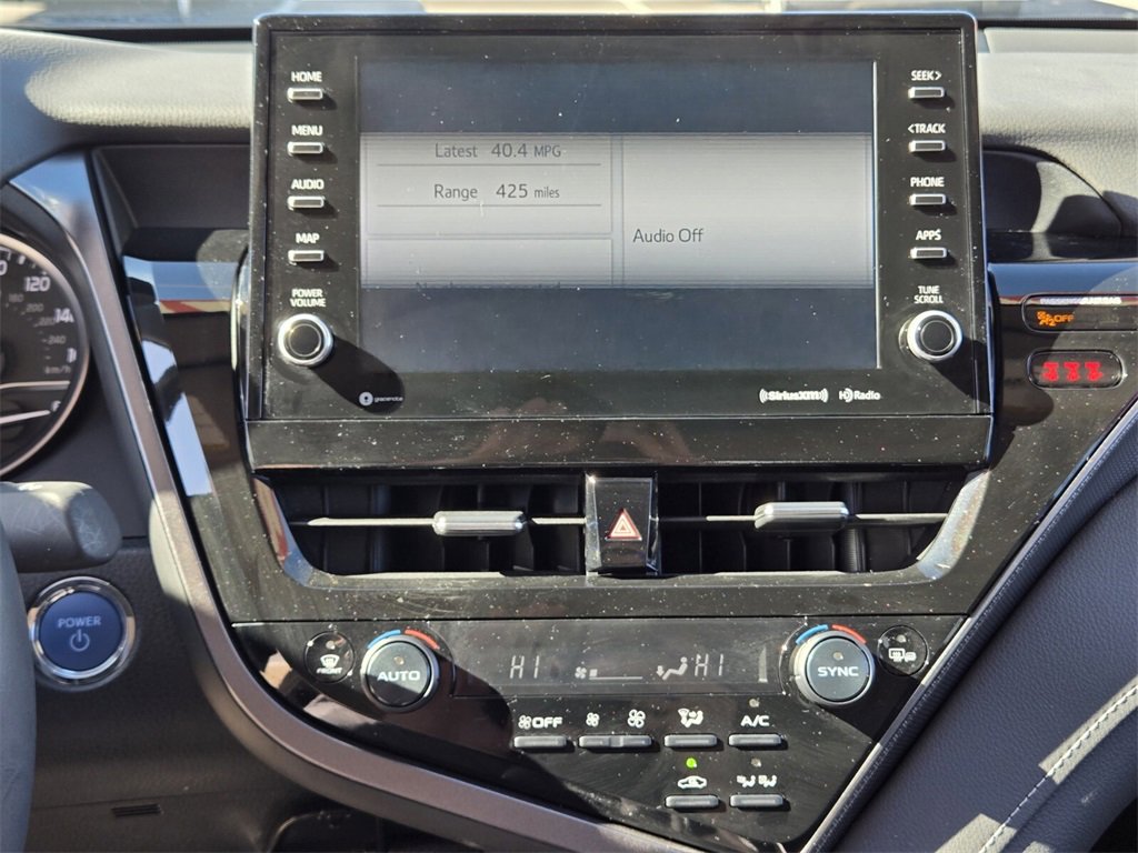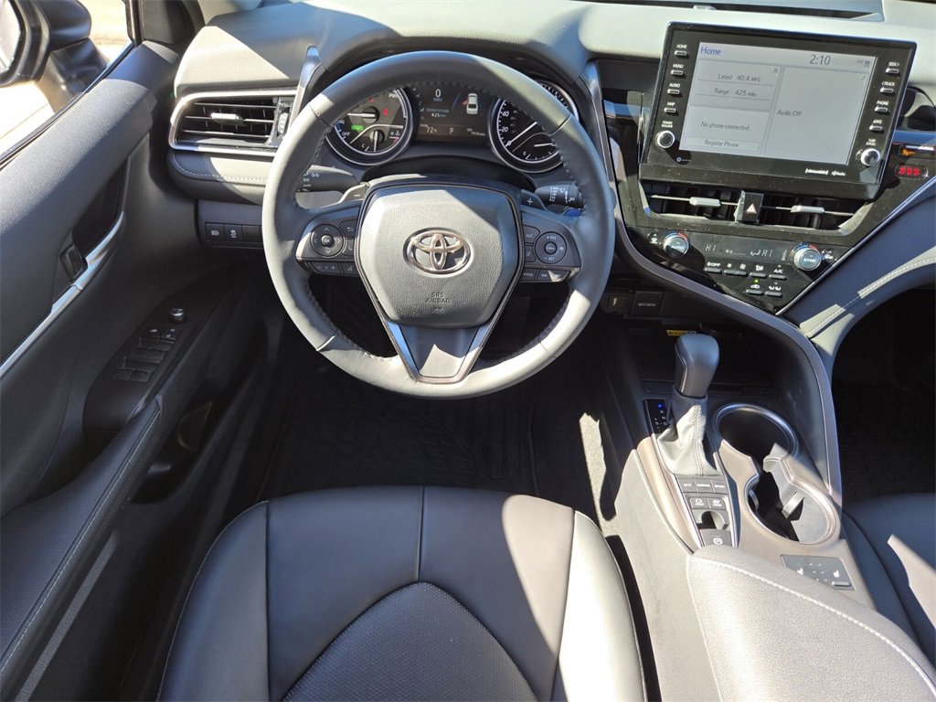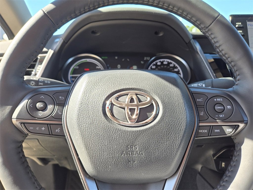 Recent Arrival! This 2024 Toyota Camry Hybrid comes equipped with, 2.5L I4 DOHC 16V, 4-Wheel Disc Brakes, 6 Speakers, ABS brakes, Air Conditioning, Alloy wheels, AM/FM radio: SiriusXM, Apple CarPlay/Android Auto, Auto High-beam Headlights, Auto-dimming Rear-View mirror, Automatic temperature control, Brake assist, Bumpers: body-color, Cold Weather Package, Delay-off headlights, Driver door bin, Driver vanity mirror, Dual front impact airbags, Dual front side impact airbags, Electronic Stability Control, Emergency communication system: Safety Connect (1-year trial), Exterior Parking Camera Rear, Four wheel independent suspension, Front anti-roll bar, Front Bucket Seats, Front Center Armrest, Front dual zone A/C, Front reading lights, Fully automatic headlights, Garage door transmitter: HomeLink, Heated door mirrors, Heated front seats, Heated Steering Wheel, Illuminated entry, Knee airbag, Leather steering wheel, Low tire pressure warning, Multi-Stage Heated Front Bucket Seats, Occupant sensing airbag, Outside temperature display, Overhead airbag, Overhead console, Panic alarm, Passenger door bin, Passenger vanity mirror, Perforated Leather Seat Trim, Power door mirrors, Power driver seat, Power passenger seat, Power steering, Power Tilt/Slide Moonroof, Power windows, Radio data system, Radio: Audio Plus, Rear anti-roll bar, Rear reading lights, Rear seat center armrest, Rear side impact airbag, Rear window defroster, Remote keyless entry, Security system, Speed control, Speed-sensing steering, Split folding rear seat, Spoiler, Steering wheel mounted audio controls, Telescoping steering wheel, Tilt steering wheel, Traction control, Trip computer, Turn signal indicator mirrors, Variably intermittent wipers, Wheels: 19" x 8J Alloy, 2.5L I4 DOHC 16V. Odometer is 28285 miles below market average!