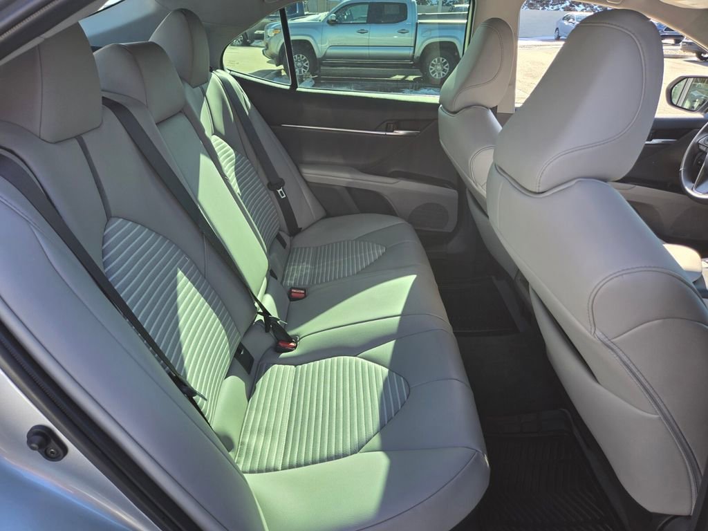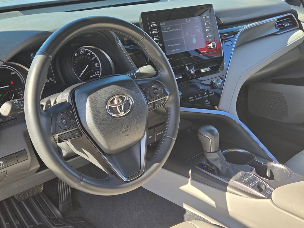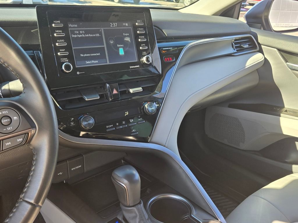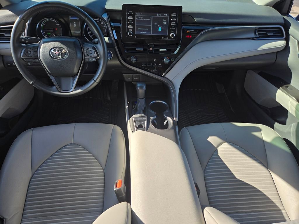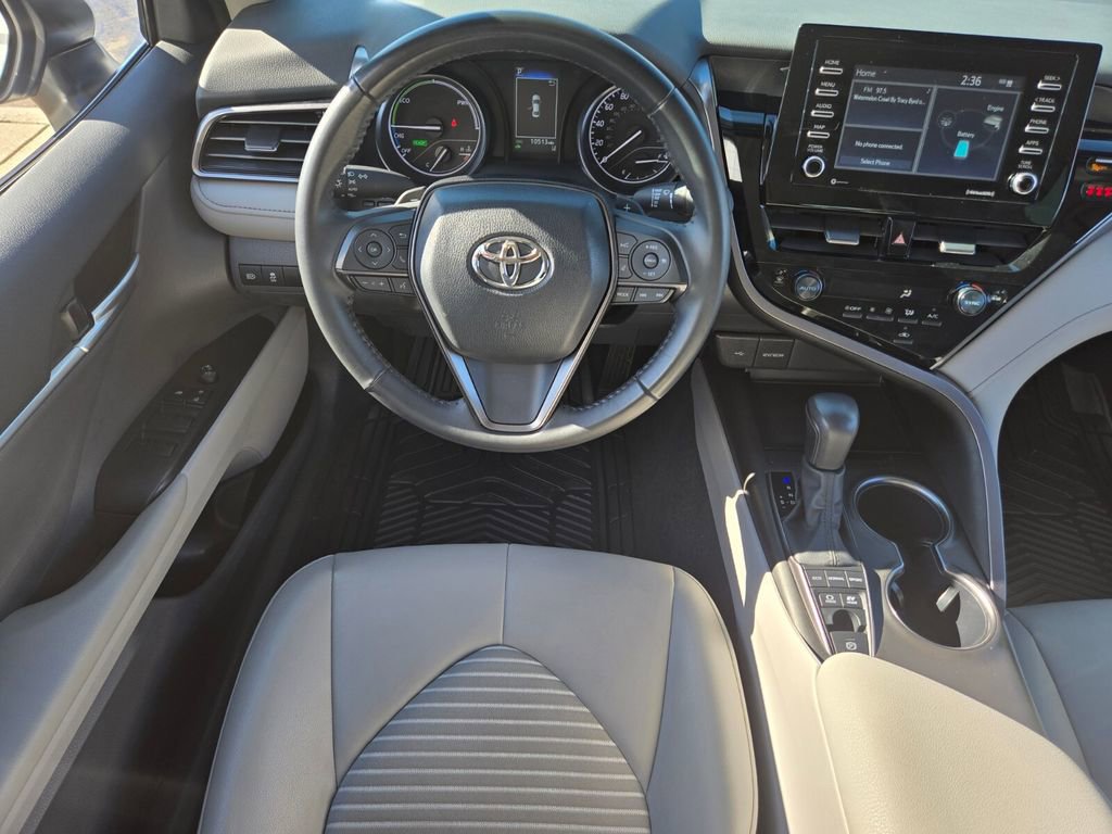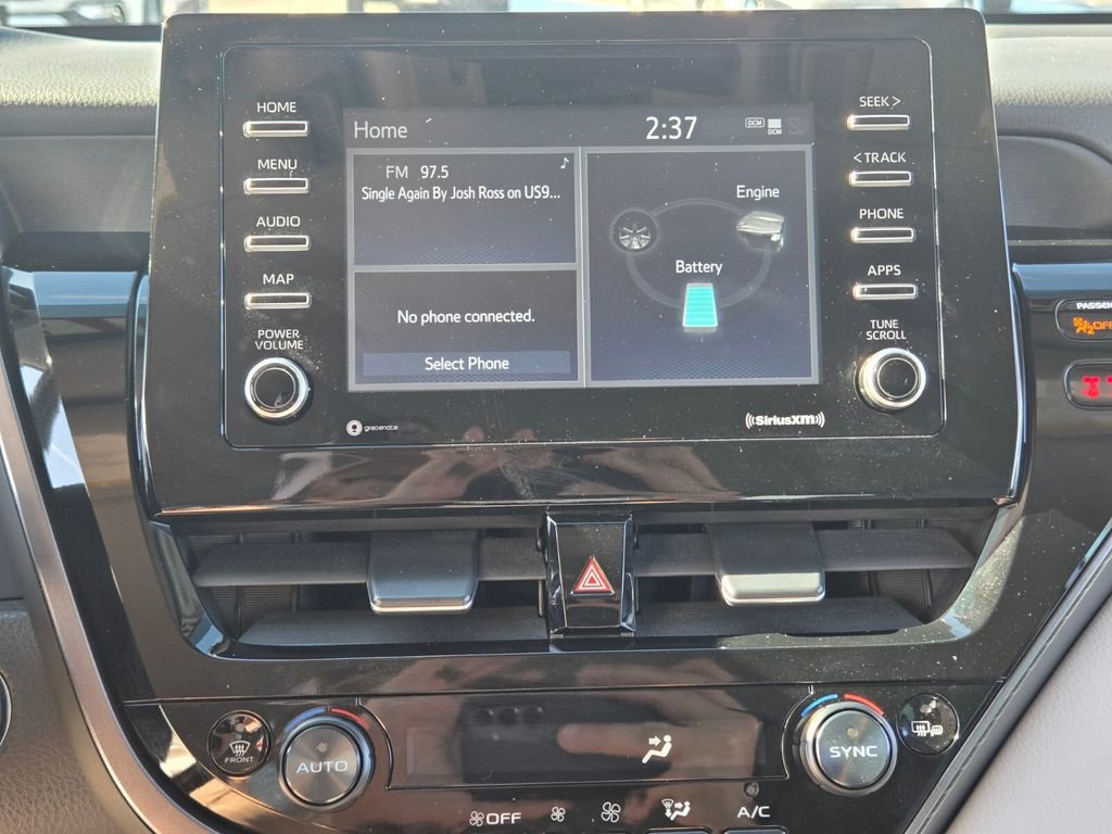 This 2024 Toyota Camry Hybrid comes equipped with, 2.5L I4 DOHC 16V, 4-Wheel Disc Brakes, 6 Speakers, ABS brakes, Air Conditioning, Alloy wheels, AM/FM radio: SiriusXM, Apple CarPlay/Android Auto, Auto High-beam Headlights, Automatic temperature control, Brake assist, Bumpers: body-color, Delay-off headlights, Driver door bin, Driver vanity mirror, Dual front impact airbags, Dual front side impact airbags, Electronic Stability Control, Emergency communication system: Safety Connect (1-year trial), Exterior Parking Camera Rear, Four wheel independent suspension, Front anti-roll bar, Front Bucket Seats, Front Center Armrest, Front dual zone A/C, Front reading lights, Fully automatic headlights, Heated door mirrors, Illuminated entry, Knee airbag, Leather steering wheel, Low tire pressure warning, Mudguards (TMS), Occupant sensing airbag, Outside temperature display, Overhead airbag, Overhead console, Panic alarm, Passenger door bin, Passenger vanity mirror, Power door mirrors, Power driver seat, Power steering, Power windows, Radio data system, Radio: Audio, Rear anti-roll bar, Rear reading lights, Rear seat center armrest, Rear side impact airbag, Rear window defroster, Remote keyless entry, Security system, Speed control, Speed-sensing steering, Split folding rear seat, Spoiler, Sport SofTex Seat Trim w/Fabric Inserts, Steering wheel mounted audio controls, Telescoping steering wheel, Tilt steering wheel, Traction control, Trip computer, Turn signal indicator mirrors, Variably intermittent wipers, 2.5L I4 DOHC 16V. Odometer is 21943 miles below market average!