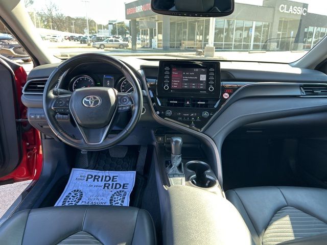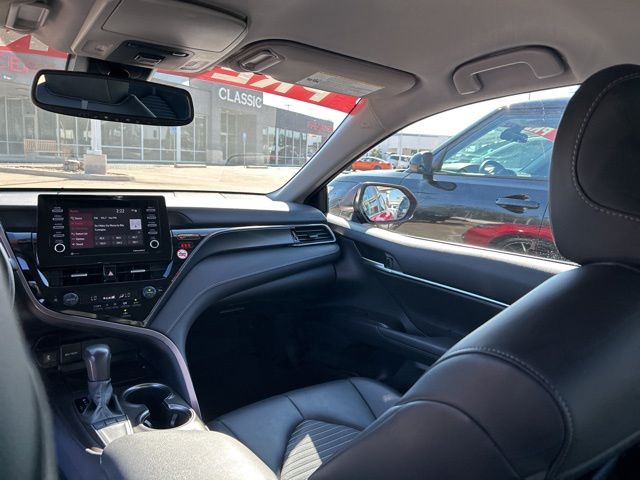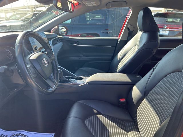 This 2024 Toyota Camry comes equipped with the following features Convenience Package (Auto-Dimming Rear-View Mirror, HomeLink, and Smart Key System w/Push Button Start), Black w/Sport SofTex Seat Trim w/Fabric Inserts, 18" x 8J Alloy Wheels, 4-Wheel Disc Brakes, 6 Speakers, ABS brakes, Air Conditioning, Alloy wheels, AM/FM radio: SiriusXM, Apple CarPlay/Android Auto, Auto High-beam Headlights, Automatic temperature control, Blind Spot Monitor w/Rear Cross Traffic Alert, Brake assist, Bumpers: body-color, Delay-off headlights, Driver door bin, Driver vanity mirror, Dual front impact airbags, Dual front side impact airbags, Electronic Stability Control, Emergency communication system: Safety Connect (1-year trial), Exterior Parking Camera Rear, Four wheel independent suspension, Front anti-roll bar, Front Bucket Seats, Front Center Armrest, Front dual zone A/C, Front reading lights, Fully automatic headlights, Heated door mirrors, Illuminated entry, Knee airbag, Leather steering wheel, Low tire pressure warning, Mudguards (TMS), Occupant sensing airbag, Outside temperature display, Overhead airbag, Overhead console, Panic alarm, Passenger door bin, Passenger vanity mirror, Power door mirrors, Power driver seat, Power steering, Power windows, Radio data system, Radio: Audio, Rear anti-roll bar, Rear Dual USB Power Ports (TMS), Rear seat center armrest, Rear side impact airbag, Rear window defroster, Remote keyless entry, Security system, Speed control, Speed-sensing steering, Split folding rear seat, Spoiler, Sport SofTex Seat Trim w/Fabric Inserts, Steering wheel mounted audio controls, Tachometer, Telescoping steering wheel, Tilt steering wheel, Traction control, Trip computer, Turn signal indicator mirrors, and Variably intermittent wipers. Black w/Sport SofTex Seat Trim w/Fabric Inserts. Clean CARFAX. CARFAX One-Owner. 2024 Toyota Camry SE FWD 2.5L I4 DOHC 16V