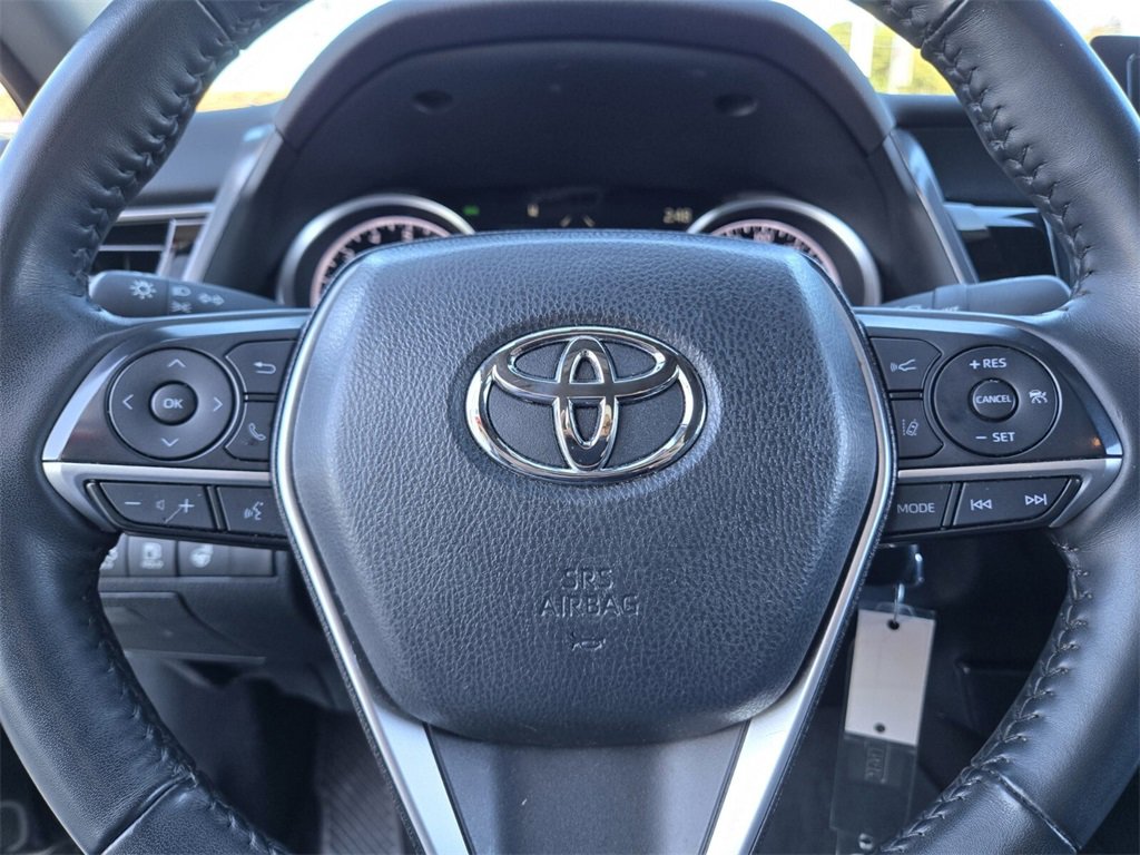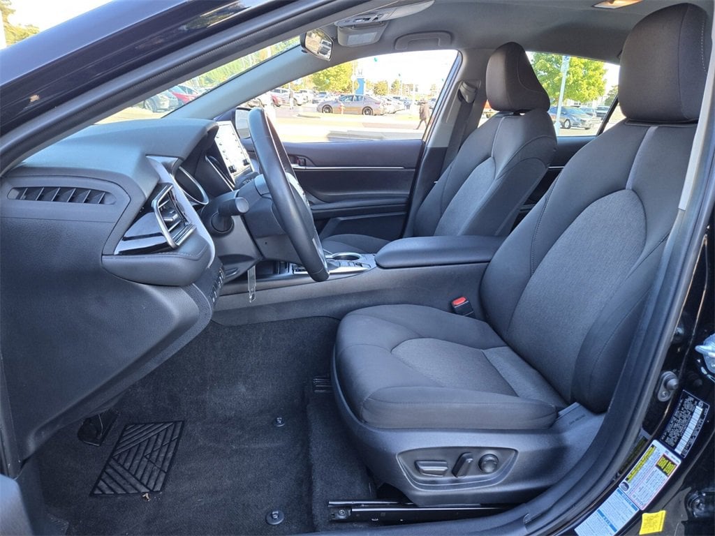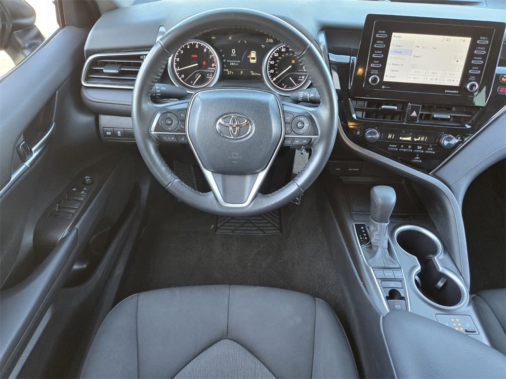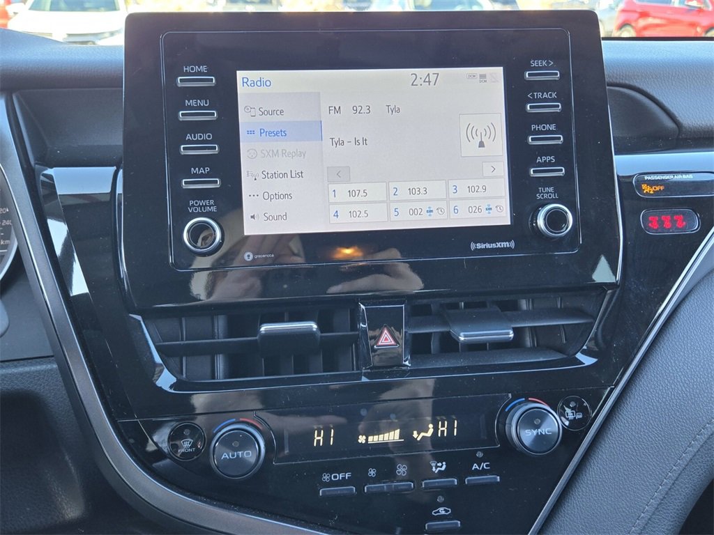 This 2024 Toyota Camry comes equipped with, Black Cloth, 4-Wheel Disc Brakes, 6 Speakers, ABS brakes, Air Conditioning, Alloy wheels, AM/FM radio: SiriusXM, Apple CarPlay/Android Auto, Auto High-beam Headlights, Automatic temperature control, Brake assist, Bumpers: body-color, Carpet/Trunk Mat Set (TMS), Cold Weather Package, Delay-off headlights, Driver door bin, Driver vanity mirror, Dual front impact airbags, Dual front side impact airbags, Electronic Stability Control, Emergency communication system: Safety Connect (1-year trial), Exterior Parking Camera Rear, Fabric Seat Trim, Four wheel independent suspension, Front anti-roll bar, Front Bucket Seats, Front Center Armrest, Front dual zone A/C, Front reading lights, Fully automatic headlights, Heated Exterior Mirrors, Illuminated entry, Knee airbag, Low tire pressure warning, Multi-Stage Heated Front Seats, Occupant sensing airbag, Outside temperature display, Overhead airbag, Overhead console, Panic alarm, Passenger door bin, Passenger vanity mirror, Power door mirrors, Power driver seat, Power steering, Power windows, Radio data system, Radio: Audio, Rear anti-roll bar, Rear seat center armrest, Rear side impact airbag, Rear window defroster, Remote keyless entry, Security system, Speed control, Speed-sensing steering, Split folding rear seat, Steering wheel mounted audio controls, Tachometer, Telescoping steering wheel, Tilt steering wheel, Traction control, Trip computer, Variably intermittent wipers, Wheels: 17" x 7.5J Alloy, Black Cloth.
