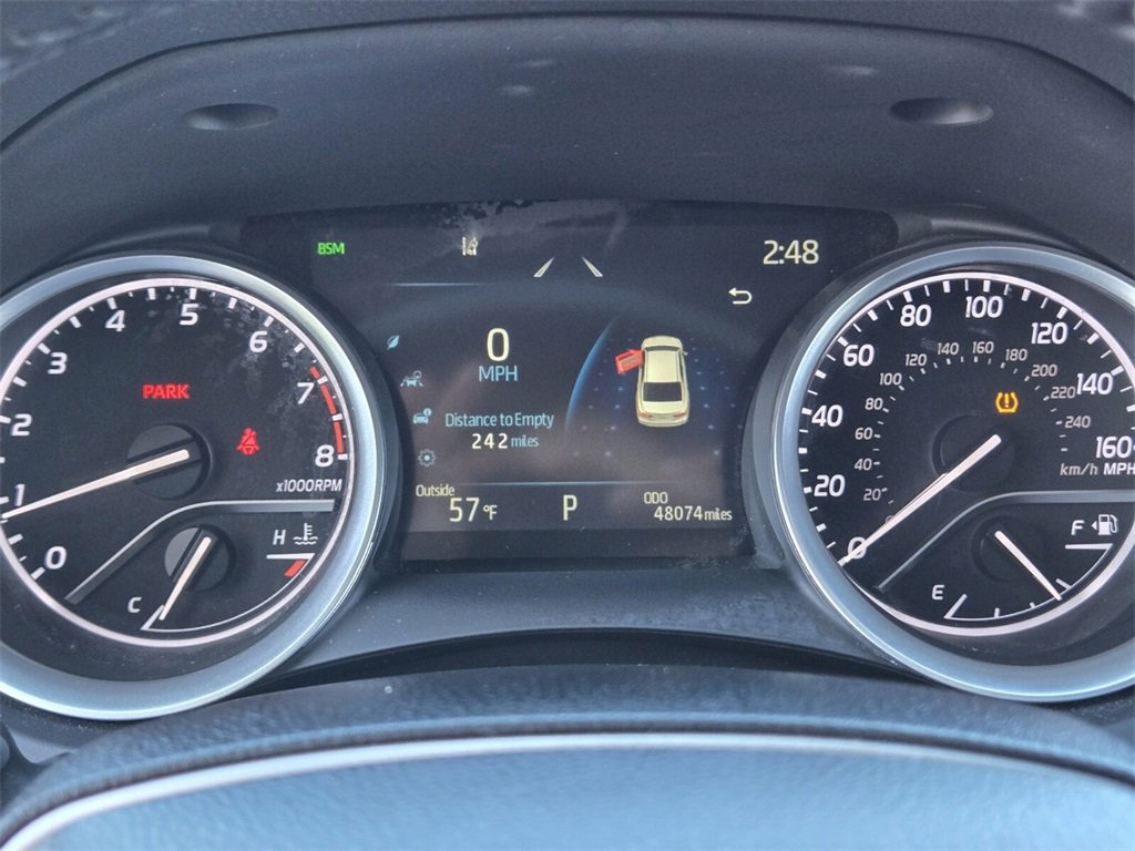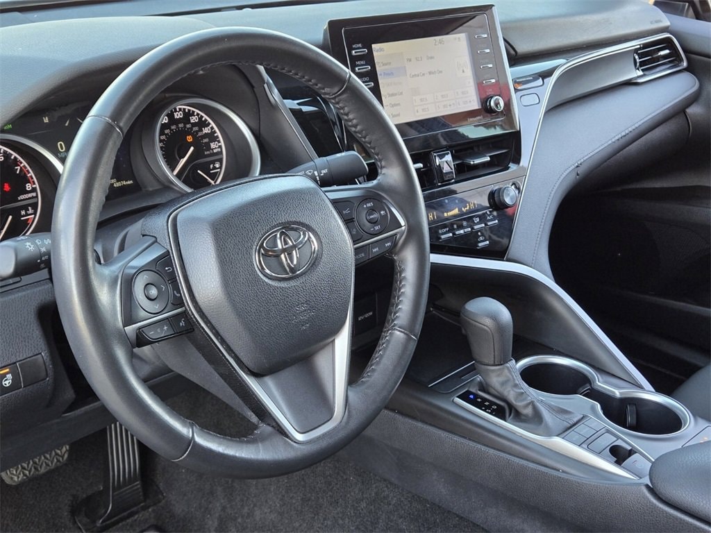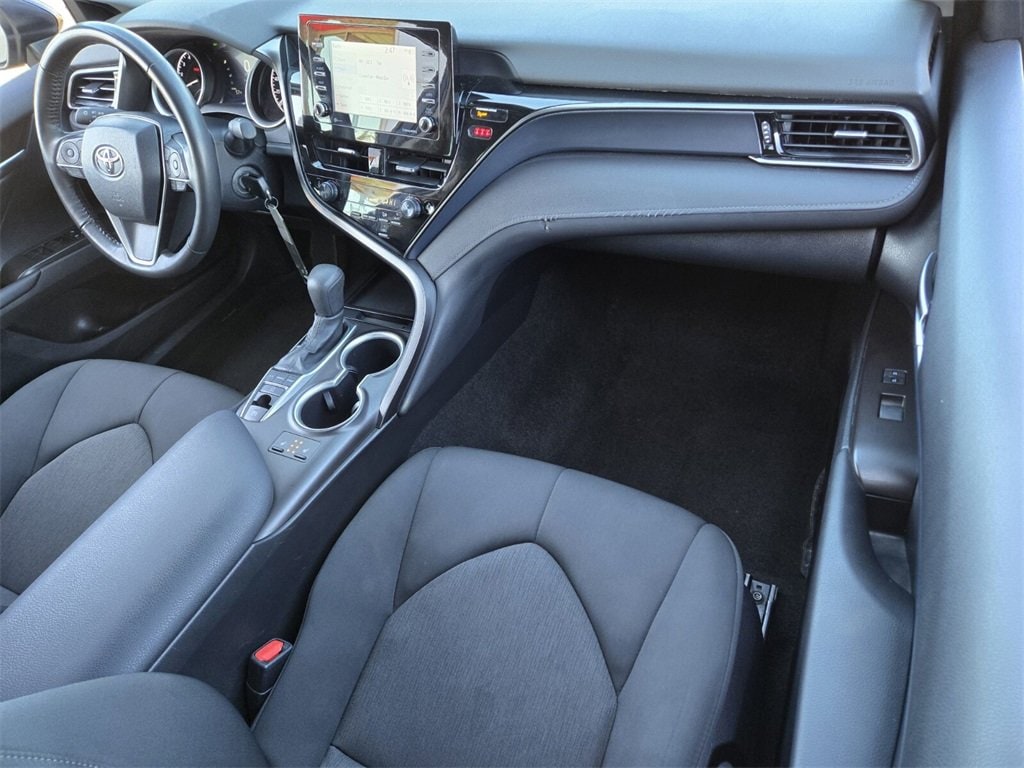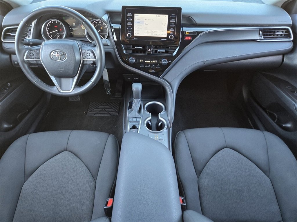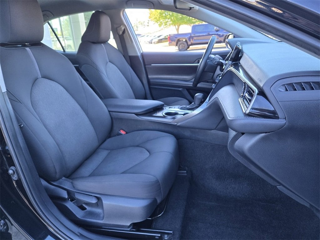 This 2024 Toyota Camry comes equipped with, Black Cloth, 4-Wheel Disc Brakes, 6 Speakers, ABS brakes, Air Conditioning, Alloy wheels, AM/FM radio: SiriusXM, Apple CarPlay/Android Auto, Auto High-beam Headlights, Automatic temperature control, Brake assist, Bumpers: body-color, Carpet/Trunk Mat Set (TMS), Cold Weather Package, Delay-off headlights, Driver door bin, Driver vanity mirror, Dual front impact airbags, Dual front side impact airbags, Electronic Stability Control, Emergency communication system: Safety Connect (1-year trial), Exterior Parking Camera Rear, Fabric Seat Trim, Four wheel independent suspension, Front anti-roll bar, Front Bucket Seats, Front Center Armrest, Front dual zone A/C, Front reading lights, Fully automatic headlights, Heated Exterior Mirrors, Illuminated entry, Knee airbag, Low tire pressure warning, Multi-Stage Heated Front Seats, Occupant sensing airbag, Outside temperature display, Overhead airbag, Overhead console, Panic alarm, Passenger door bin, Passenger vanity mirror, Power door mirrors, Power driver seat, Power steering, Power windows, Radio data system, Radio: Audio, Rear anti-roll bar, Rear seat center armrest, Rear side impact airbag, Rear window defroster, Remote keyless entry, Security system, Speed control, Speed-sensing steering, Split folding rear seat, Steering wheel mounted audio controls, Tachometer, Telescoping steering wheel, Tilt steering wheel, Traction control, Trip computer, Variably intermittent wipers, Wheels: 17" x 7.5J Alloy, Black Cloth.