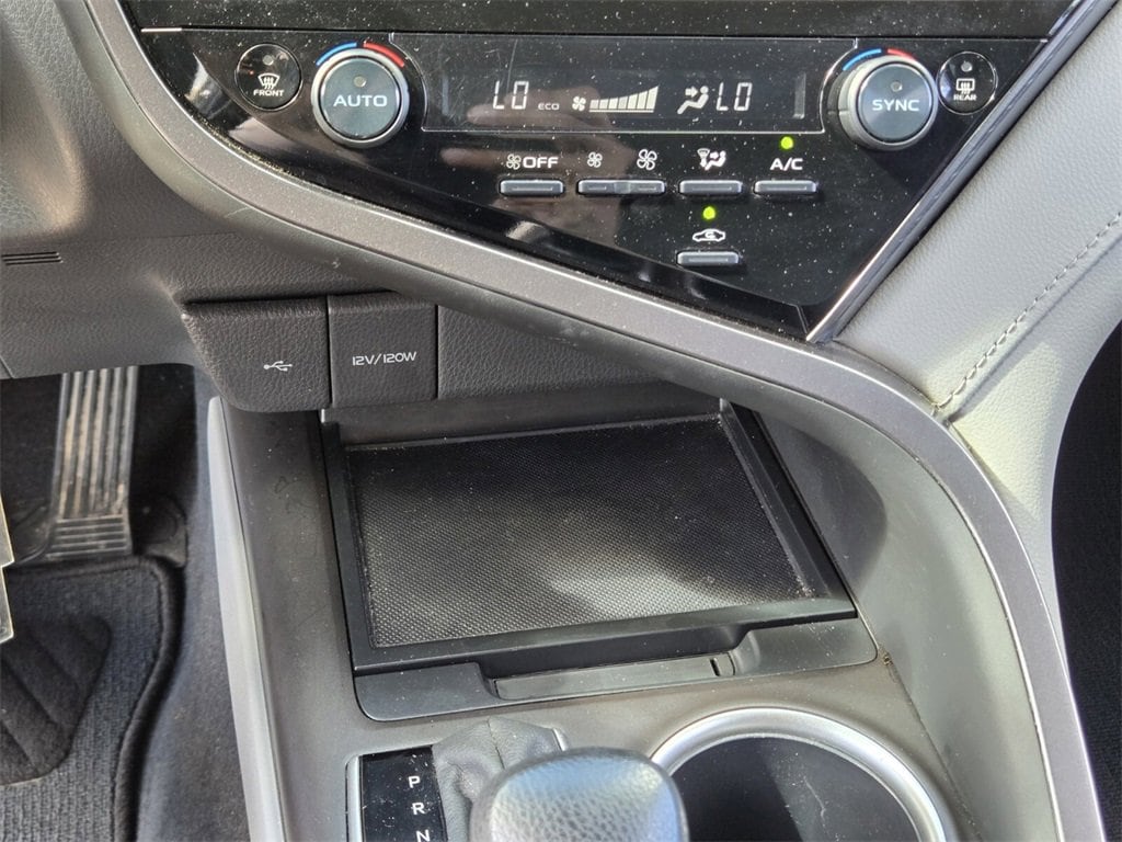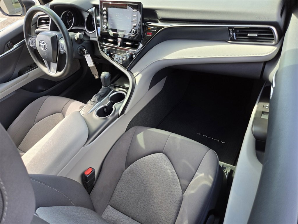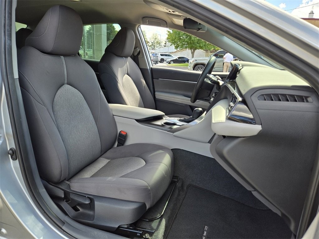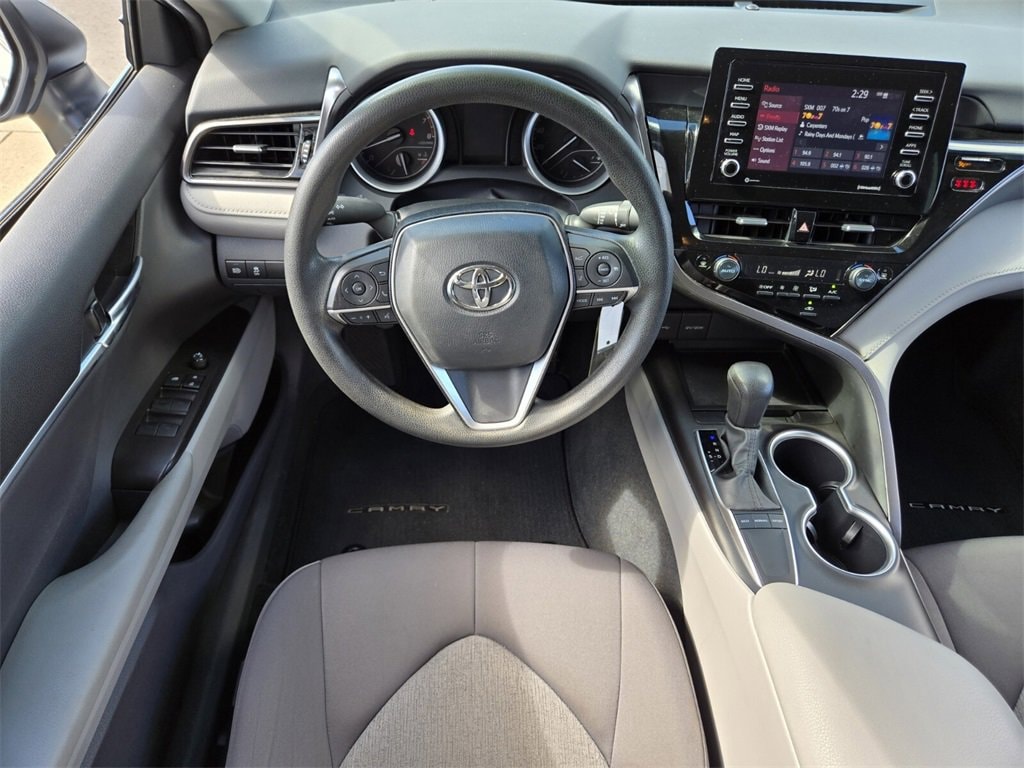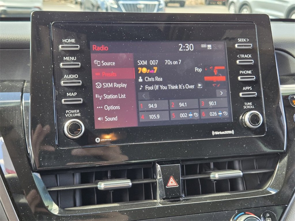 This 2024 Toyota Camry comes equipped with, Ash Cloth, 4-Wheel Disc Brakes, 6 Speakers, ABS brakes, Air Conditioning, Alloy wheels, AM/FM radio: SiriusXM, Apple CarPlay/Android Auto, Auto High-beam Headlights, Automatic temperature control, Brake assist, Bumpers: body-color, Delay-off headlights, Driver door bin, Driver vanity mirror, Dual front impact airbags, Dual front side impact airbags, Electronic Stability Control, Emergency communication system: Safety Connect (1-year trial), Exterior Parking Camera Rear, Fabric Seat Trim, Four wheel independent suspension, Front anti-roll bar, Front Bucket Seats, Front Center Armrest, Front dual zone A/C, Front reading lights, Fully automatic headlights, Illuminated entry, Knee airbag, Low tire pressure warning, Occupant sensing airbag, Outside temperature display, Overhead airbag, Overhead console, Panic alarm, Passenger door bin, Passenger vanity mirror, Power door mirrors, Power driver seat, Power steering, Power windows, Radio data system, Radio: Audio, Rear anti-roll bar, Rear seat center armrest, Rear side impact airbag, Rear window defroster, Remote keyless entry, Security system, Speed control, Speed-sensing steering, Split folding rear seat, Steering wheel mounted audio controls, Tachometer, Telescoping steering wheel, Tilt steering wheel, Traction control, Trip computer, Variably intermittent wipers, Wheels: 17" x 7.5J Alloy, Ash Cloth.