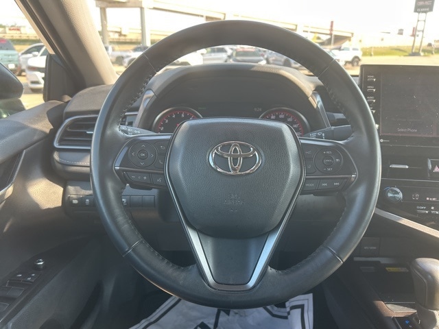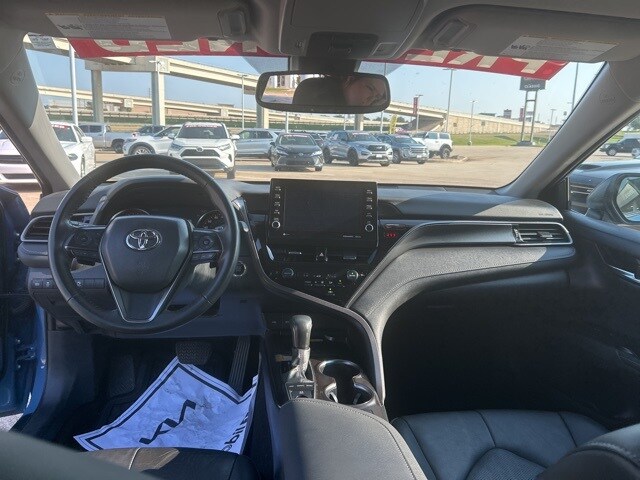 This 2024 Toyota Camry comes equipped with the following features Black w/Perforated Leather Seat Trim, 4-Wheel Disc Brakes, 6 Speakers, ABS brakes, Air Conditioning, Alloy wheels, AM/FM radio: SiriusXM, Apple CarPlay/Android Auto, Auto High-beam Headlights, Auto-dimming Rear-View mirror, Automatic temperature control, Brake assist, Bumpers: body-color, Delay-off headlights, Driver door bin, Driver vanity mirror, Dual front impact airbags, Dual front side impact airbags, Electronic Stability Control, Emergency communication system: Safety Connect (1-year trial), Exterior Parking Camera Rear, Four wheel independent suspension, Front anti-roll bar, Front Bucket Seats, Front Center Armrest, Front dual zone A/C, Front reading lights, Fully automatic headlights, Garage door transmitter: HomeLink, Heated door mirrors, Heated front seats, Illuminated entry, Knee airbag, Leather steering wheel, Low tire pressure warning, Multi-Stage Heated Front Bucket Seats, Occupant sensing airbag, Outside temperature display, Overhead airbag, Overhead console, Panic alarm, Passenger door bin, Passenger vanity mirror, Perforated Leather Seat Trim, Power door mirrors, Power driver seat, Power passenger seat, Power steering, Power windows, Radio data system, Radio: Audio Plus, Rear anti-roll bar, Rear reading lights, Rear seat center armrest, Rear side impact airbag, Rear window defroster, Remote keyless entry, Security system, Speed control, Speed-sensing steering, Split folding rear seat, Spoiler, Steering wheel mounted audio controls, Tachometer, Telescoping steering wheel, Tilt steering wheel, Traction control, Trip computer, Turn signal indicator mirrors, Variably intermittent wipers, and Wheels: 19" x 8J Alloy. Black w/Perforated Leather Seat Trim. CARFAX One-Owner. 2024 Toyota Camry XSE FWD 2.5L I4 DOHC 16V