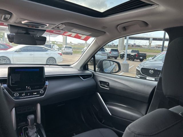 This 2024 Toyota Corolla Cross comes equipped with the following features Moonroof Package (Tilt & Slide Moonroof and Tonneau Cover & Try Trim), 17" Silver Alloy Wheels, 4-Wheel Disc Brakes, 4.014 Axle Ratio, 6 Speakers, ABS brakes, Air Conditioning, Alloy wheels, AM/FM radio: SiriusXM, Auto High-beam Headlights, Automatic temperature control, Brake assist, Bumpers: body-color, Carpet Floor Mat/Cargo Mat (TMS), Cross Bars (TMS), Delay-off headlights, Driver door bin, Driver vanity mirror, Dual front impact airbags, Dual front side impact airbags, Electronic Stability Control, Emergency communication system: Safety Connect (10-year trial), Exterior Parking Camera Rear, Fabric Seat Trim, Frameless HomeLink Mirror (TMS), Front anti-roll bar, Front Bucket Seats, Front Center Armrest, Front reading lights, Front wheel independent suspension, Fully automatic headlights, Heated door mirrors, Illuminated entry, Knee airbag, Leather steering wheel, Low tire pressure warning, Mudguards (TMS), Occupant sensing airbag, Outside temperature display, Overhead airbag, Panic alarm, Passenger door bin, Passenger vanity mirror, Power door mirrors, Power steering, Power windows, Radio data system, Radio: 8" Touch-Screen Display Audio, Rear anti-roll bar, Rear Bumper Protector (TMS), Rear side impact airbag, Rear window defroster, Rear window wiper, Remote keyless entry, Speed control, Split folding rear seat, Spoiler, Steering wheel mounted audio controls, Tachometer, Telescoping steering wheel, Tilt steering wheel, Traction control, Trip computer, Turn signal indicator mirrors, and Variably intermittent wipers. Clean CARFAX. CARFAX One-Owner. 2024 Toyota Corolla Cross LE FWD 2.0L I4 PDI DOHC 16V LEV3-SULEV30 169hp