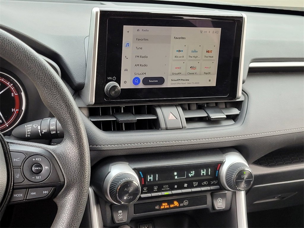 This 2024 Toyota RAV4 comes equipped with, Black Cloth, 4-Wheel Disc Brakes, 6 Speakers, ABS brakes, Air Conditioning, Alloy wheels, AM/FM radio: SiriusXM, Auto High-beam Headlights, Automatic temperature control, Axle Ratio: 3.177, Brake assist, Bumpers: body-color, Delay-off headlights, Driver door bin, Driver vanity mirror, Dual front impact airbags, Dual front side impact airbags, Electronic Stability Control, Emergency communication system: Safety Connect (10-year trial), Exterior Parking Camera Rear, Fabric Seat Trim, Four wheel independent suspension, Front anti-roll bar, Front Bucket Seats, Front Center Armrest, Front dual zone A/C, Front reading lights, Fully automatic headlights, Heated door mirrors, Illuminated entry, Knee airbag, Low tire pressure warning, Occupant sensing airbag, Outside temperature display, Overhead airbag, Overhead console, Panic alarm, Passenger door bin, Passenger vanity mirror, Power door mirrors, Power driver seat, Power steering, Power windows, Radio data system, Radio: AM/FM/XM Audio System, Rear anti-roll bar, Rear seat center armrest, Rear window defroster, Rear window wiper, Remote keyless entry, Speed control, Speed-sensing steering, Split folding rear seat, Spoiler, Steering wheel mounted audio controls, Tachometer, Telescoping steering wheel, Tilt steering wheel, Traction control, Trip computer, Turn signal indicator mirrors, Variably intermittent wipers, Wheels: 17" 5-Spoke Silver Alloy, Black Cloth. Odometer is 11357 miles below market average!