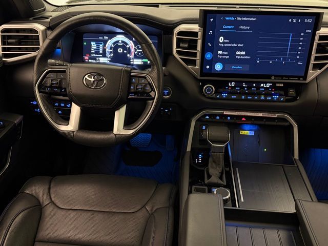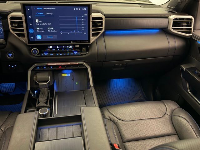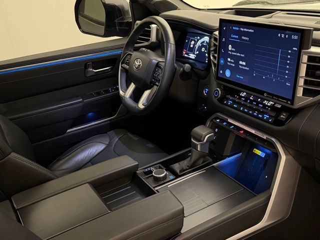 Step inside the Tundra Hybrid Platinum and experience the epitome of luxury. The cabin is adorned with Leather Seat Trim, a Heated Steering Wheel, and a host of advanced technology features, including Apple CarPlay, Android Auto, and the intuitive Safety Connect system. Thoughtful amenities like the Garage Door Transmitter and Auto-Dimming Rearview Mirror ensure your daily commute is as seamless as it is enjoyable.